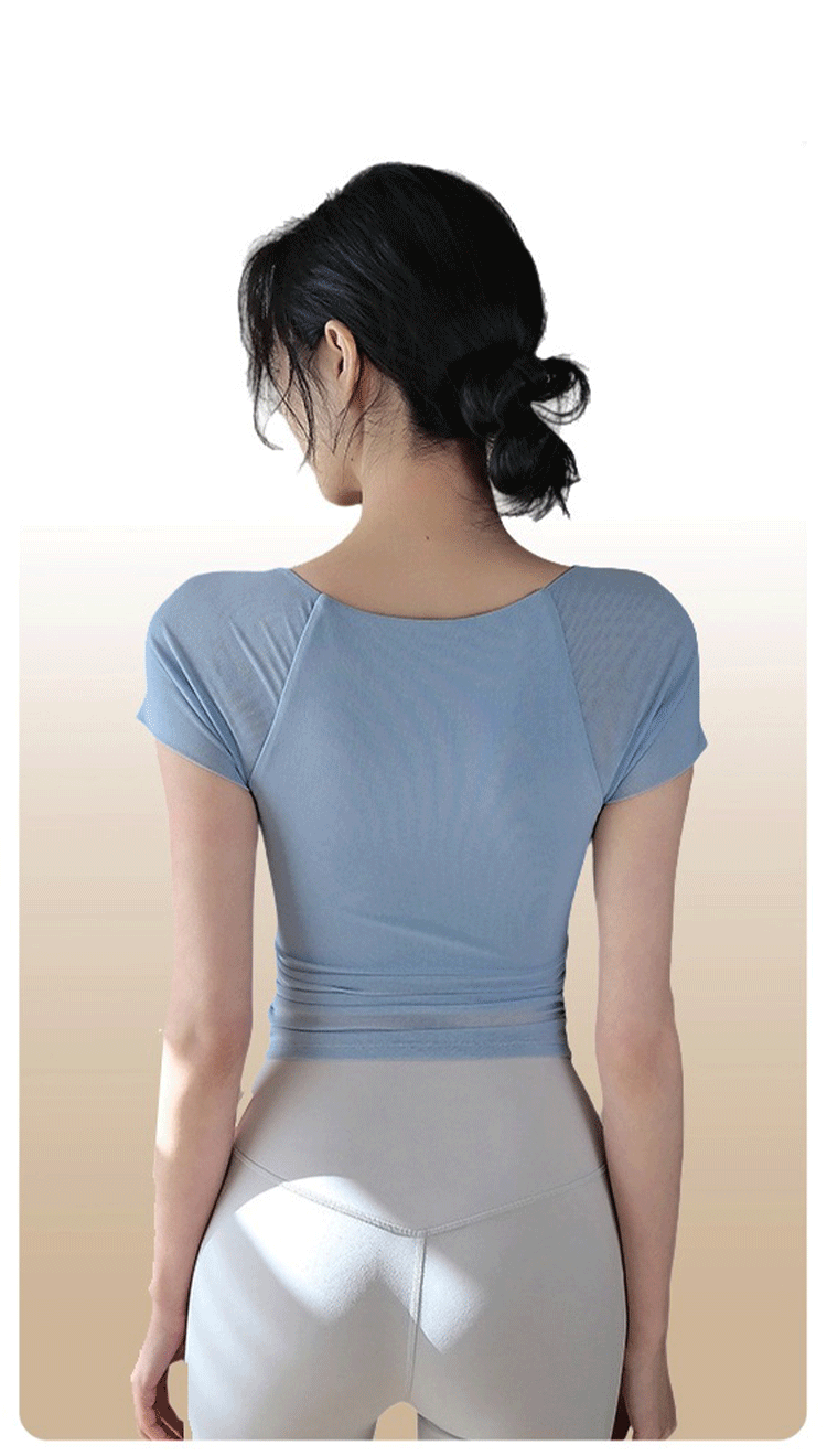 Top de yoga con almohadilla para el pecho, top deportivo de una taza de hilo de malla de aire de hadas femenino, delgado y temperamento, ejercicio de entrenamiento de Pilates