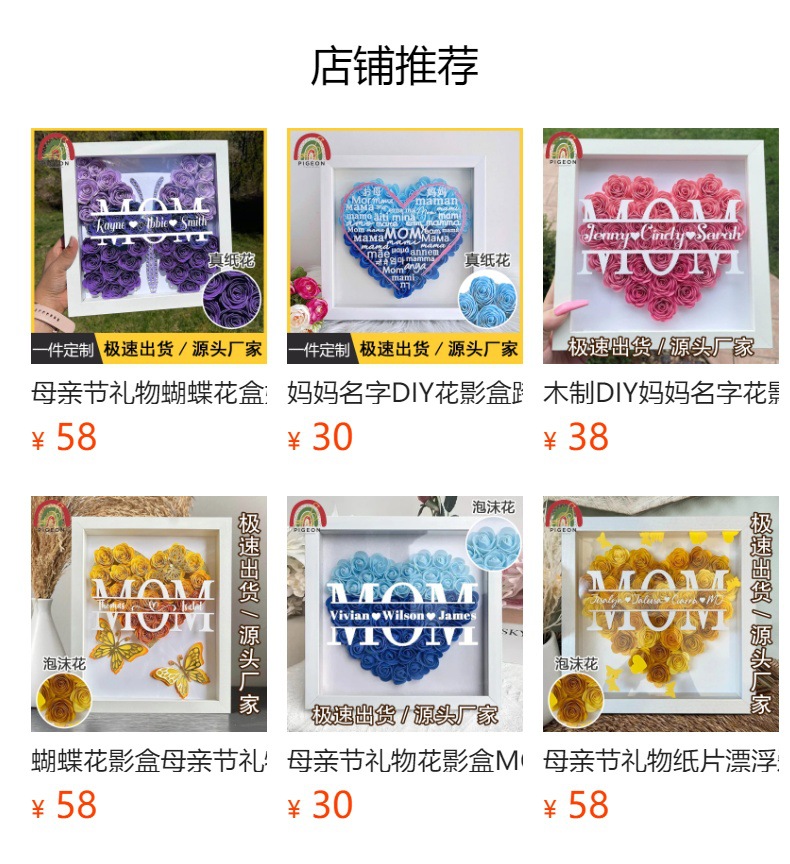 Regalo del día de la madre MOM nombre de la madre DIY transfronterizo Amazon explosivo rosa marco caja de regalo madera