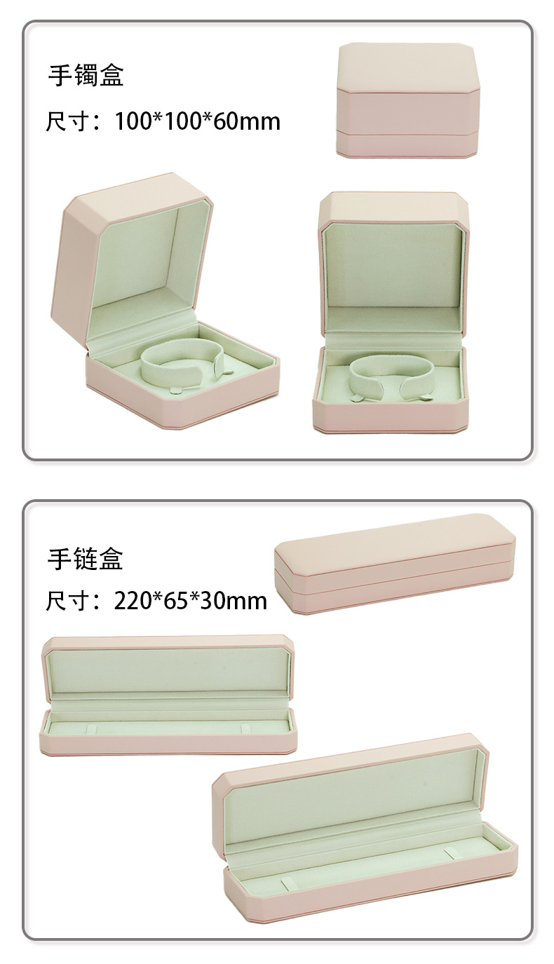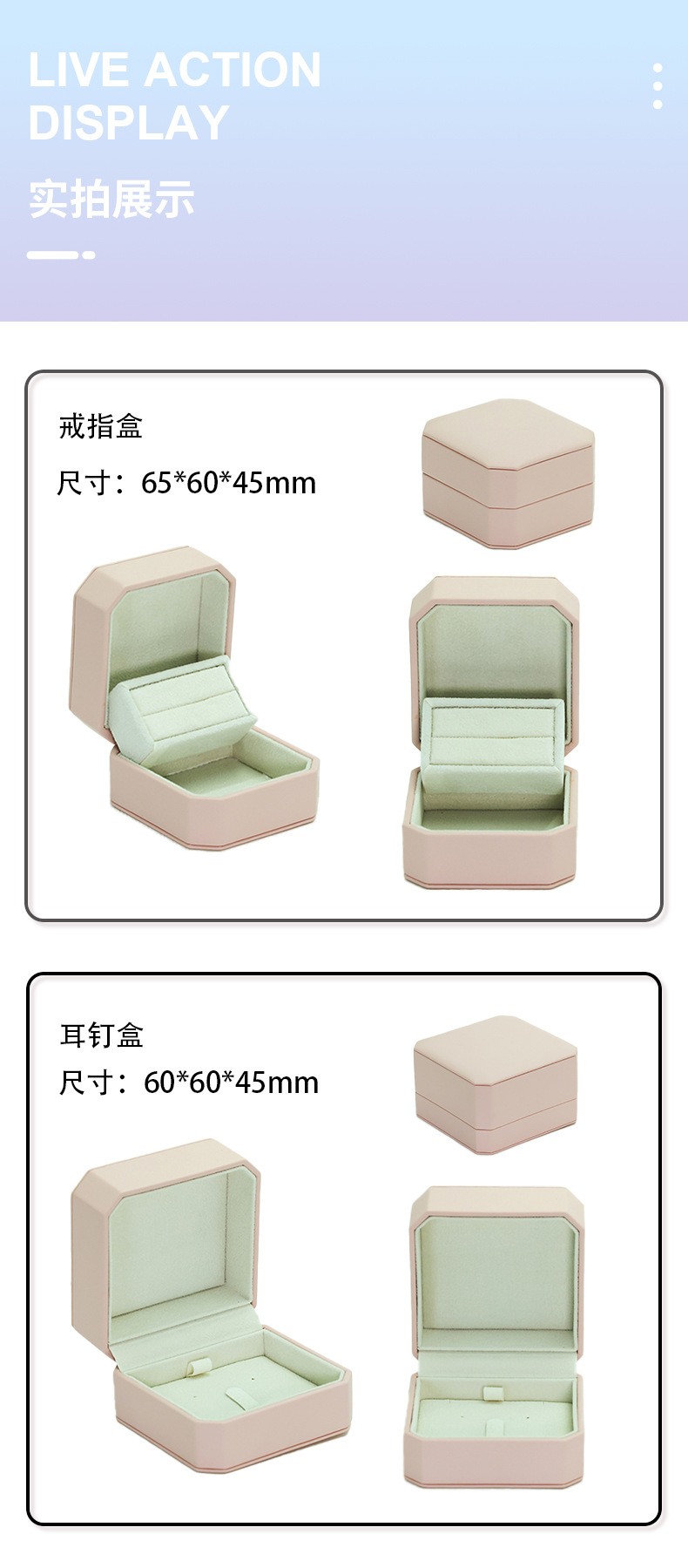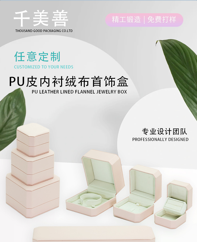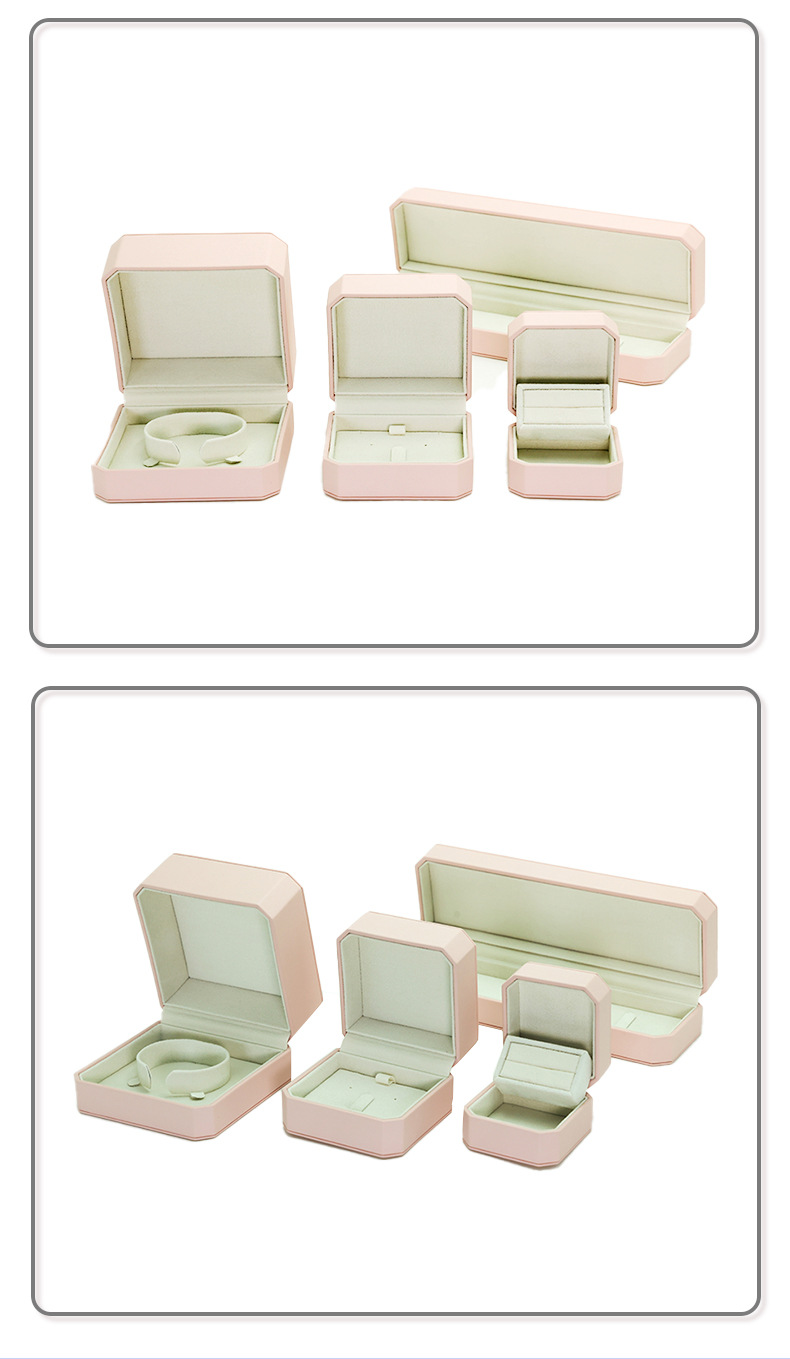 Cuero PU redondeado joyería de negocios flip caja de joyería caja de paquete rosa simple moda de alta calidad collar