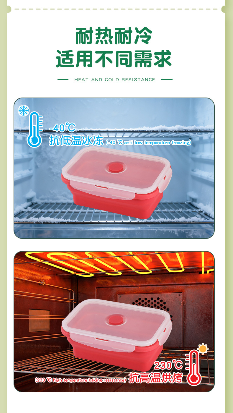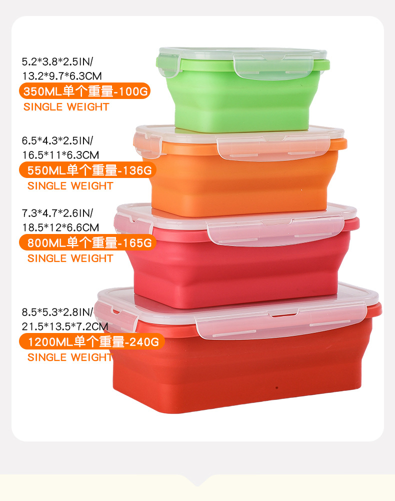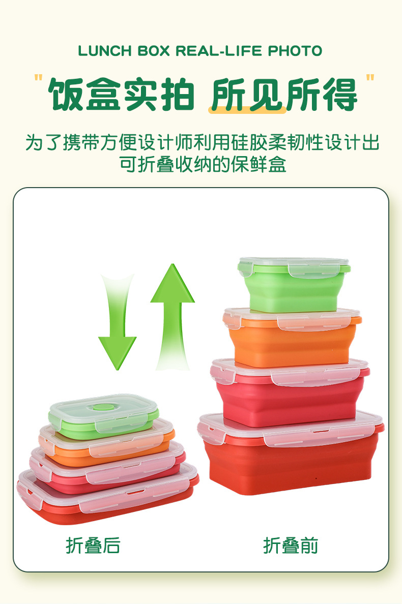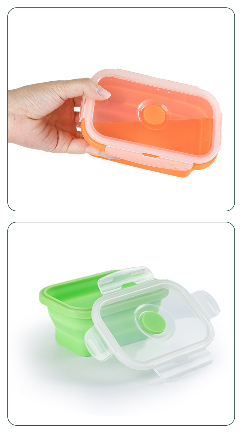 Caja de almuerzo de silicona plegable transfronteriza caja de almacenamiento portátil caja de microondas caja de almuerzo ecológica caja de almacenamiento refrigerador