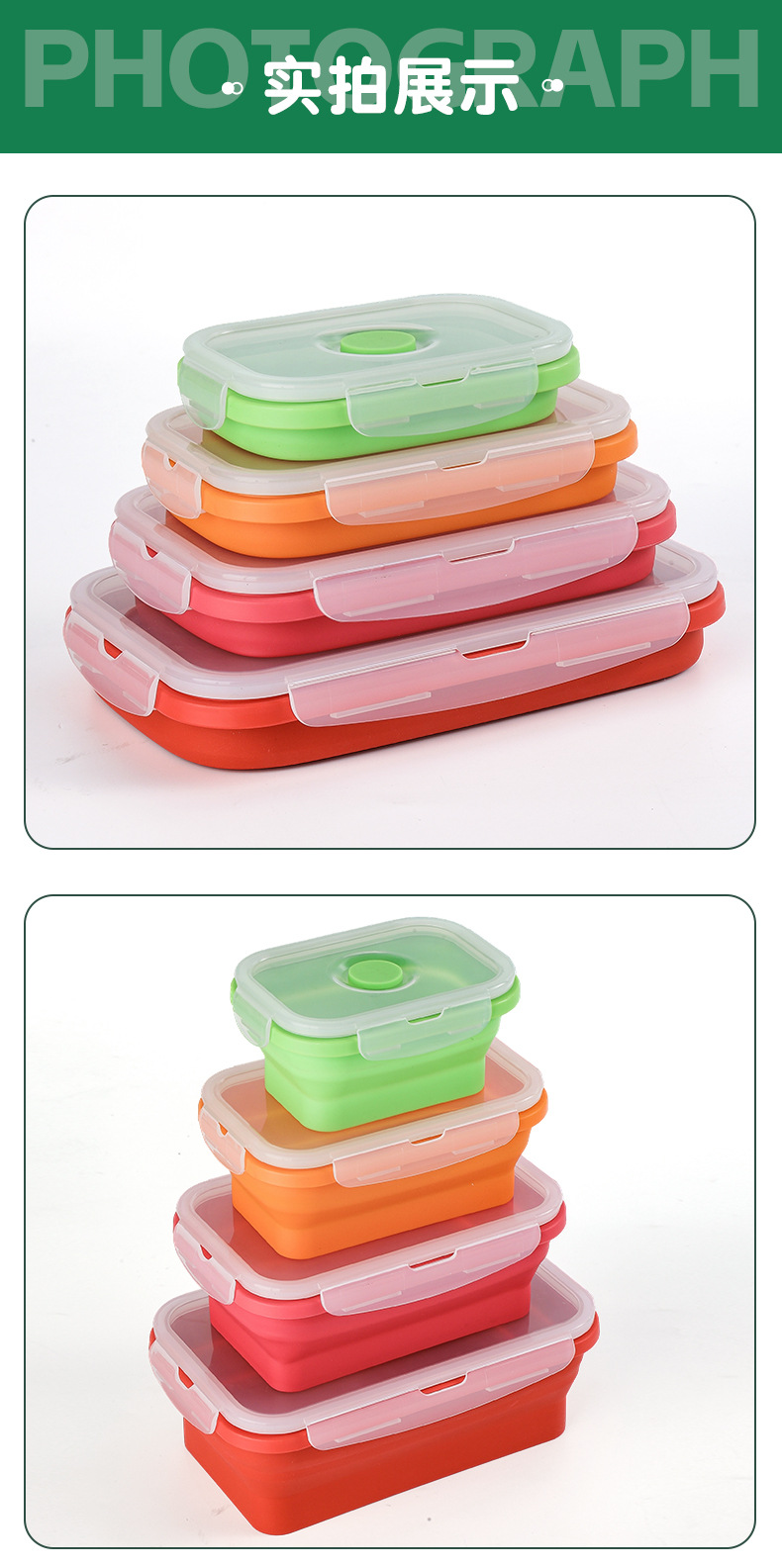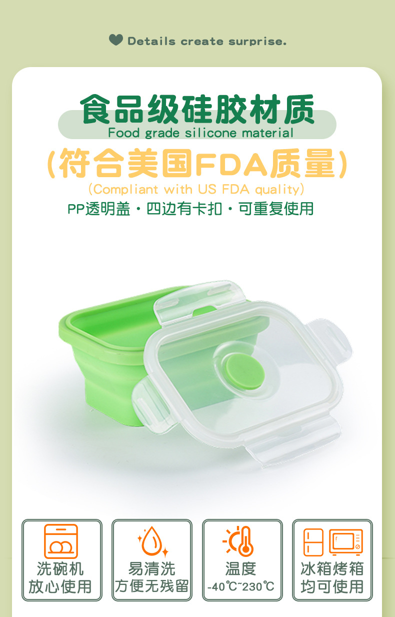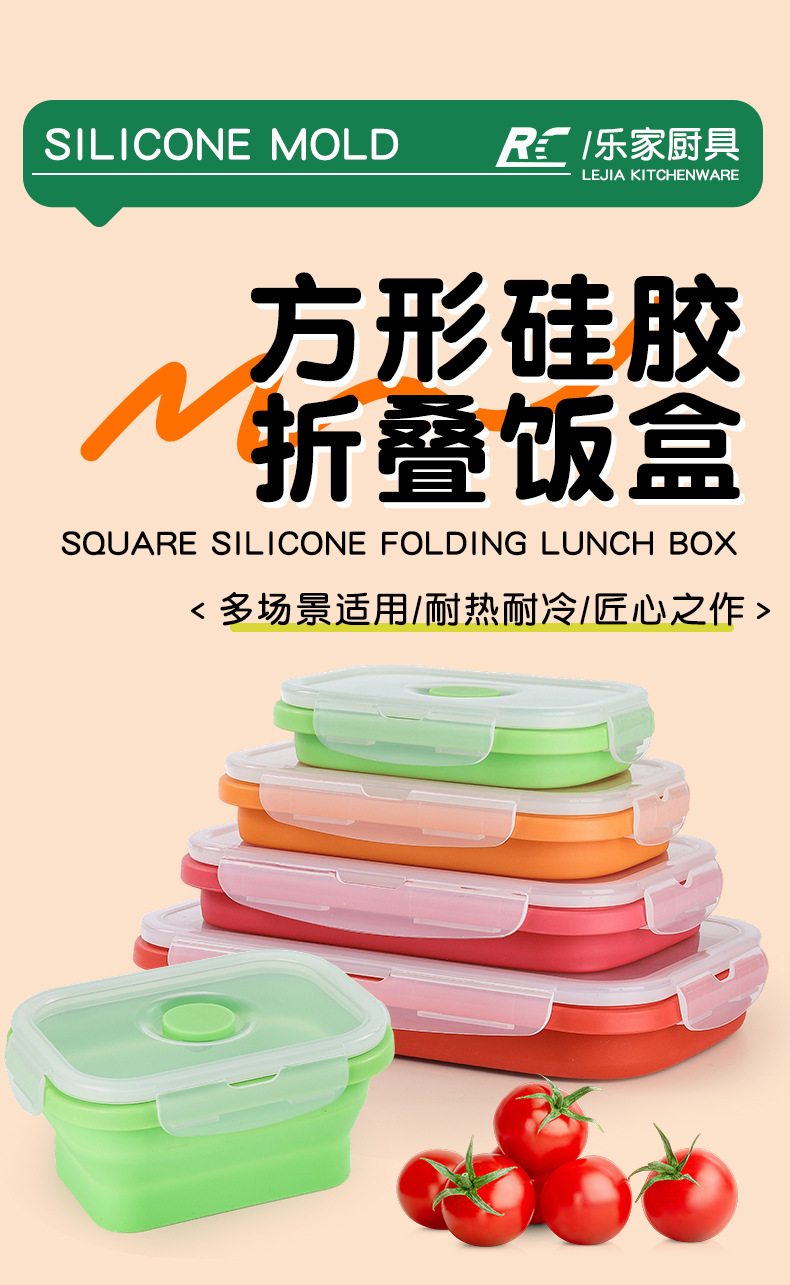 Caja de almuerzo de silicona plegable transfronteriza caja de almacenamiento portátil caja de microondas caja de almuerzo ecológica caja de almacenamiento refrigerador