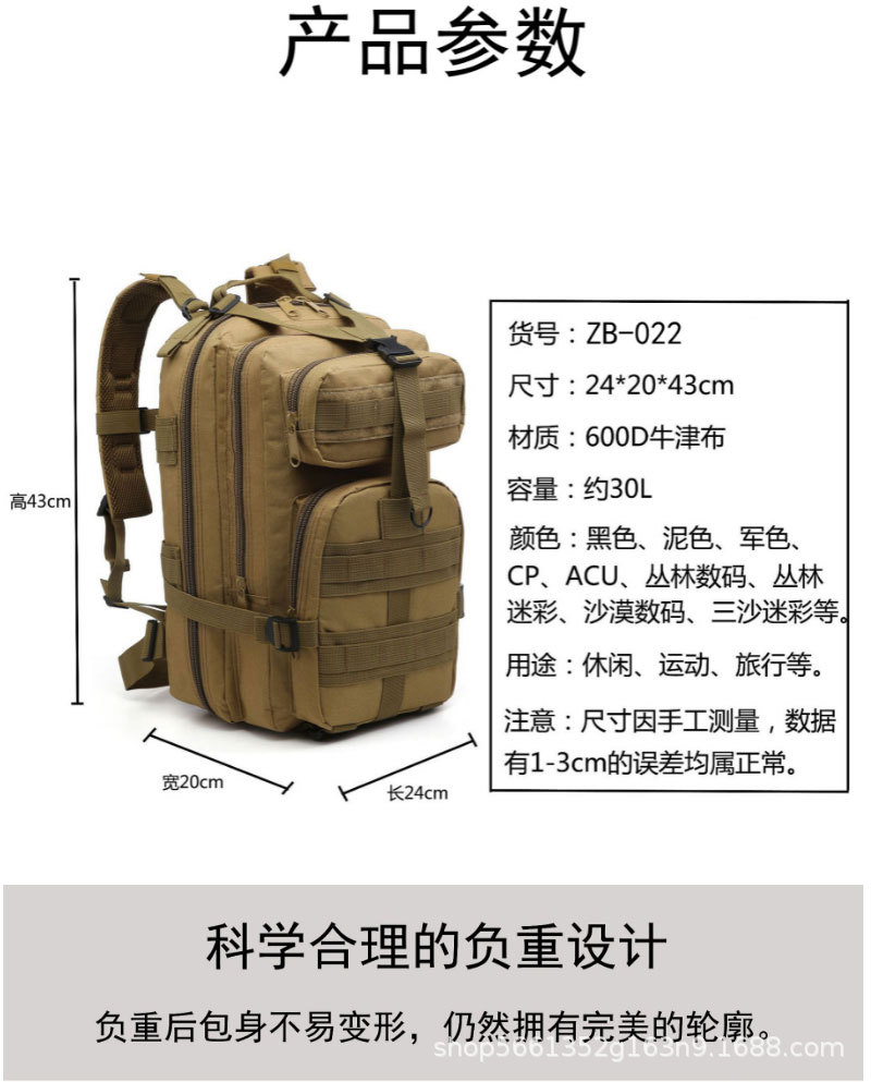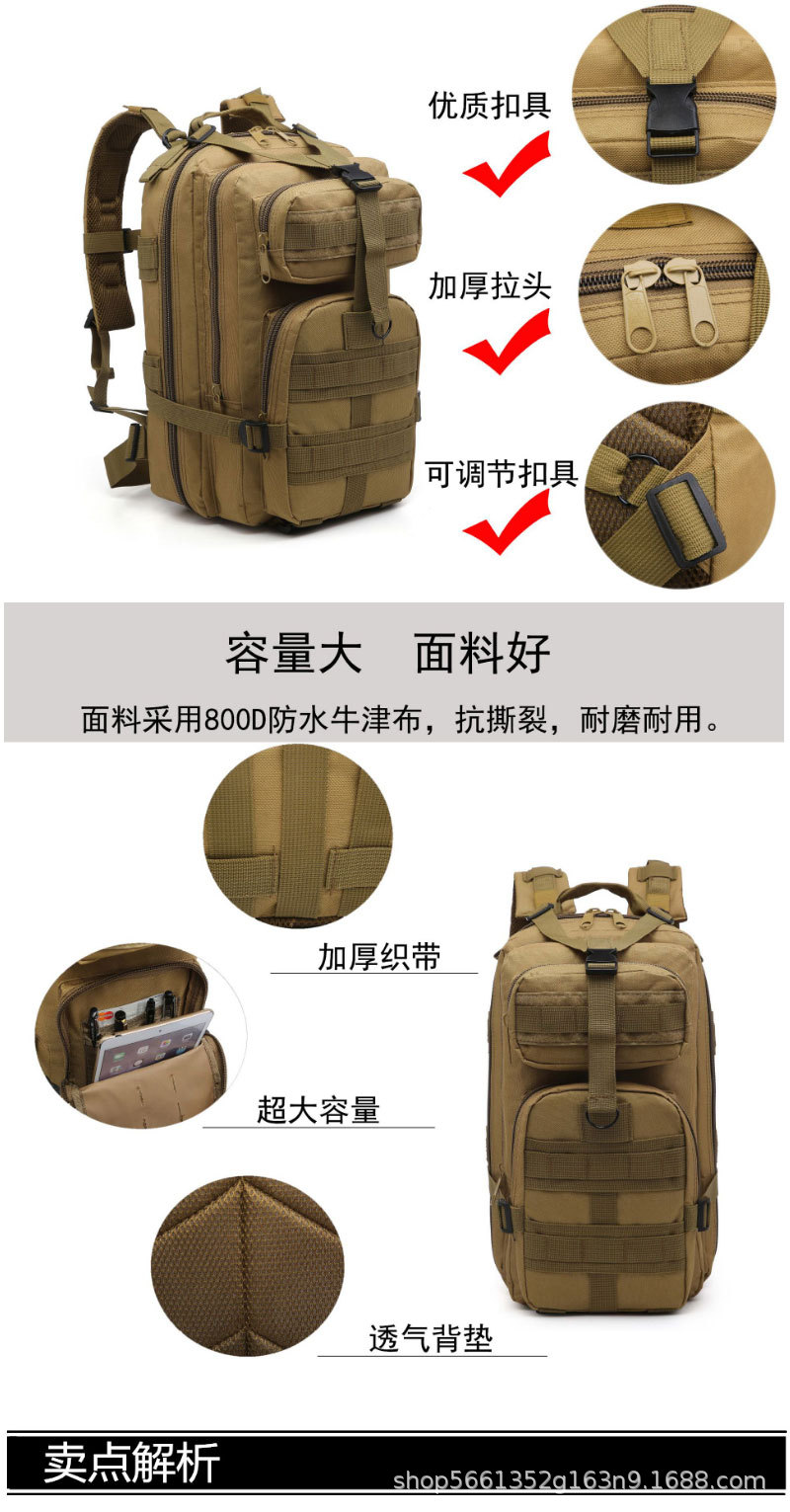 Mochila táctica al aire libre viaje de montaña mochila camuflaje campamento montar hombres y mujeres campamento de verano ataque 3P bolsa