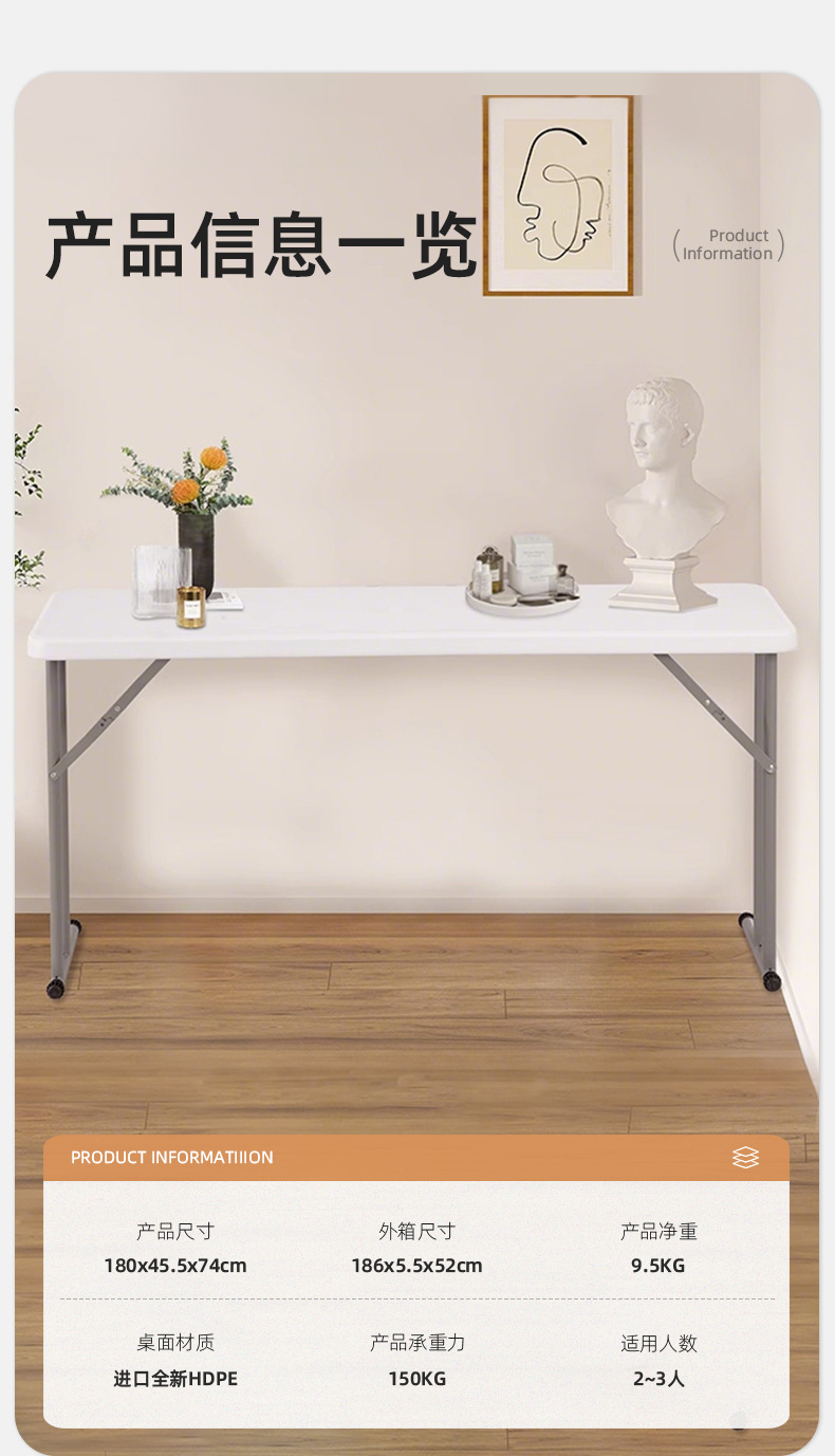 | Colores | Mesa estrecha 244cm*45,5cm blanca,Mesa estrecha blanca de 1,80m x 45,5cm (versión estable y engrosada),Mesa de barra estrecha gris de 1,80 m x 45,5 cm (estilo grueso estable),Mesa estrecha 152cm*45,5cm blanca,Mesa estrecha 152cm*45,5cm gris,Taburete de conferencia blanco*4 (paquete de 4),Taburete de conferencia negro*4 (paquete de 4),Color personalizado |