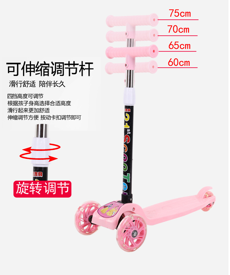 Fabricantes transfronterizos para niños, coche de altura, coche de bebé, scooter, ruedas de scooter de tres ruedas con luz