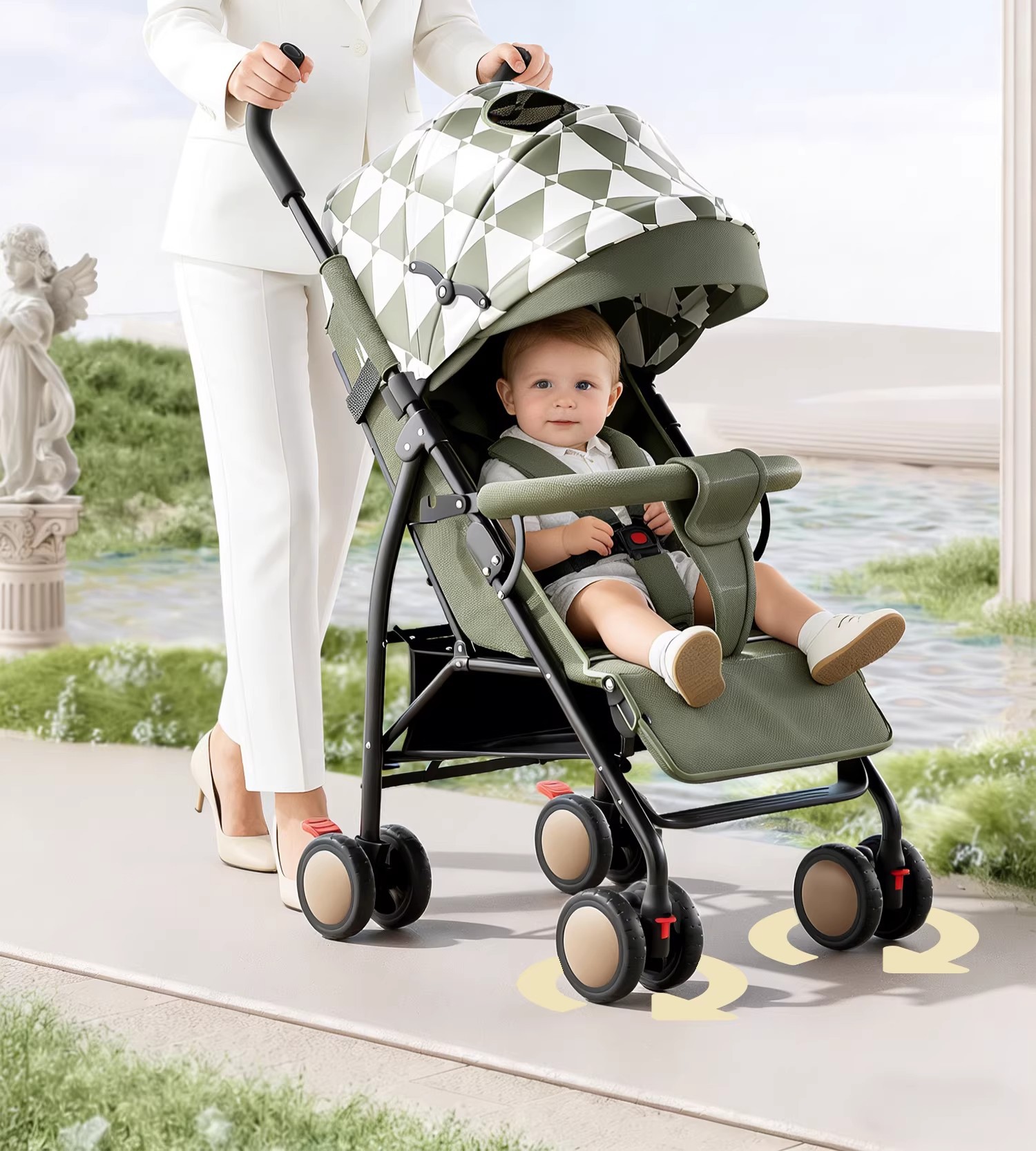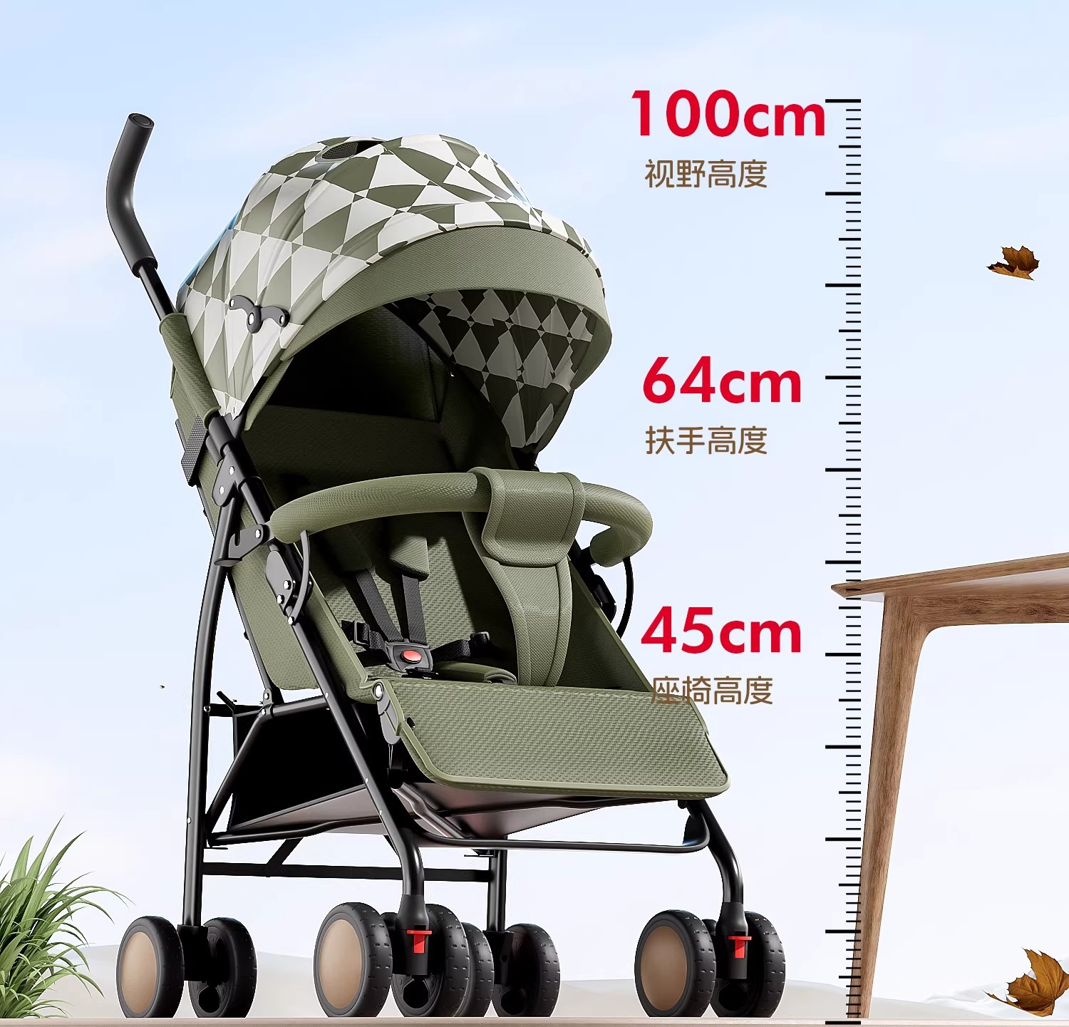 Carrinche de bebé ligero y plegable simple, carro de paraguas para niños pequeños, viajes de verano para niños pequeños.