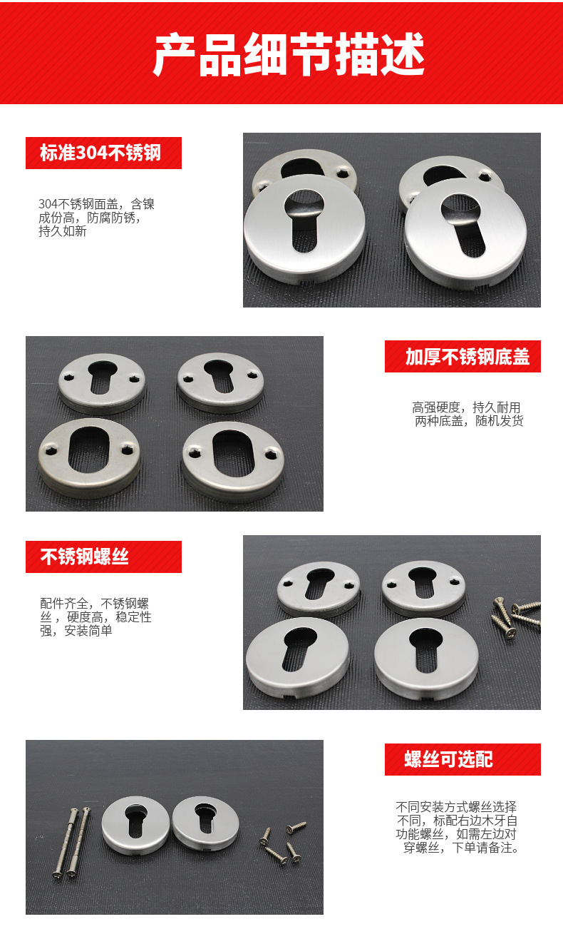 EUR 304 accesorios de cerradura de acero inoxidable cubierta de decoración de protección sin agujero cubierta de cerradura falsa cubierta de agujero de llave cubierta de cerradura