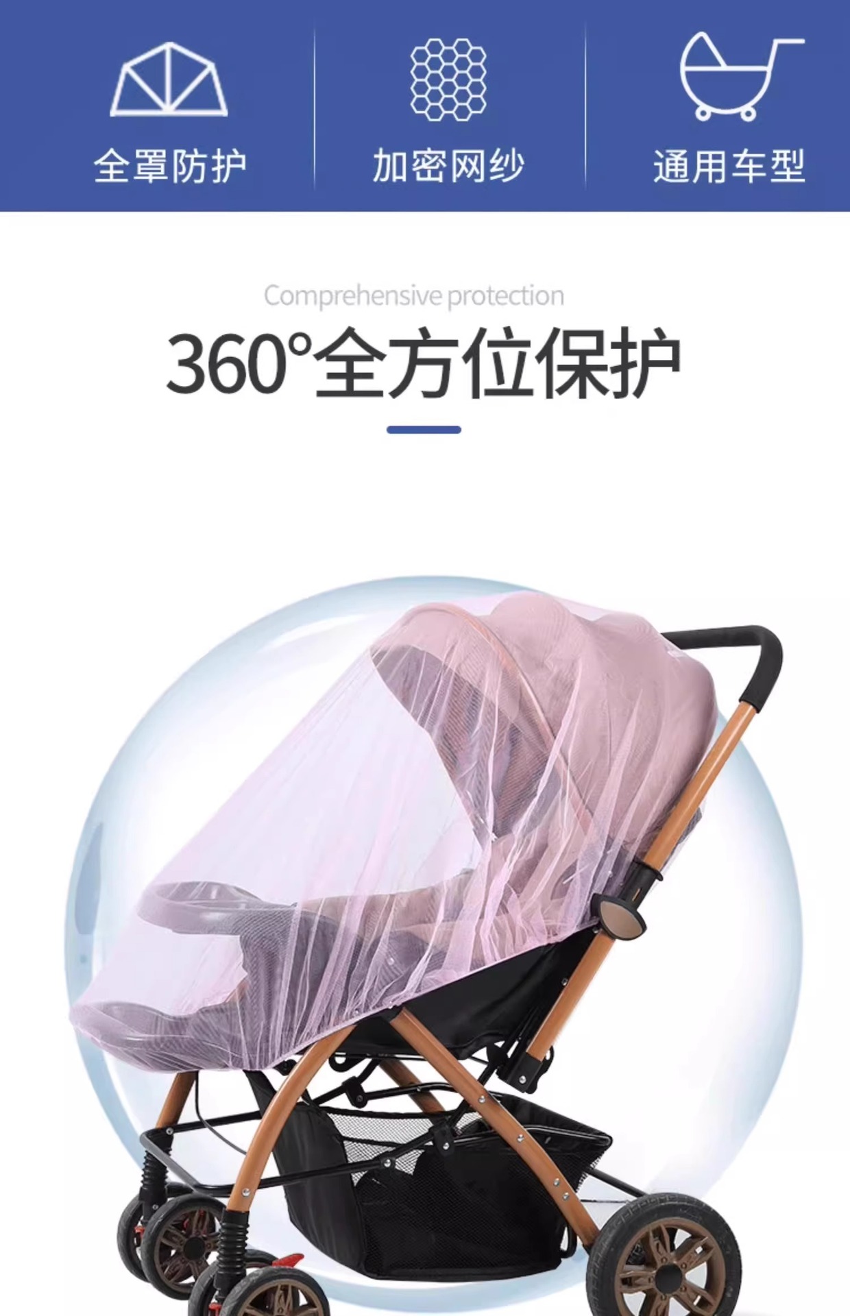 Carrinche de bebé mosquiteros de cubierta completa, carrinche de bebé general, cubierta anti-mosquiteros para niños, paraguas para niños pequeños, hilo de malla de cifrado ampliado
