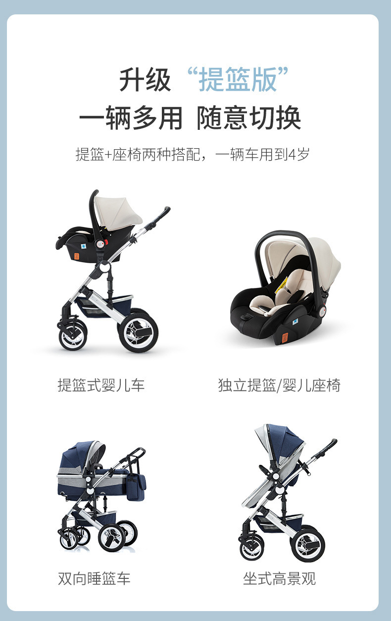 Cochecito cuatro en uno Asiento de seguridad para bebé recién nacido bidireccional Asiento de automóvil tipo cesta Cochecito tres en uno para bebé