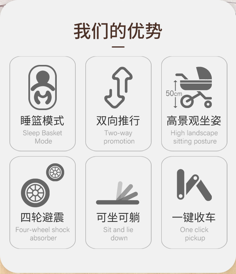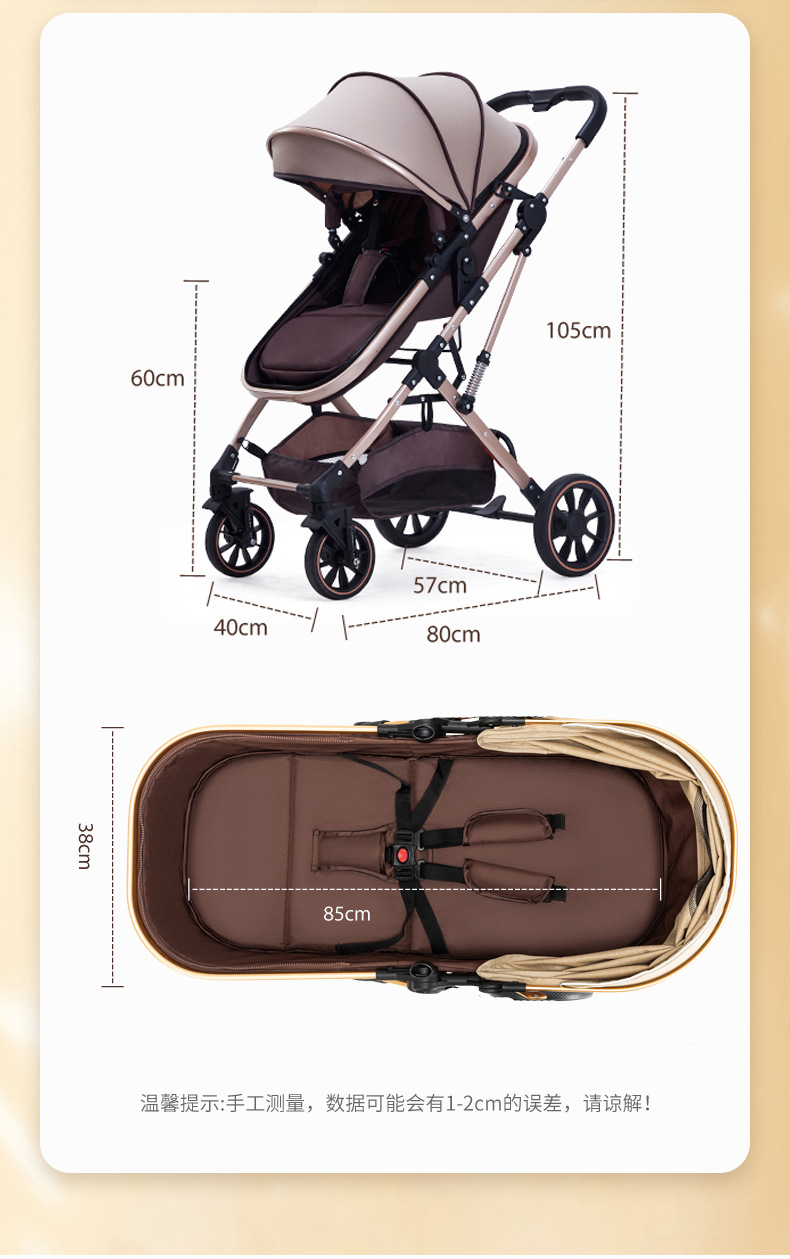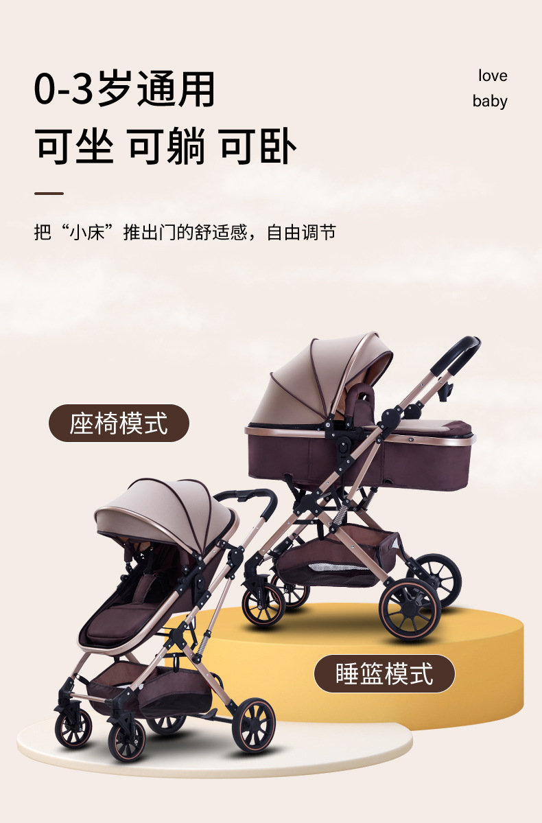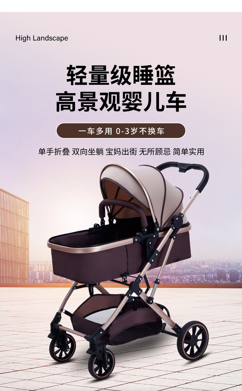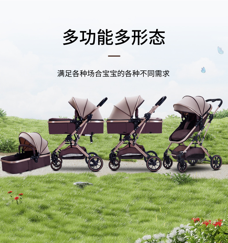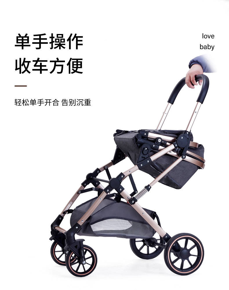 Carrinche de bebé se puede sentar y acostar ligero plegable alto paisaje cuatro ruedas de amortiguación bidireccional cochecito de bebé recién nacido