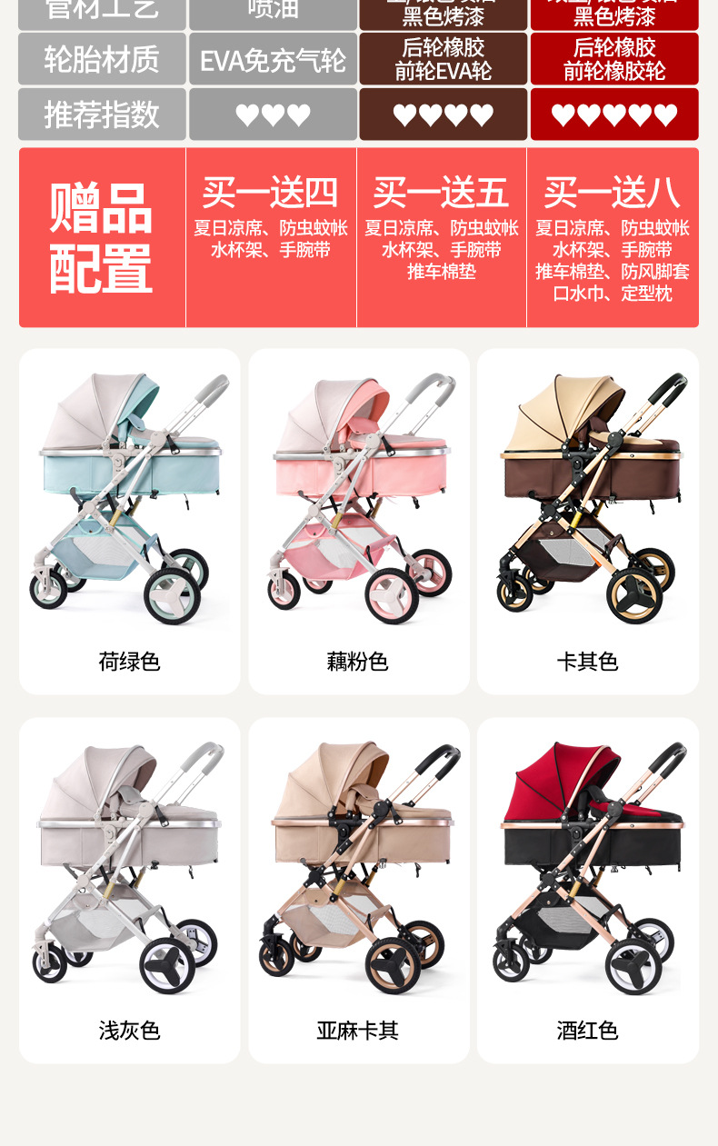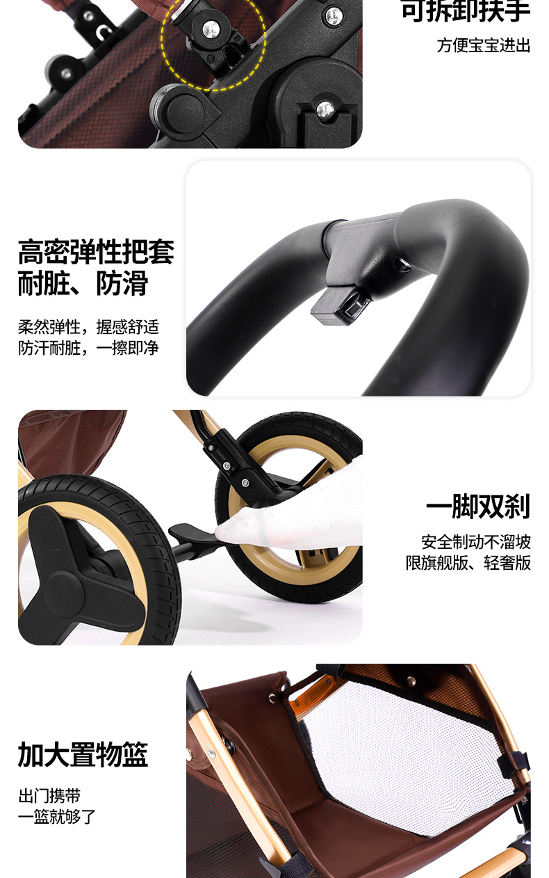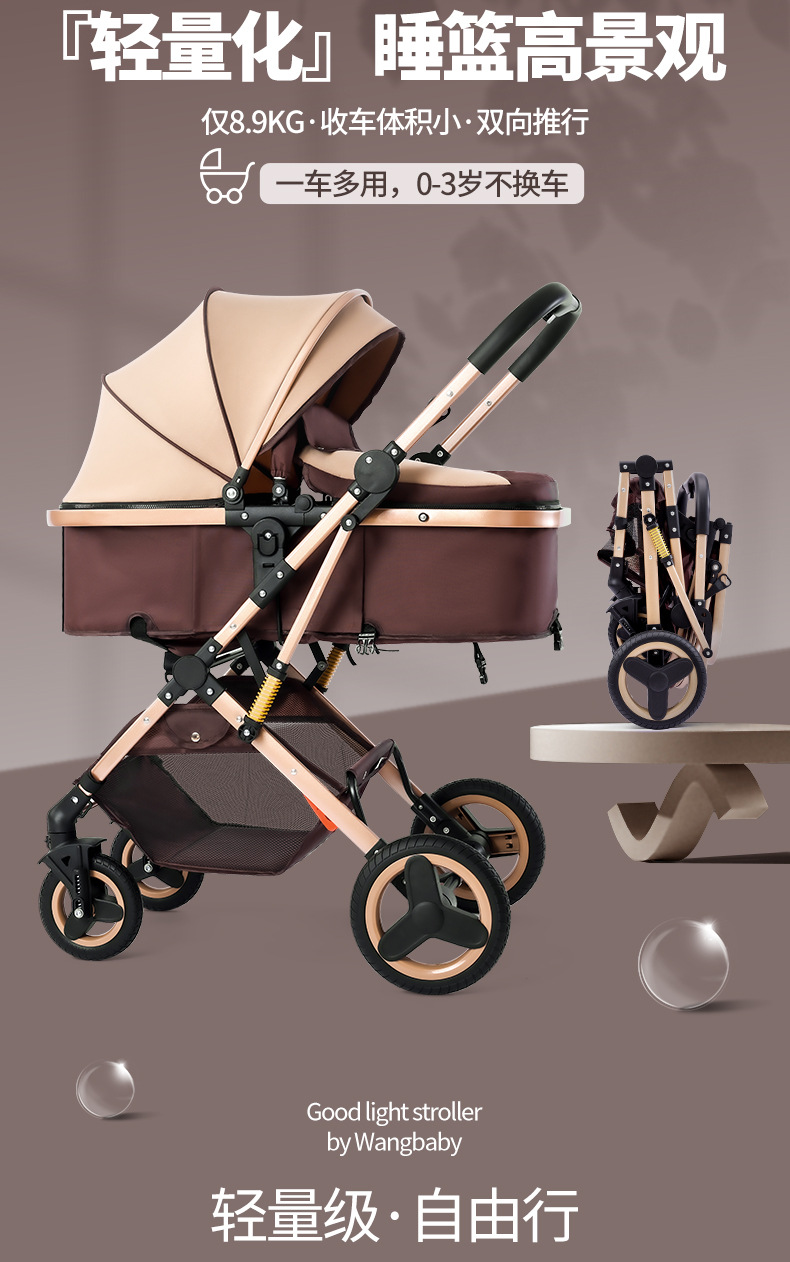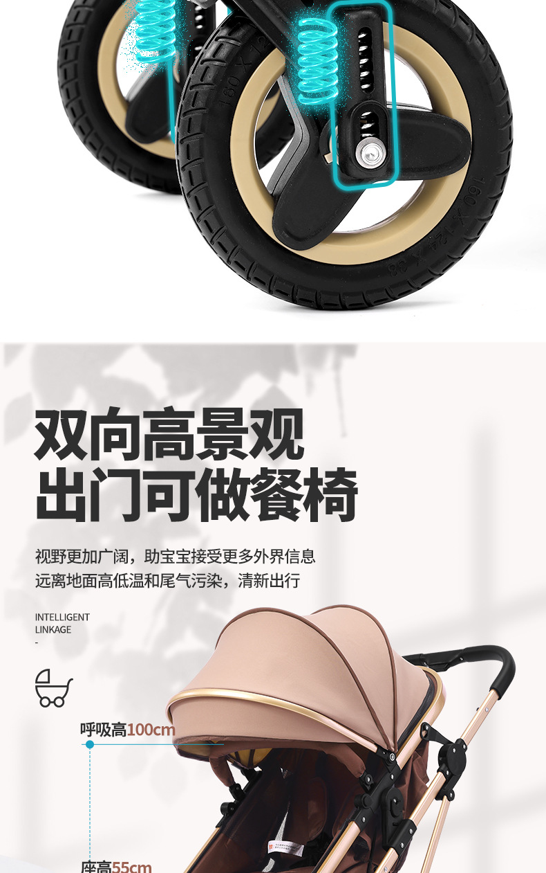 alto paisaje coche de bebé plegable bidireccional coche de niños caminando artefacto coche de bebé EVA ruedas ligeras