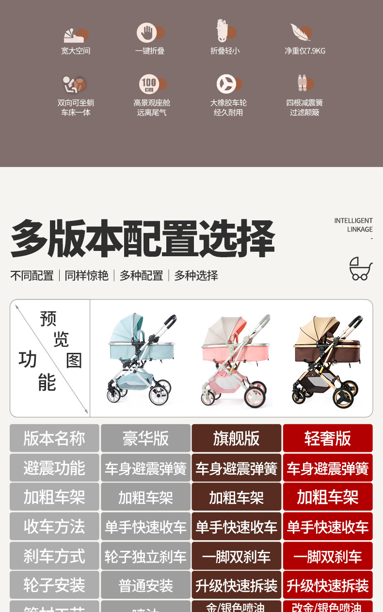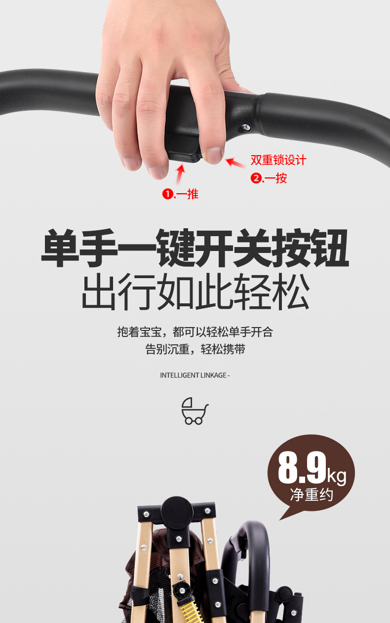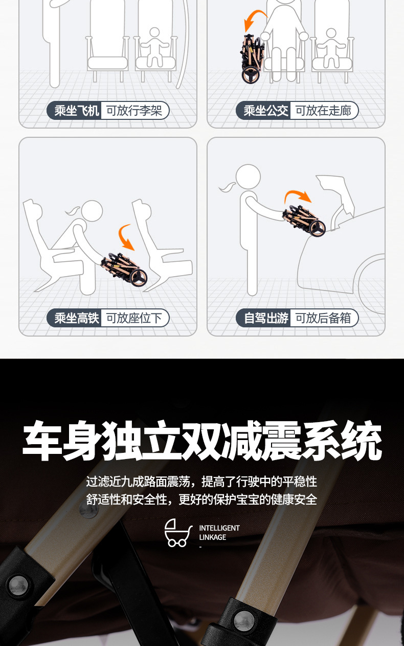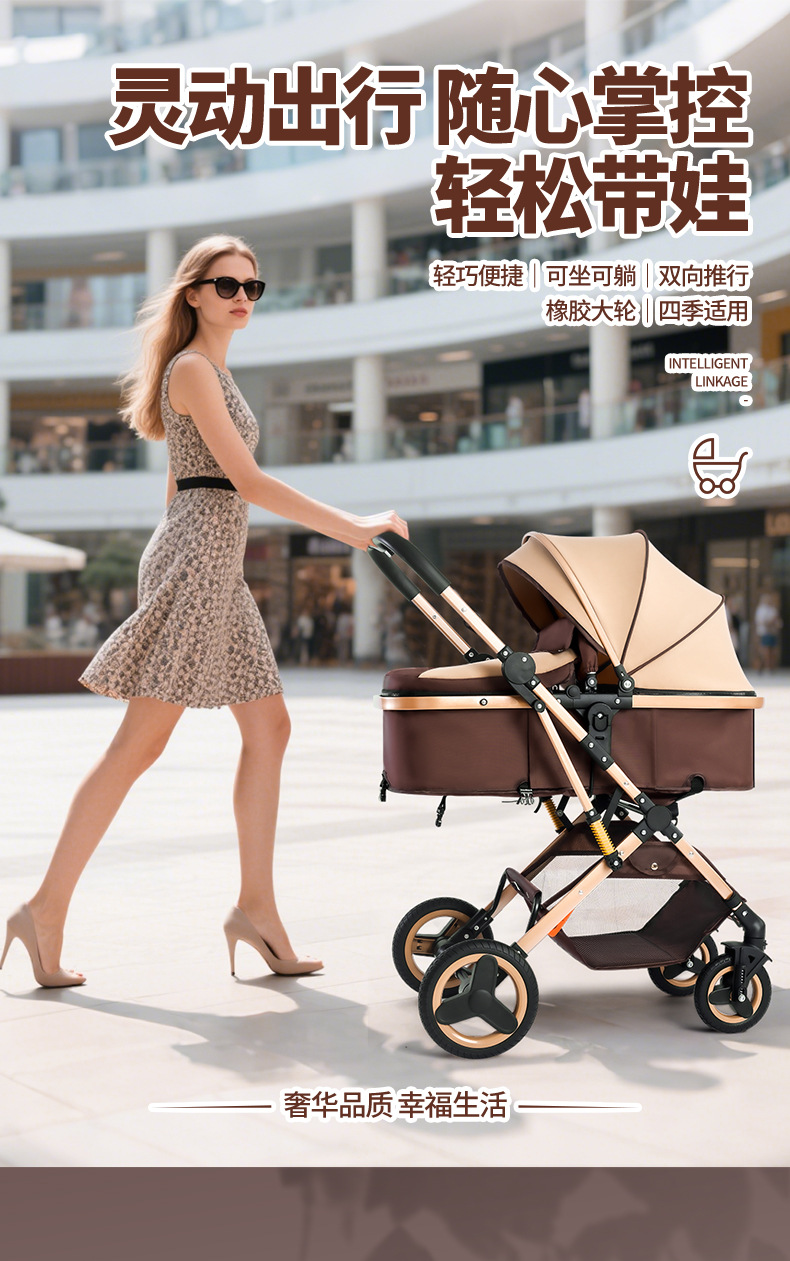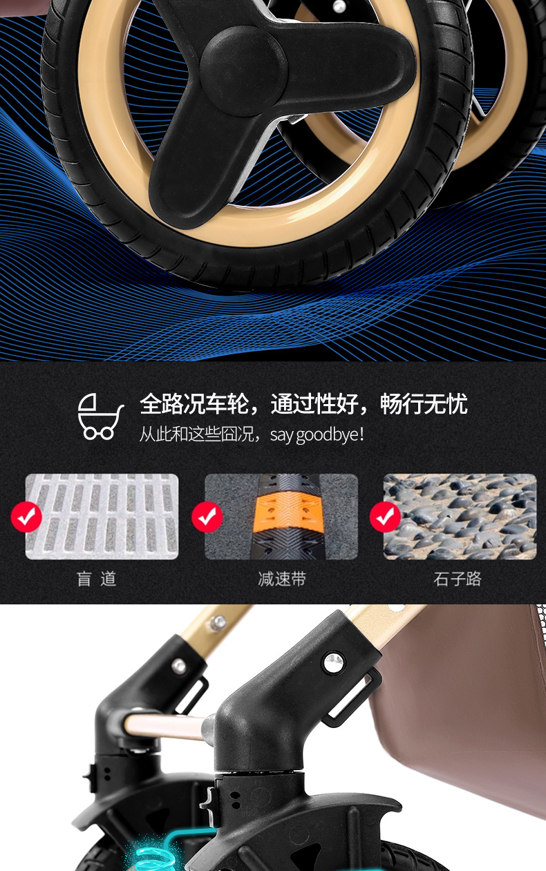 alto paisaje coche de bebé plegable bidireccional coche de niños caminando artefacto coche de bebé EVA ruedas ligeras