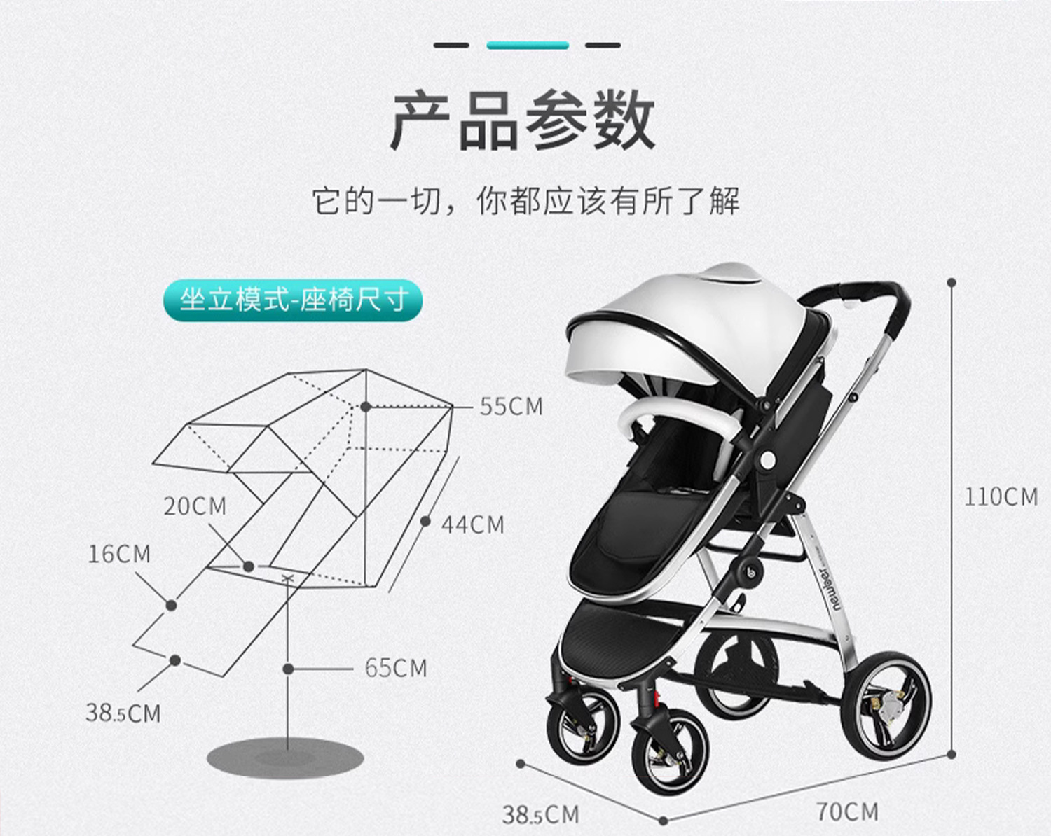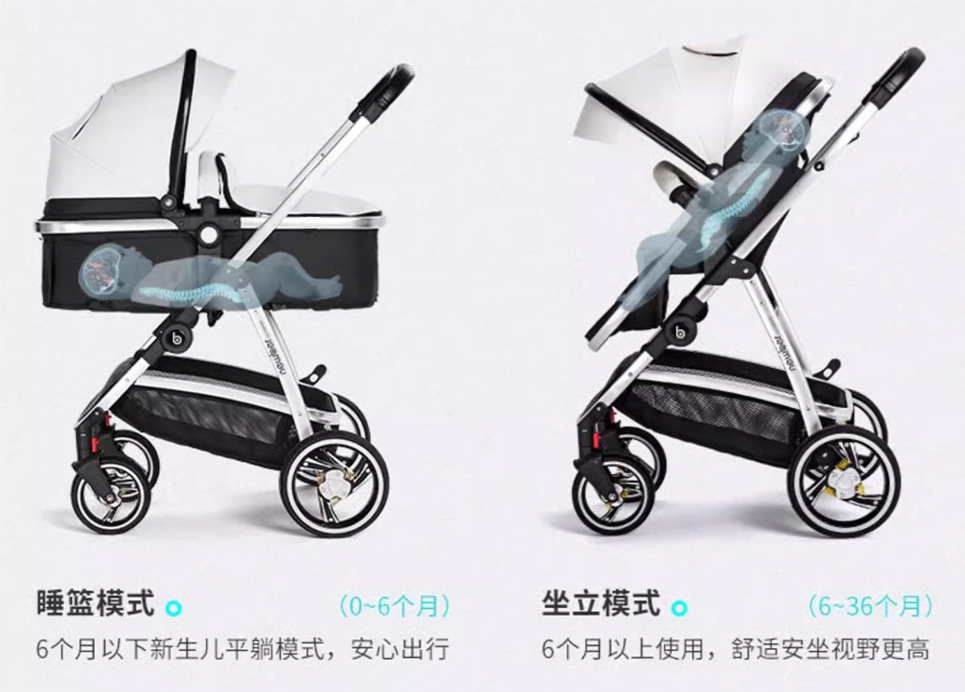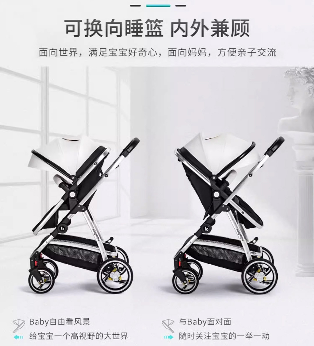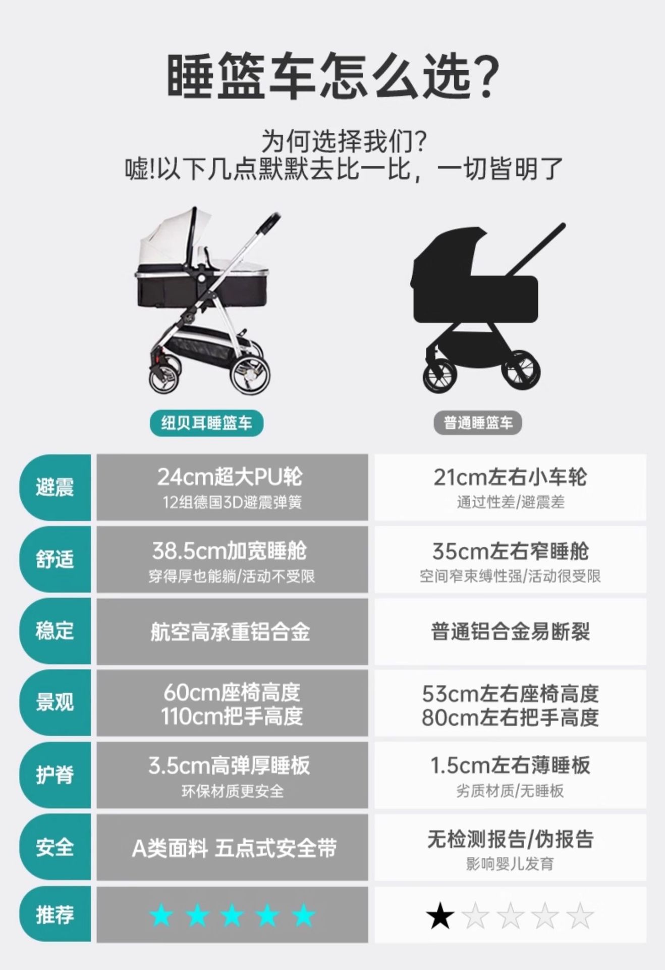 Newber El cochecito de bebé de Newbell puede sentarse y acostarse, ligero, plegable, de alto paisaje, cesta para dormir para bebés de 0 a 3 años