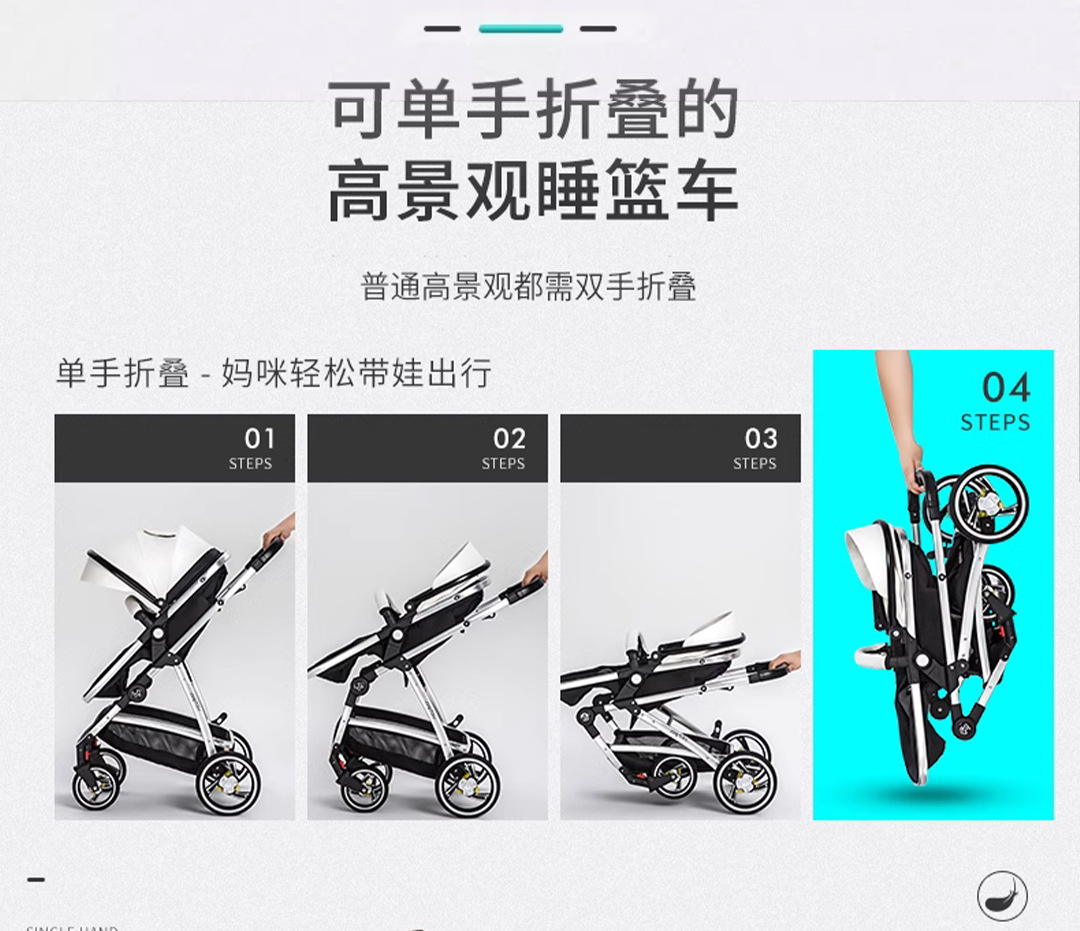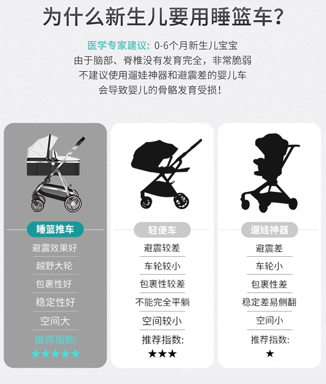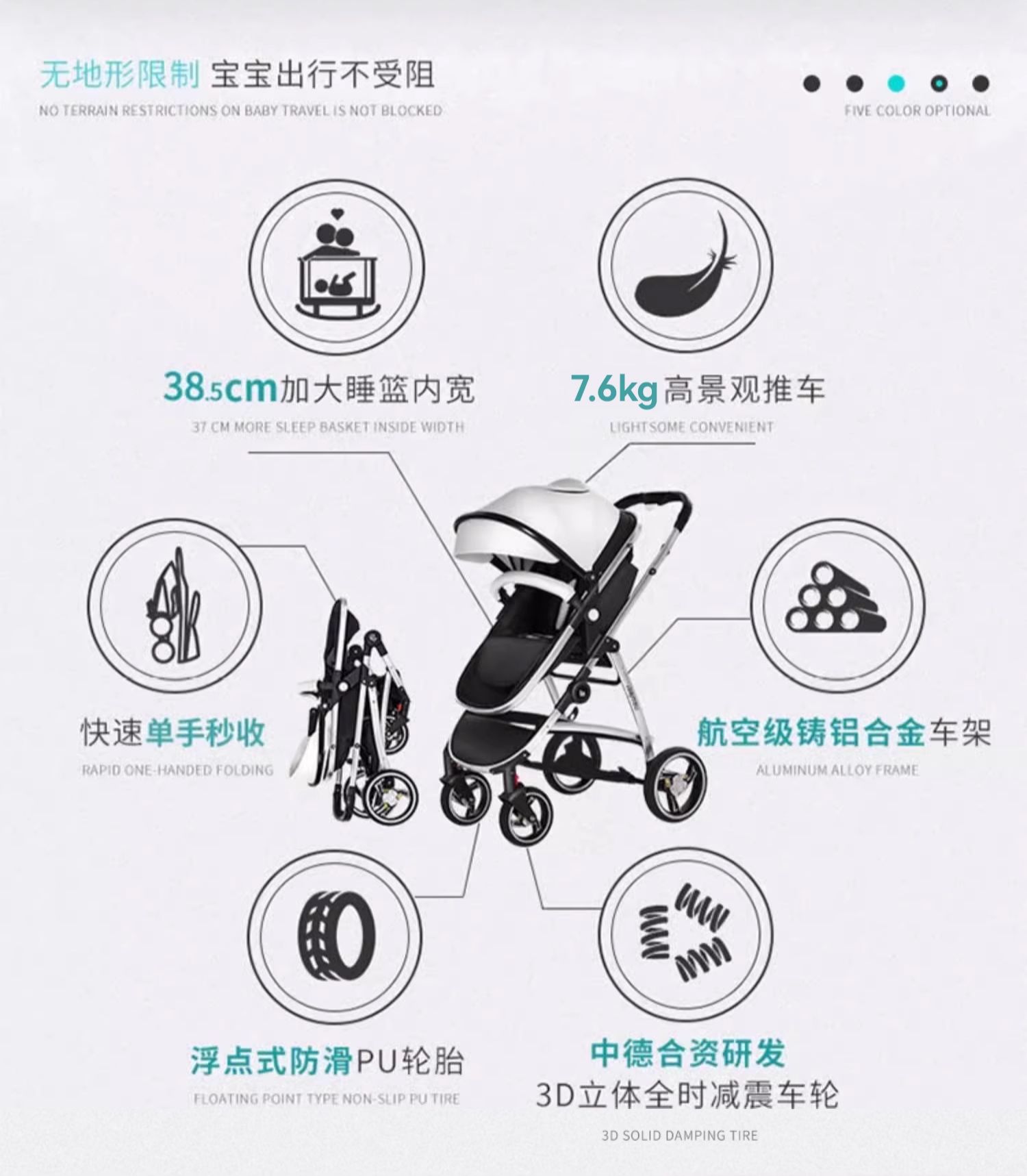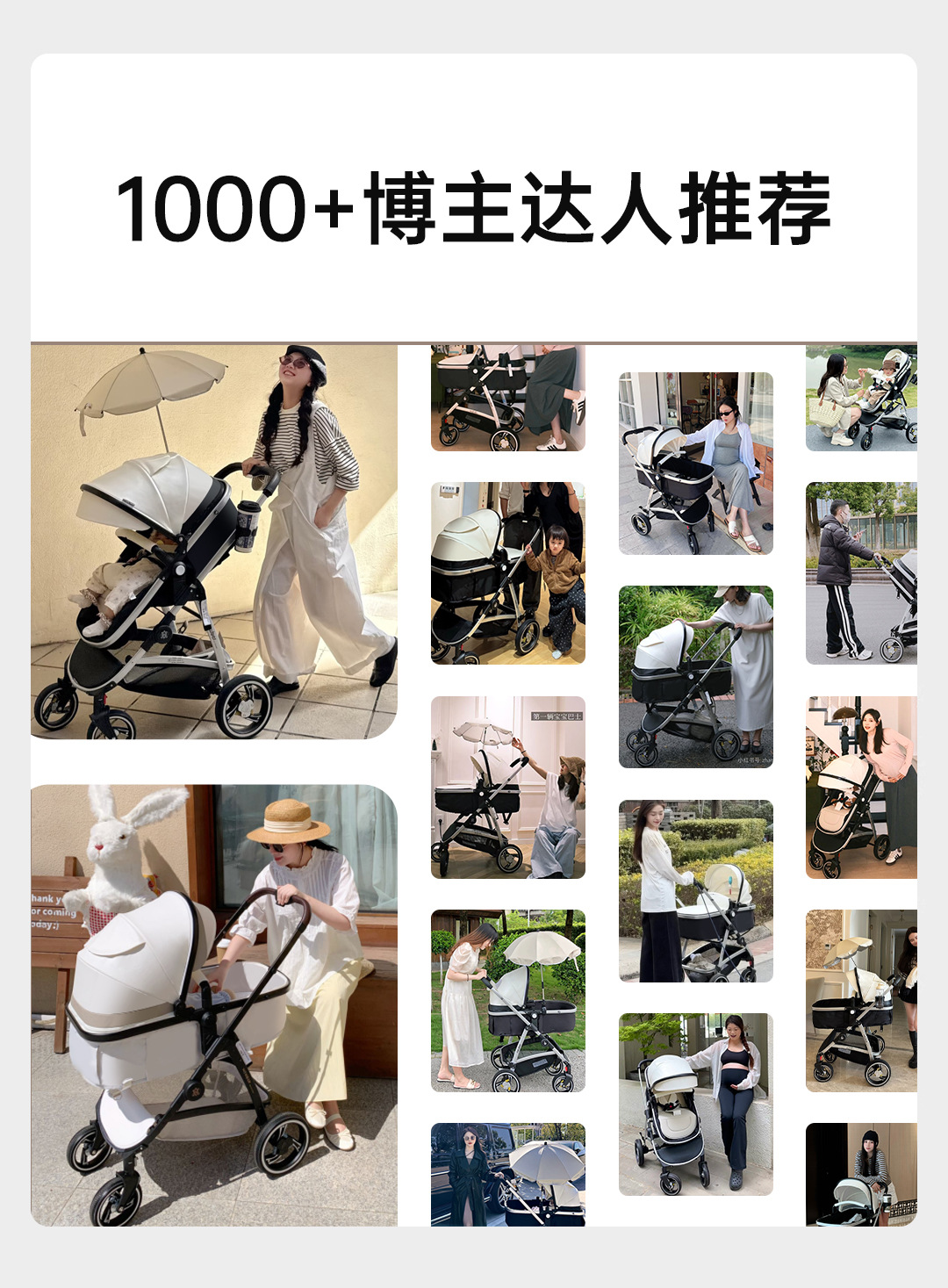 Newber El cochecito de bebé de Newbell puede sentarse y acostarse, ligero, plegable, de alto paisaje, cesta para dormir para bebés de 0 a 3 años