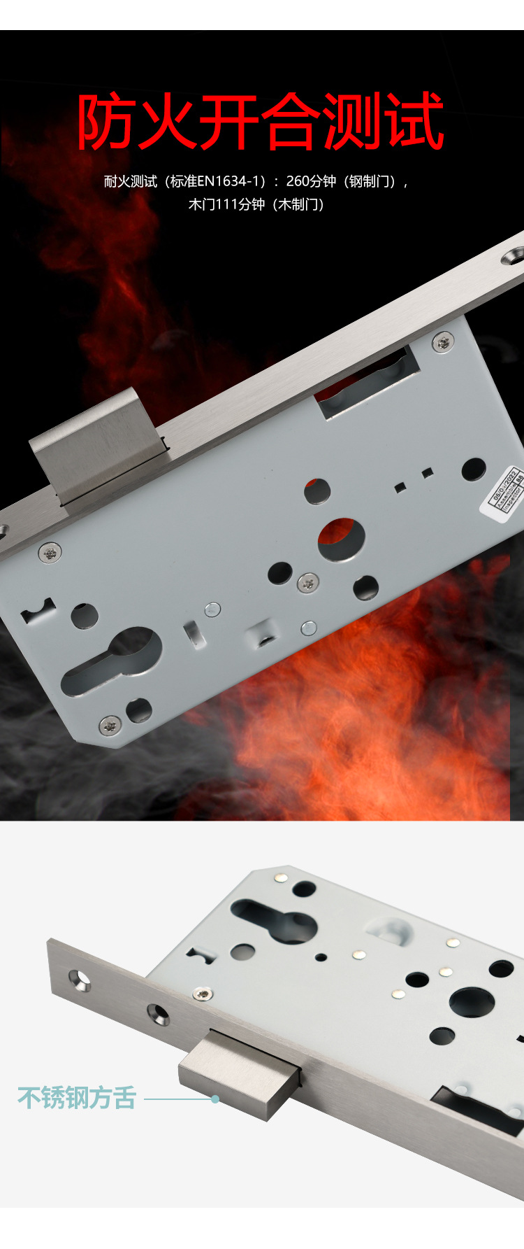 Cuerpo de cerradura de puerta de pozo de tubo de incendio de acero inoxidable 304 personalizado Cuerpo de cerradura de fuego de canal certificado CE Cuerpo de cerradura de lengüeta cuadrada única estándar europea