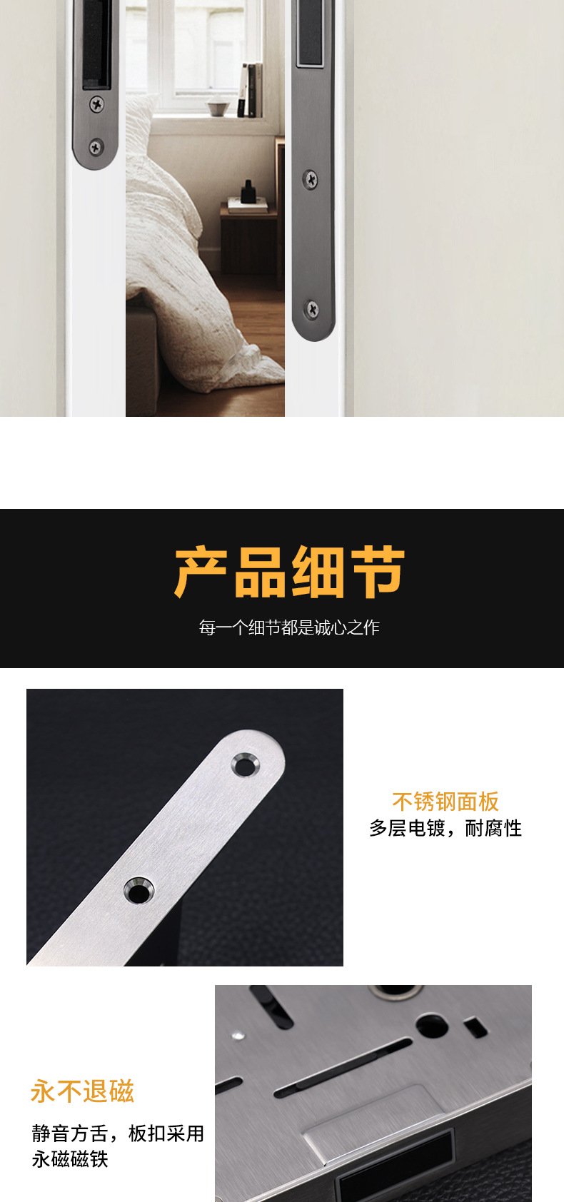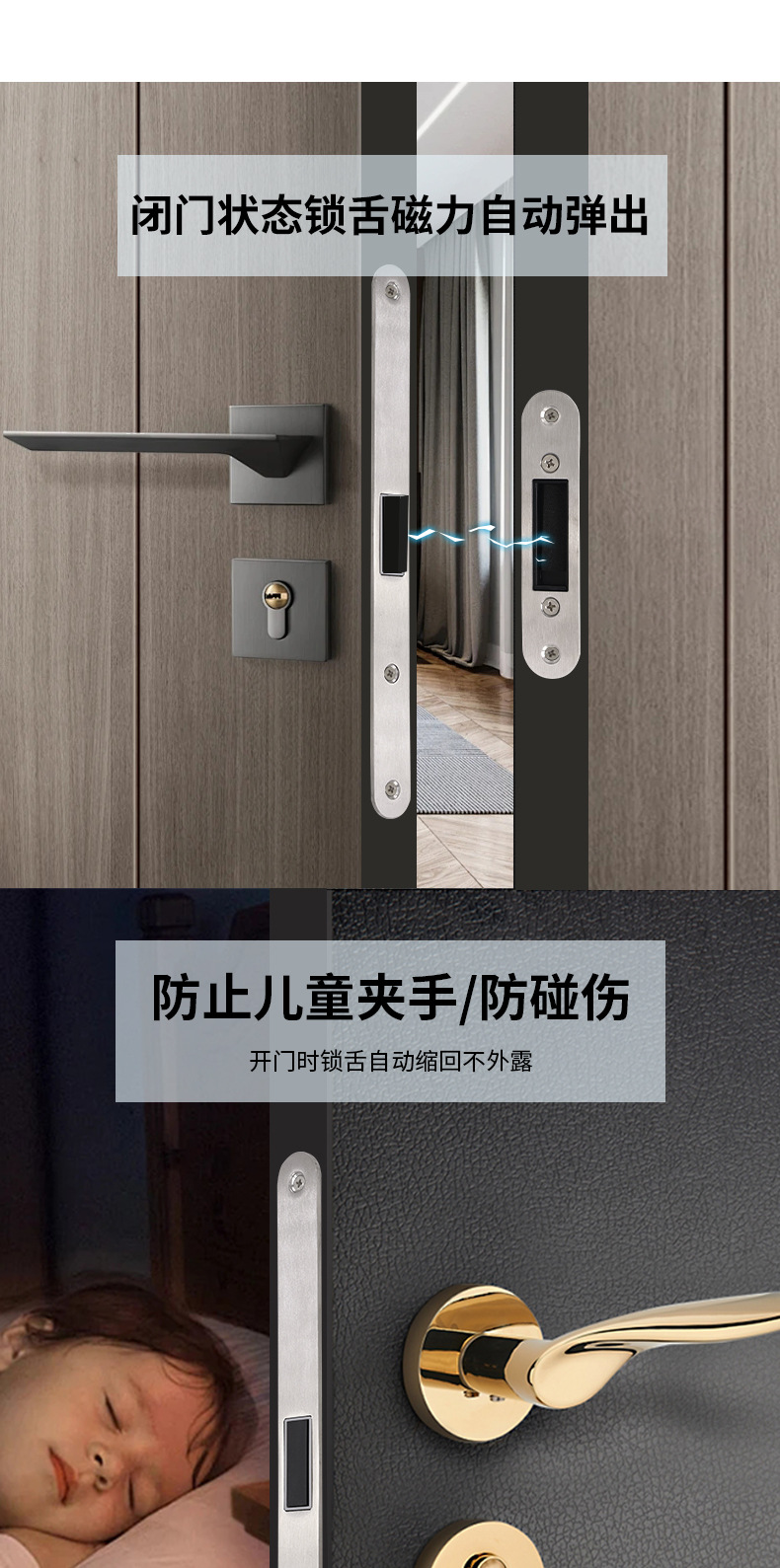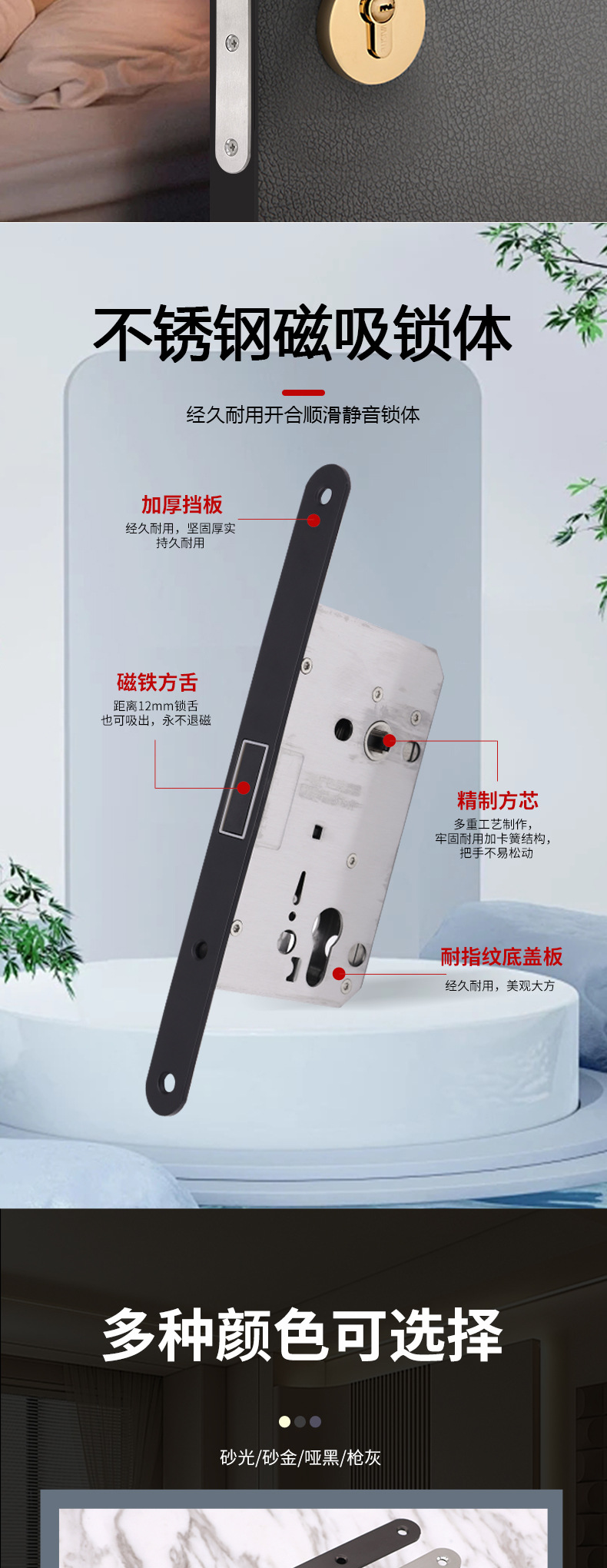 Estándar europeo 5572 bloqueo silencioso de absorción magnética multicolor opcional de acero inoxidable bloqueo de lengua cuadrada puerta de dormitorio bloqueo de puerta interior