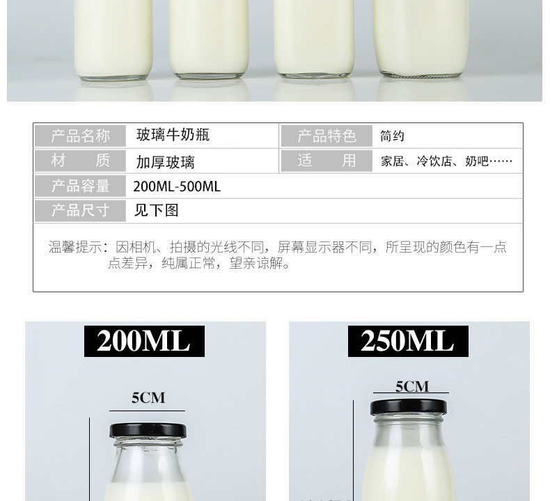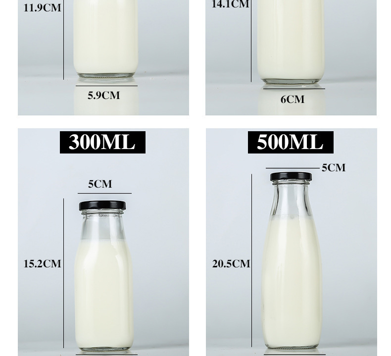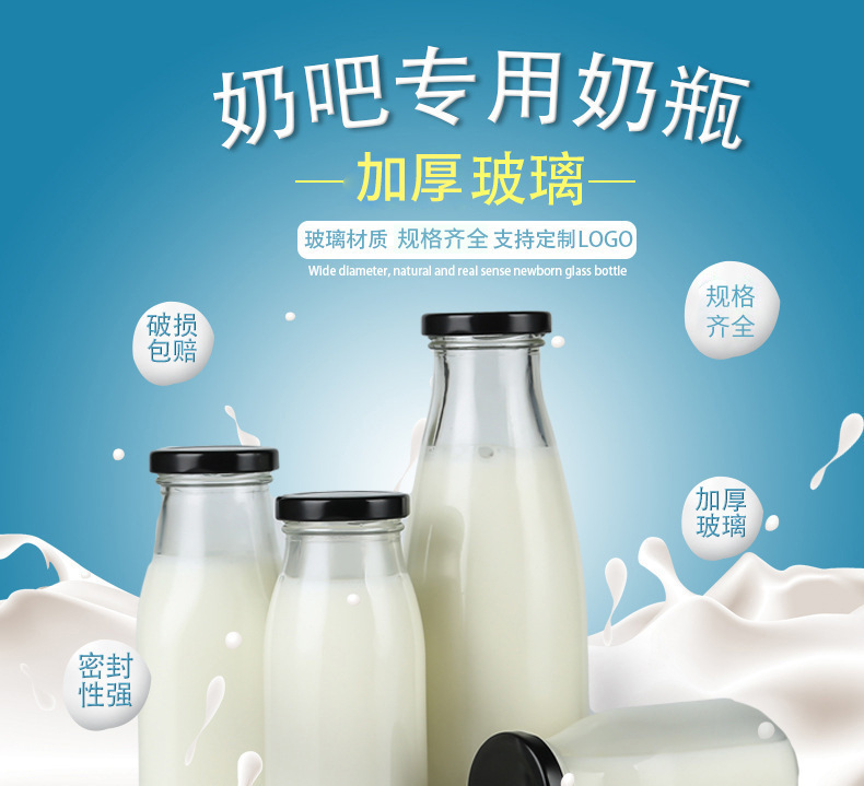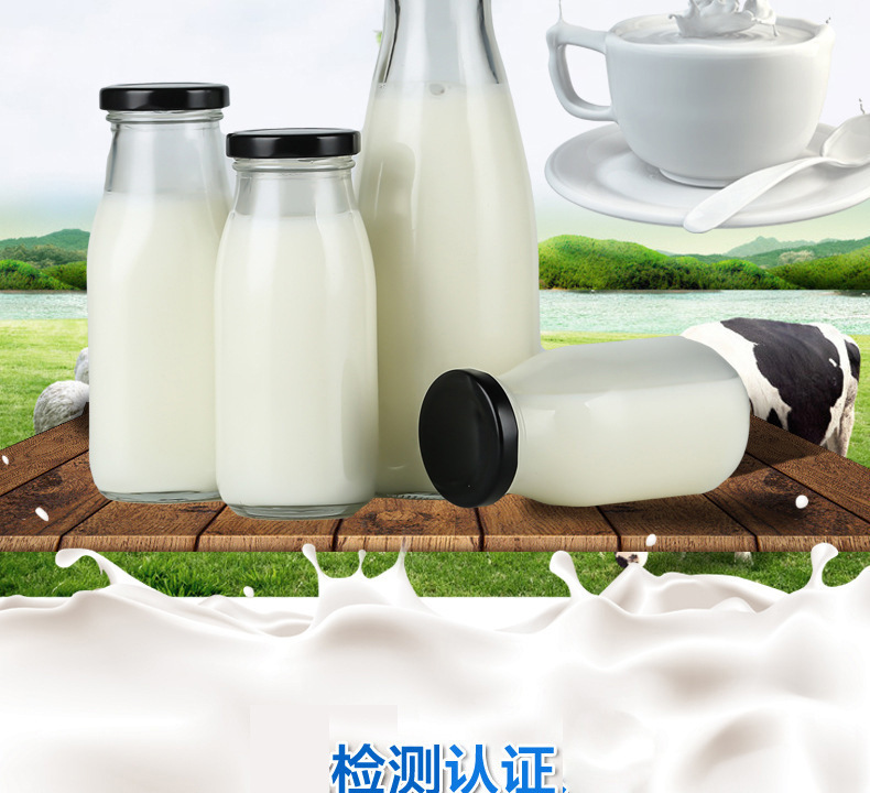 Botellas de vidrio para leche, botellas para leche fresca, vasos para yogur, varias especificaciones, botellas de vidrio transparente y grueso para leche, botellas dispensadoras de yogur