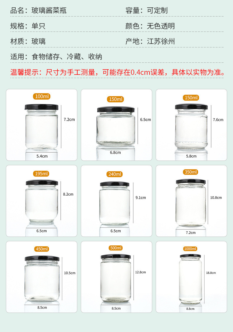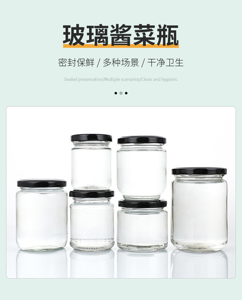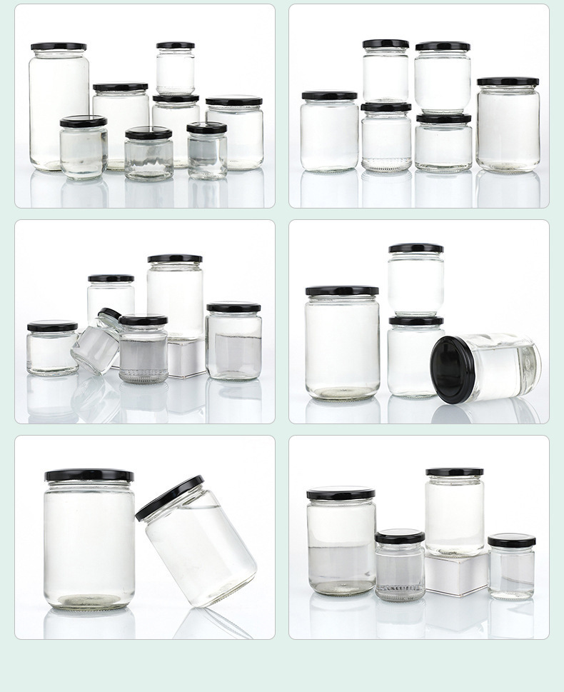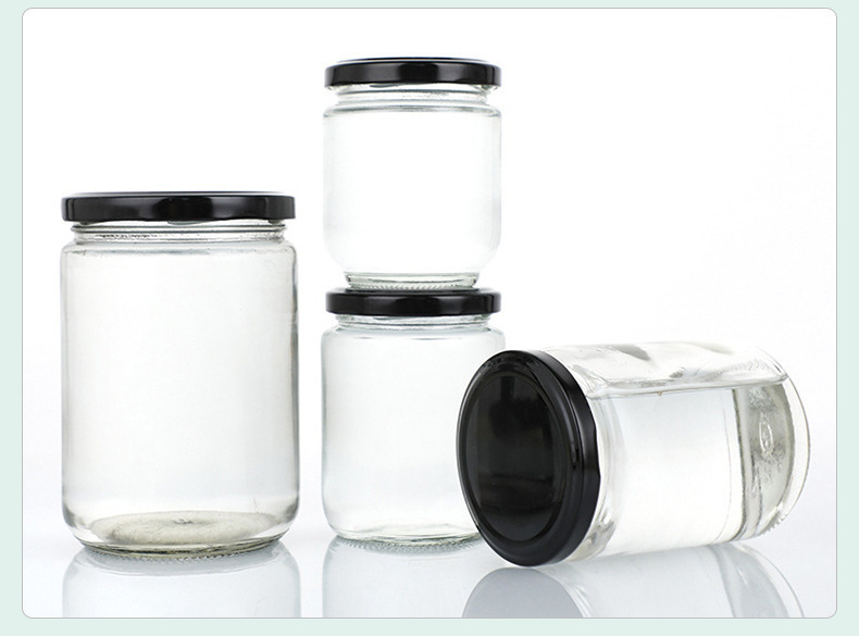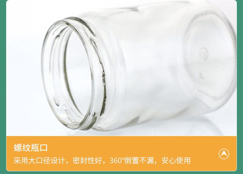Botella de salsa redonda resistente a altas temperaturas sellada transparente resistente a altas temperaturas botella de melocotón amarillo enlatada botella de miel frutas botella de vidrio spot