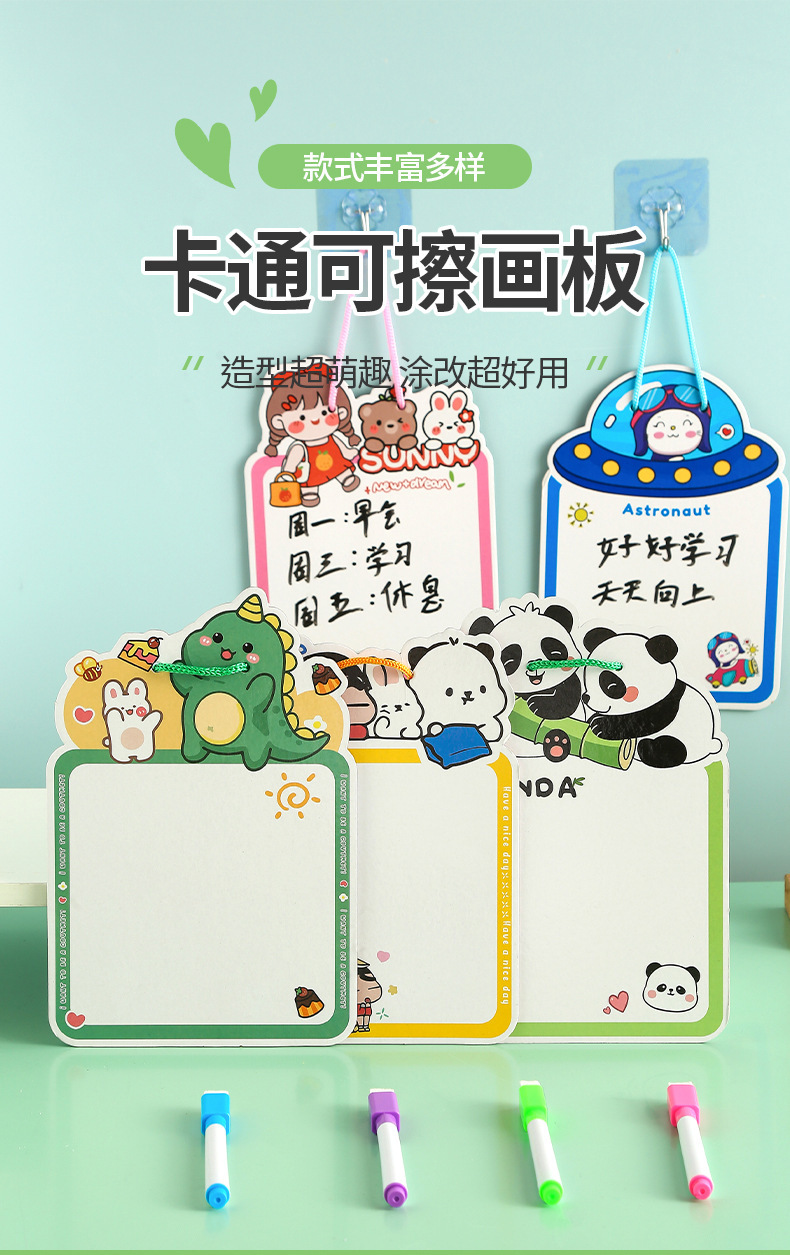 Tablero de dibujo borrable de dibujos animados Jardín de infantes para niños Educación temprana Tablero de dibujo de graffiti de escritura a doble cara Tablero de mensajes de escritura borrable para estudiantes