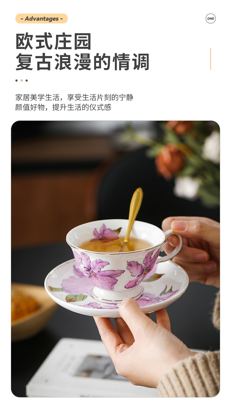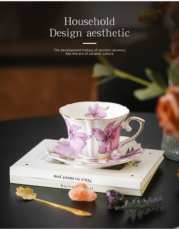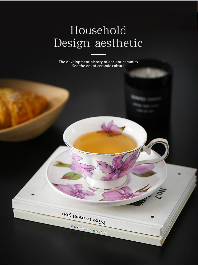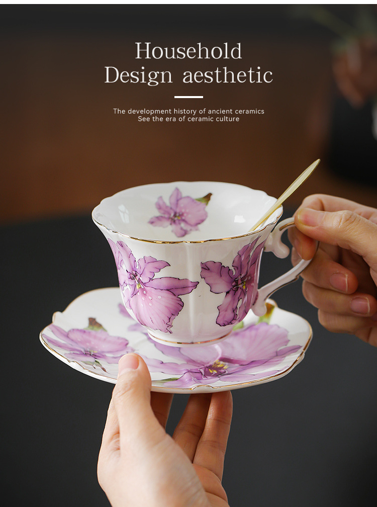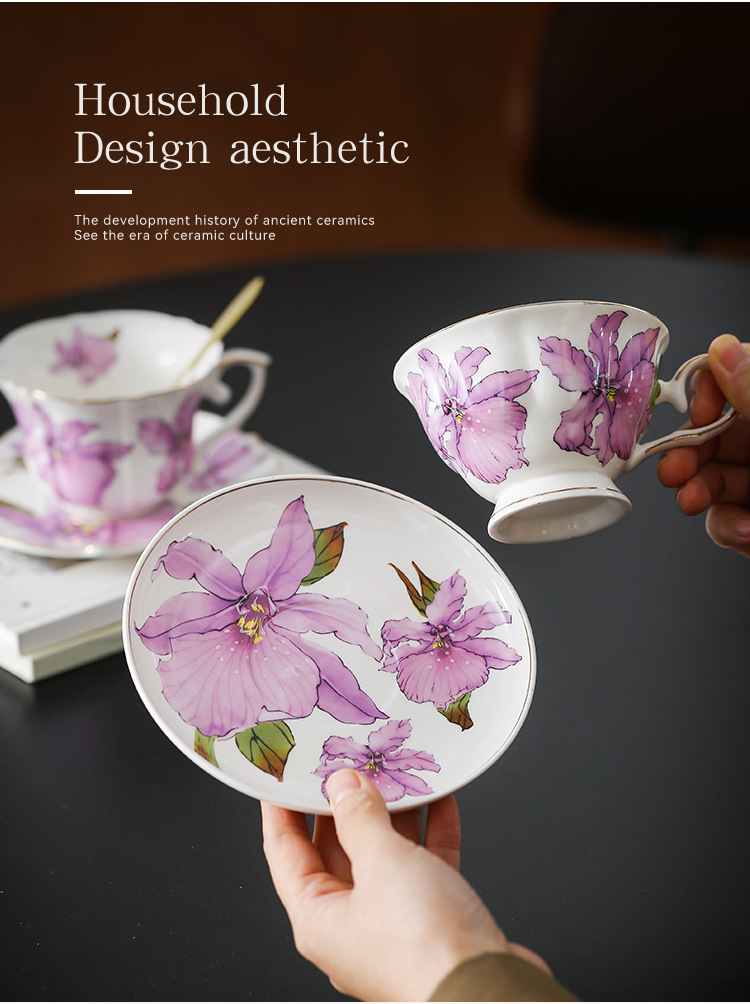 Ins taza de café de lirio de alto valor platillo taza de cerámica de oro transfronterizo nórdico taza de té de flores de Phnom Penh simple para el hogar