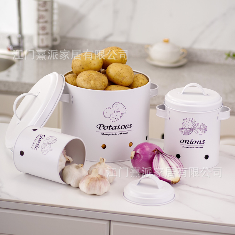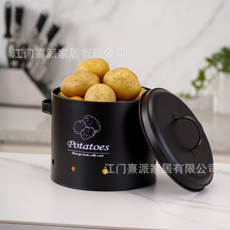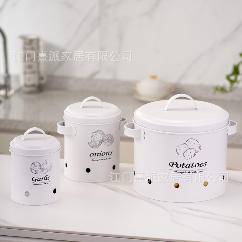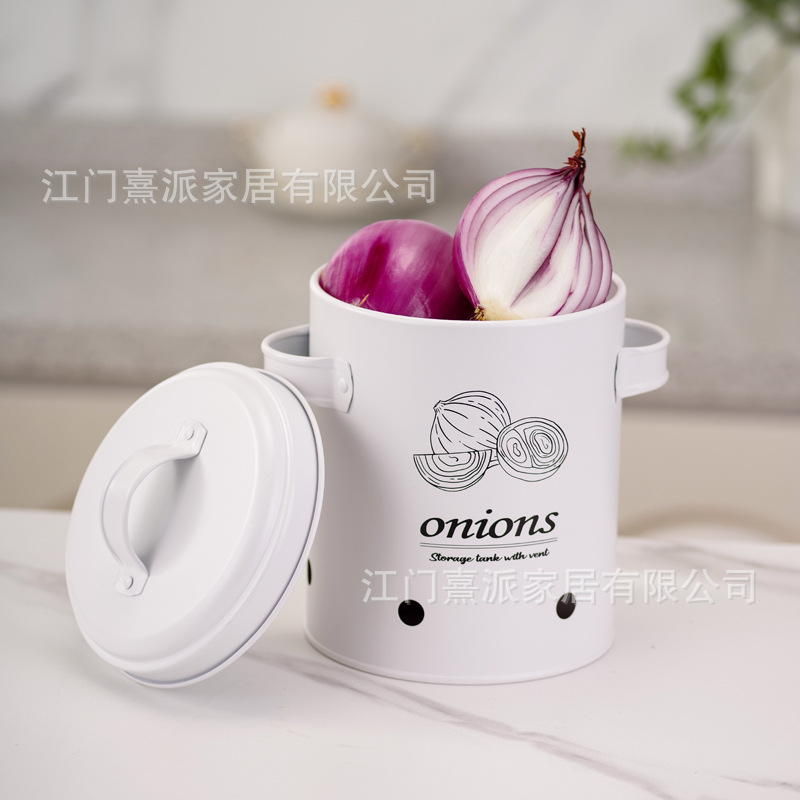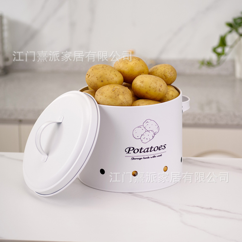 Barril de almacenamiento de patatas transfronterizas con orificio de ventilación, tanque de almacenamiento de cebolla y ajo, tanque de almacenamiento multifuncional de hierro