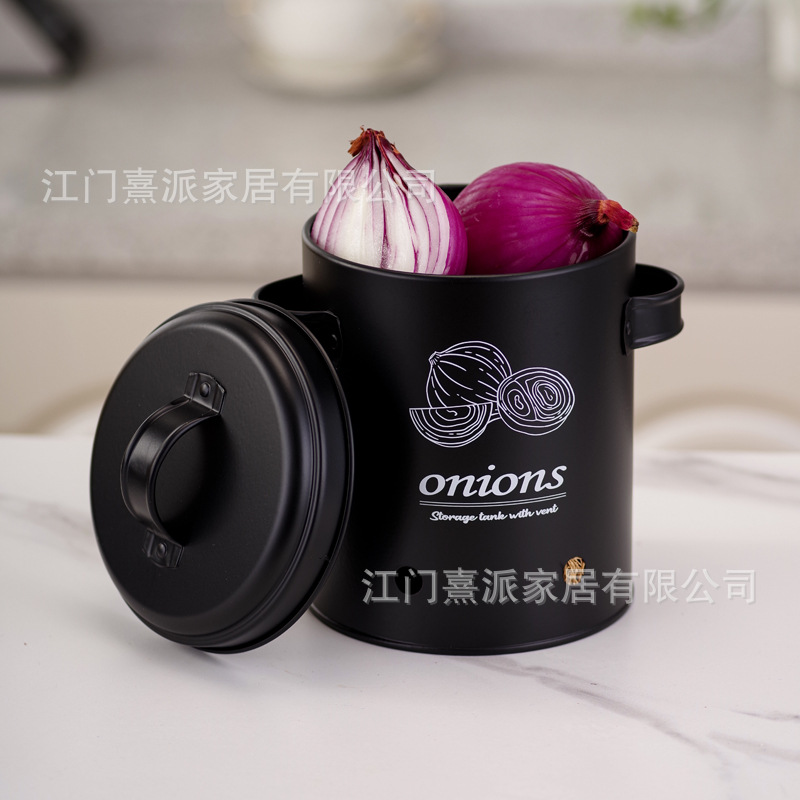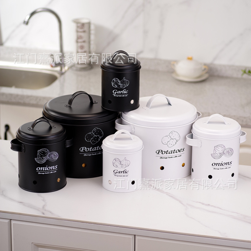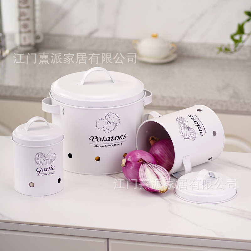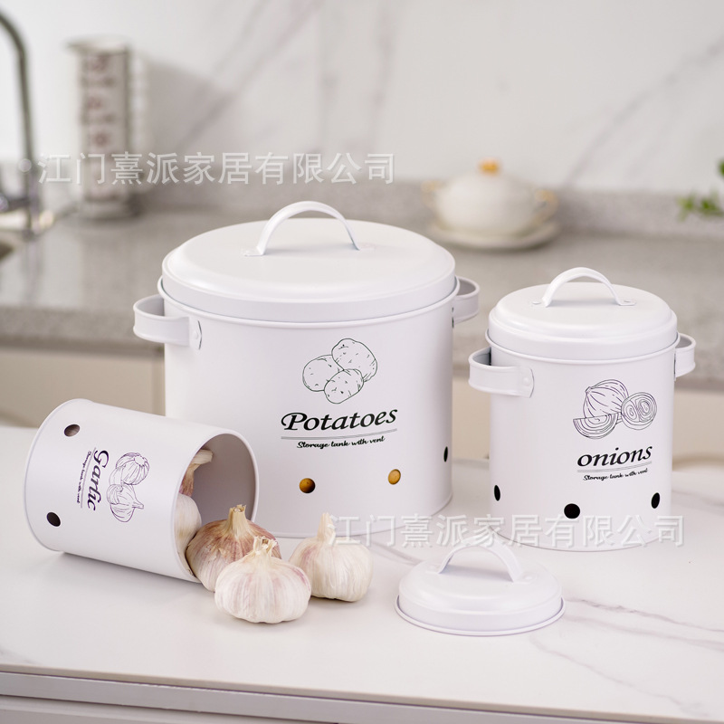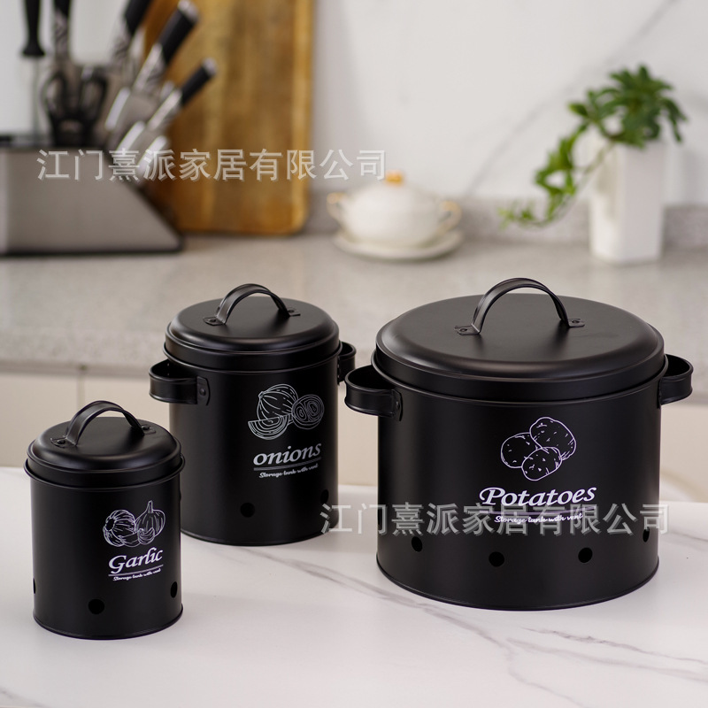 Barril de almacenamiento de patatas transfronterizas con orificio de ventilación, tanque de almacenamiento de cebolla y ajo, tanque de almacenamiento multifuncional de hierro