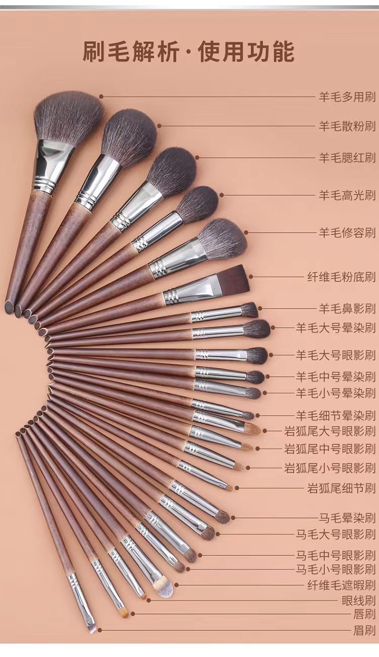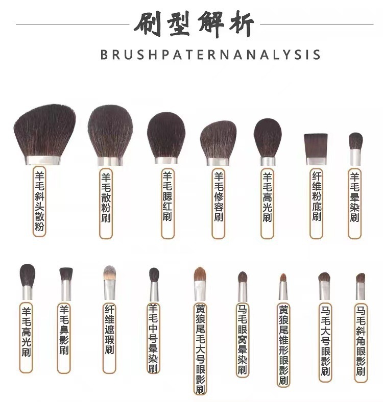 24 conjuntos de cepillo de maquillaje lana animal Cangzhou de alta gama conjunto completo de cepillo maquillaje profesional herramienta de cepillo especial