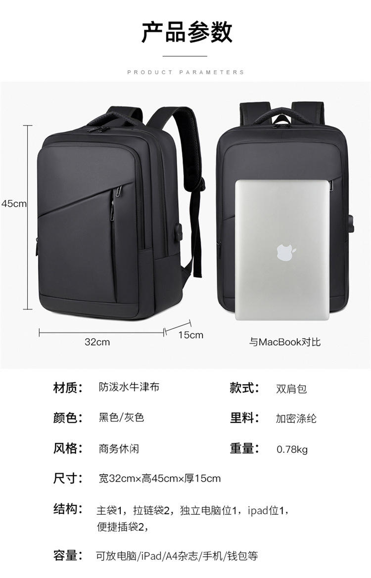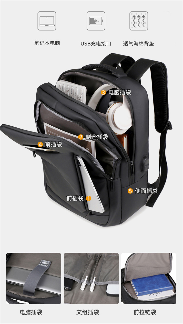 El nuevo tipo transfronterizo de gran capacidad, sensación de alta calidad, múltiples compartimentos, anti-salpicaduras de agua, mochila para computadora estúpida, mochila escolar al por mayor