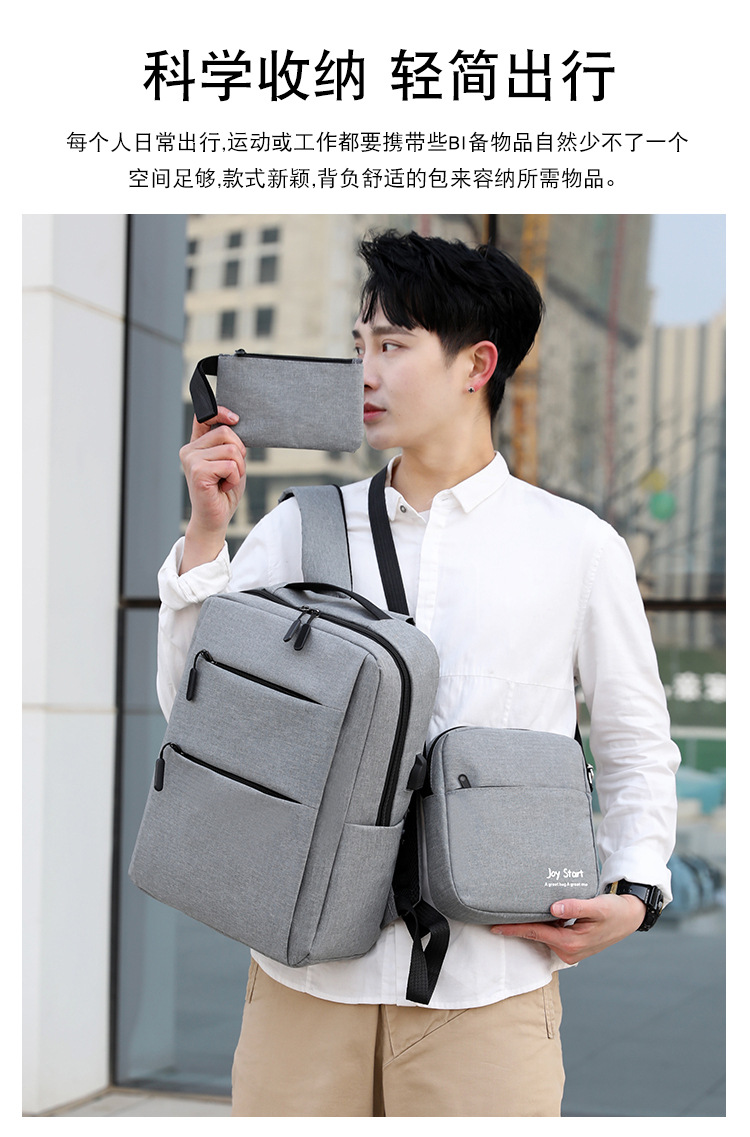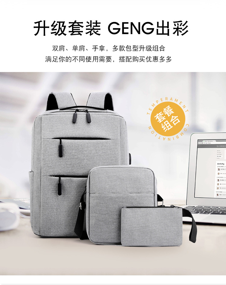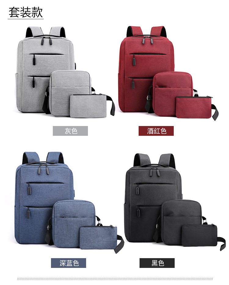 Nuevo conjunto transfronterizo de tres piezas de mochila de regalo de negocios paquete de mochila de computadora de color sólido coreano simple mochila de escuela secundaria