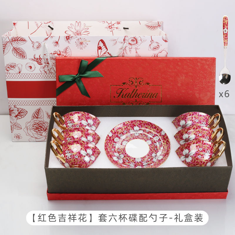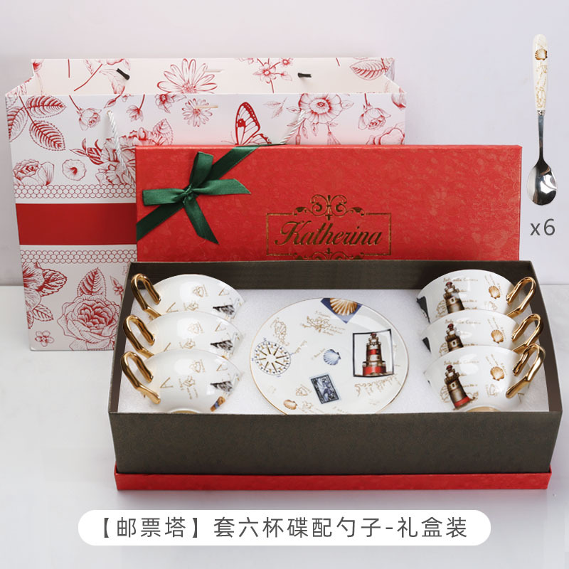 Caja de regalo de nuevo regalo de bodas de cerámica de hueso europeo, taza de café y plato, caja de regalo de boda de nuevo regalo de mano, caja de regalo de graduación