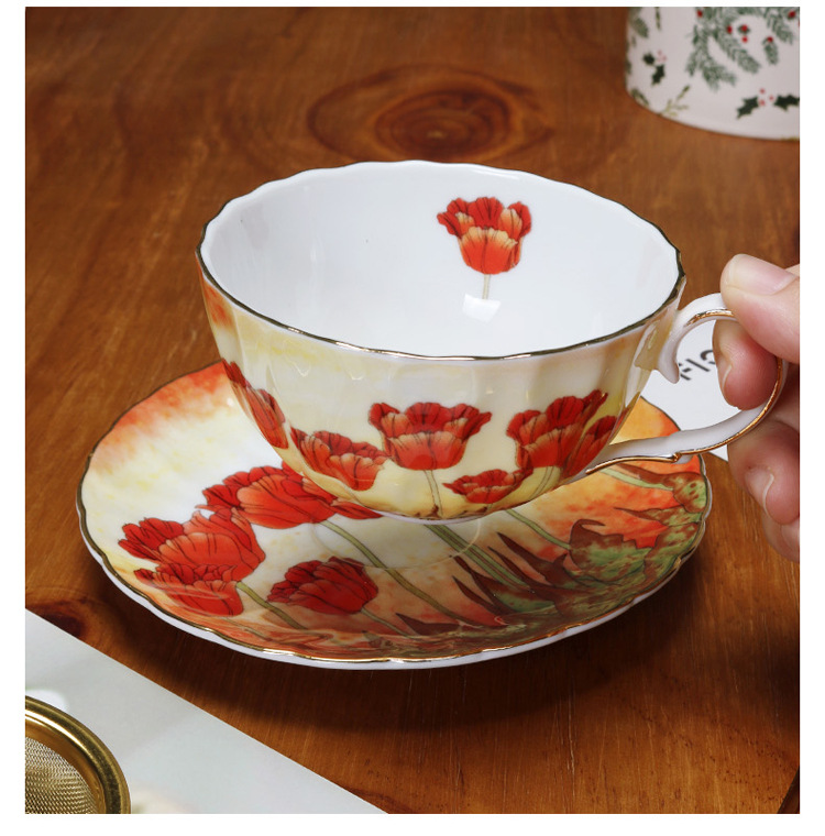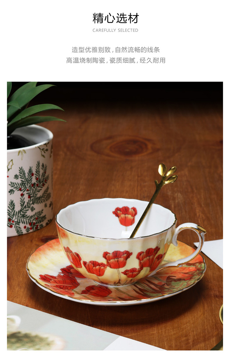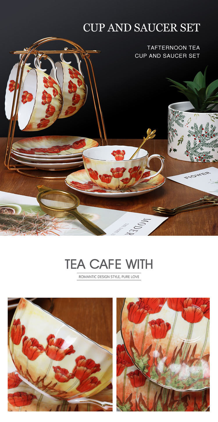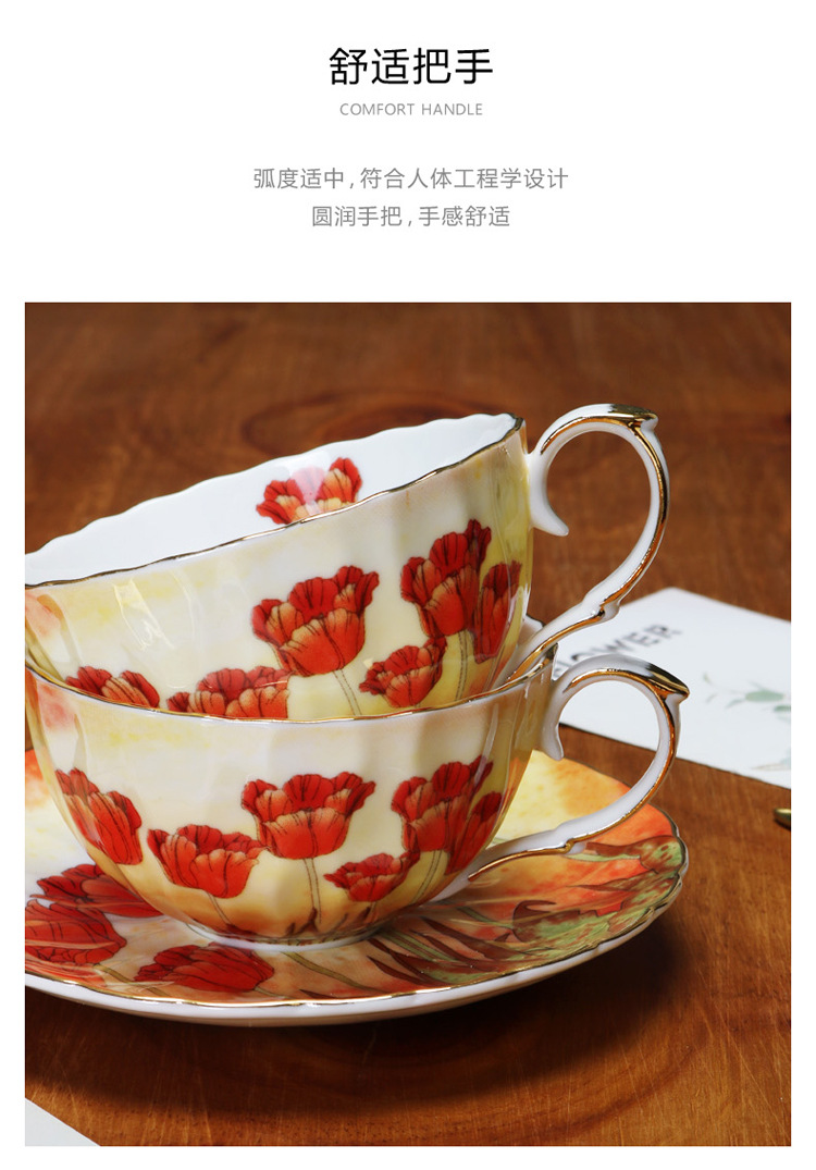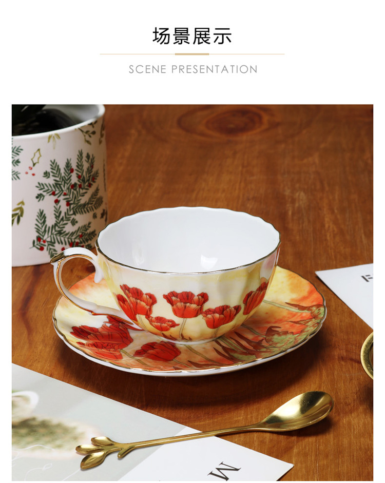 Juego de tazas y platillos de café de cerámica exquisita floral, porcelana de hueso de alto valor, juego de té de la tarde de estilo europeo, caja de regalo, productos de cola de exportación