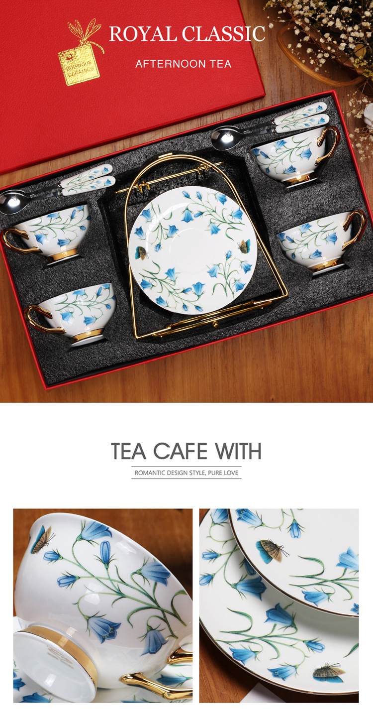Juego de tazas y platillos de porcelana china de lujo ligero, exquisito juego de té de la tarde británico, recuerdo de boda