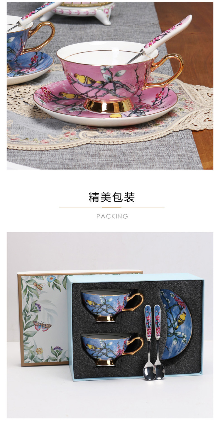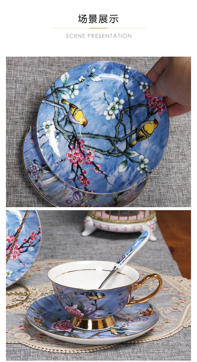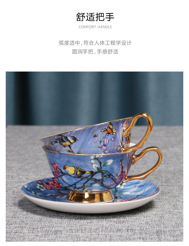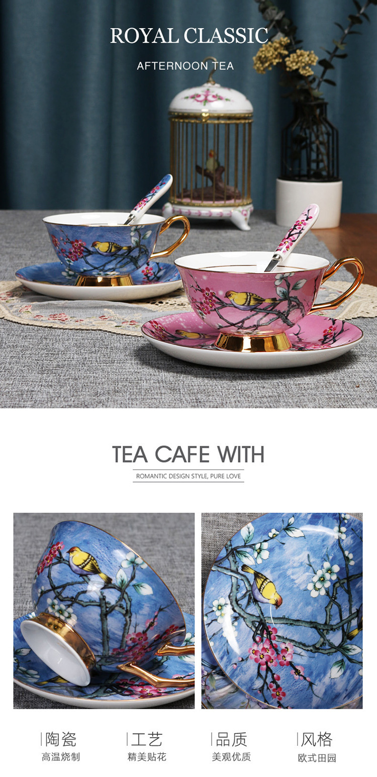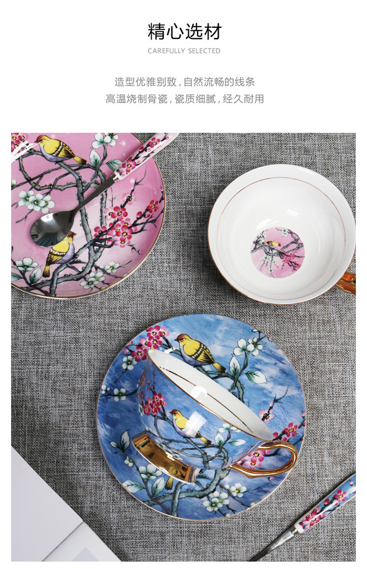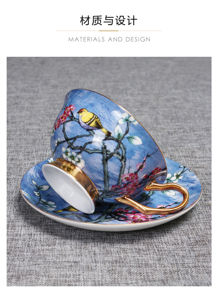 Flor y pájaro pintura oro hueso China taza de café platillo traje nuevo pequeño lujo Té taza de té