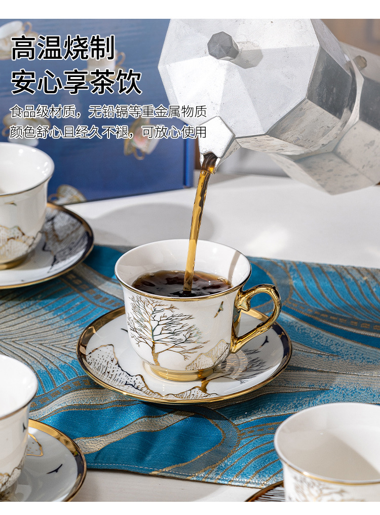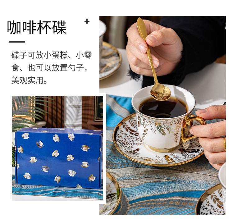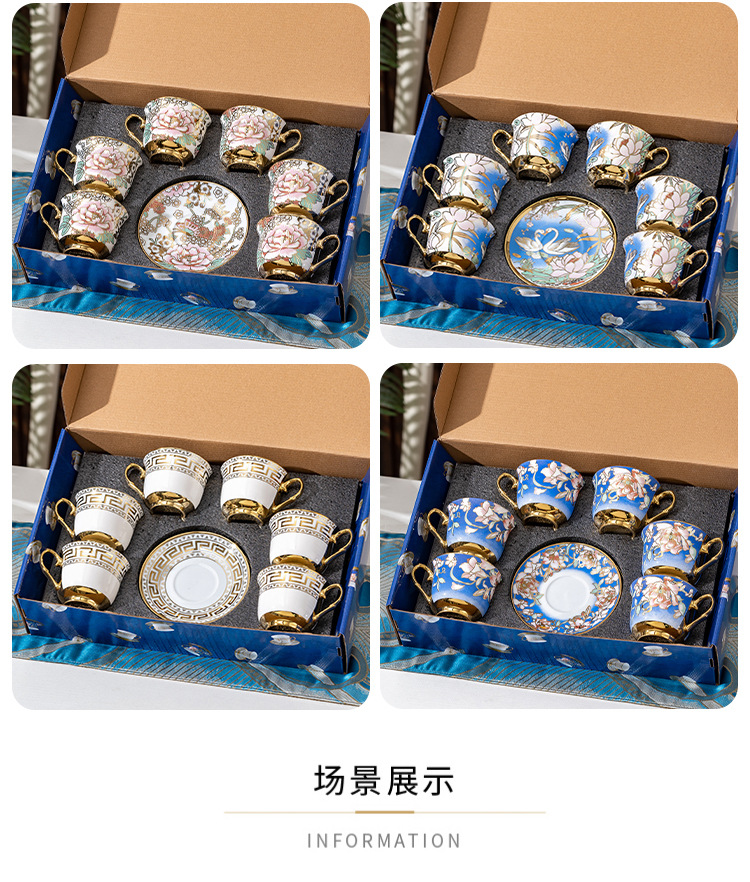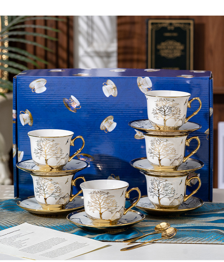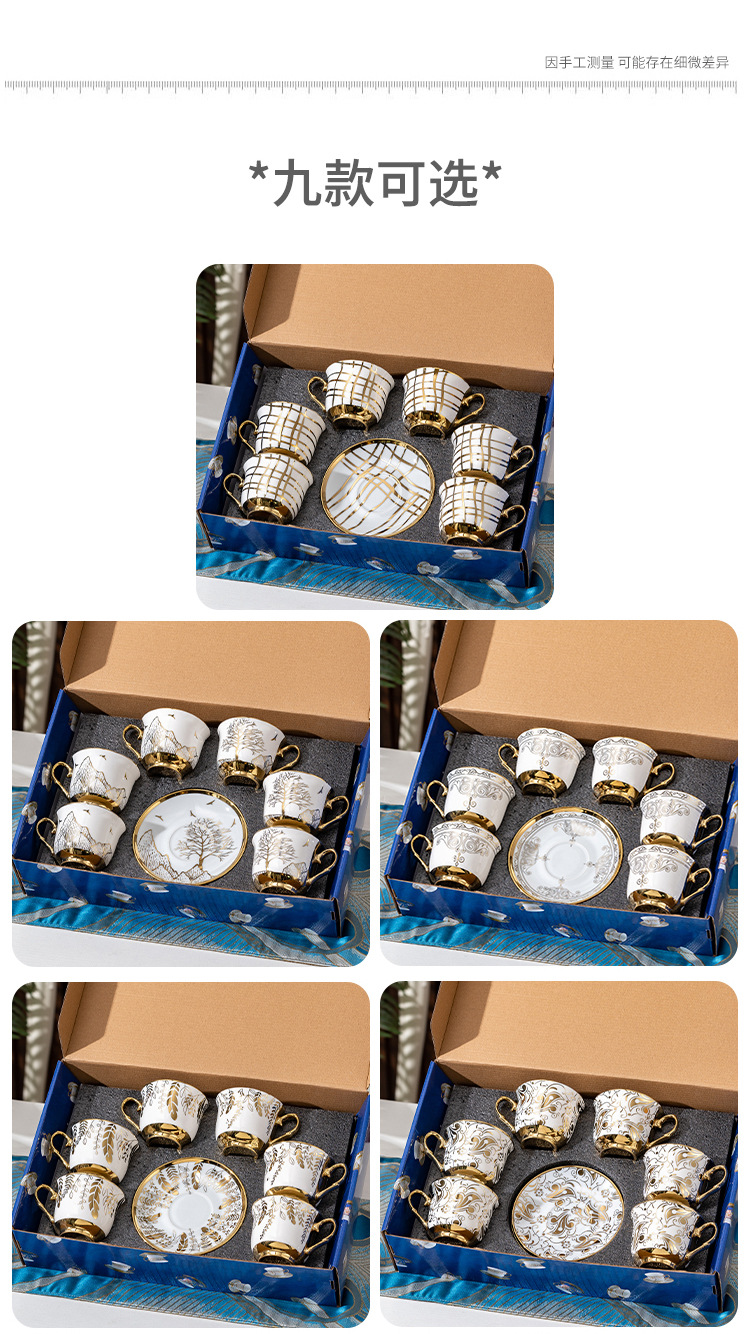 Ruyi 6 tazas 6 platos cuchara dorada [caja de regalo]