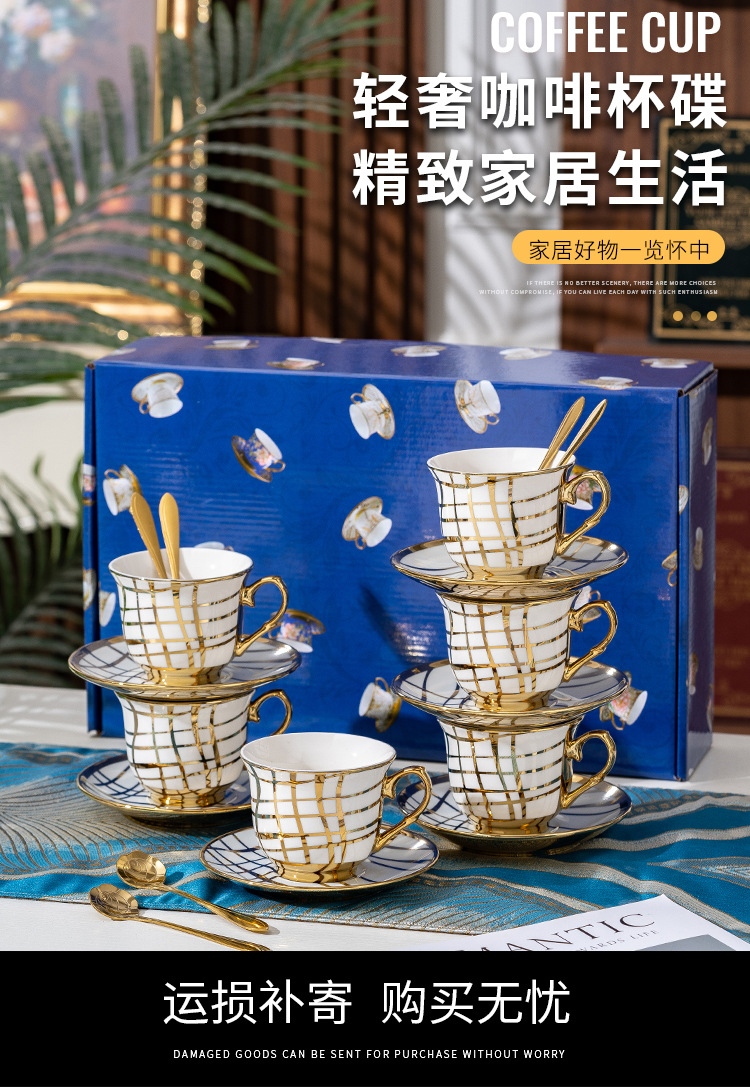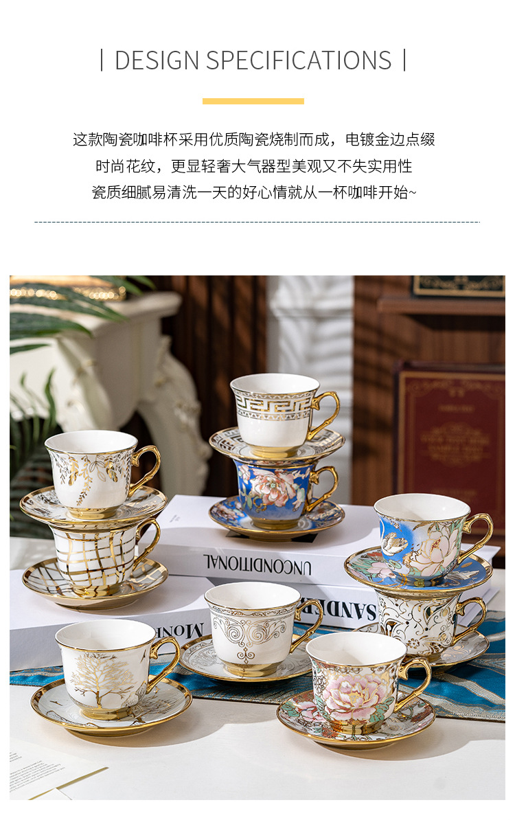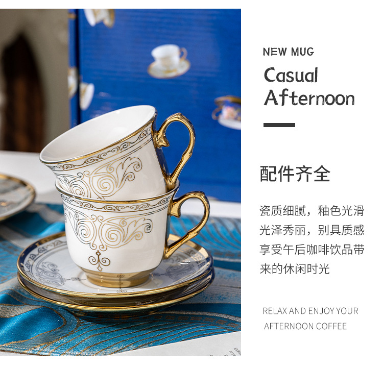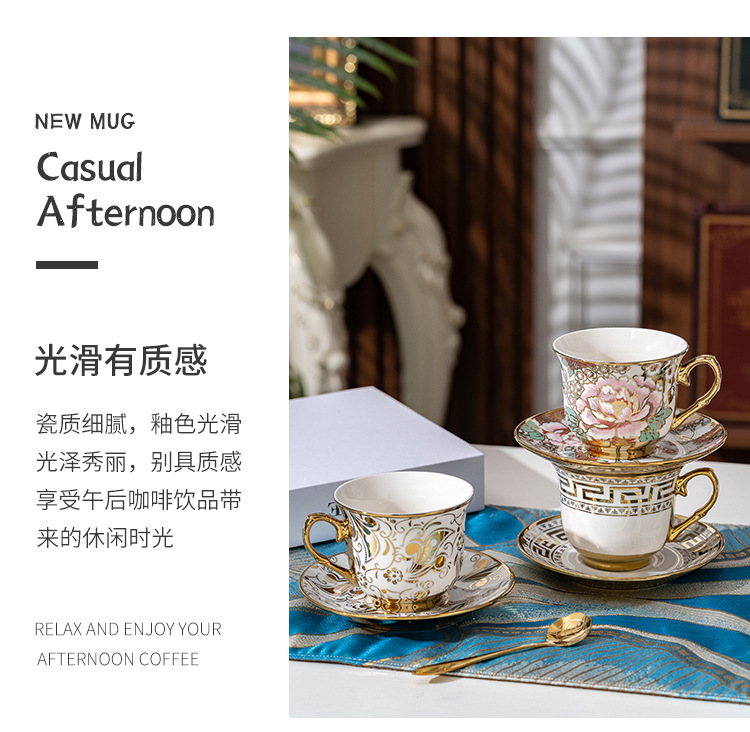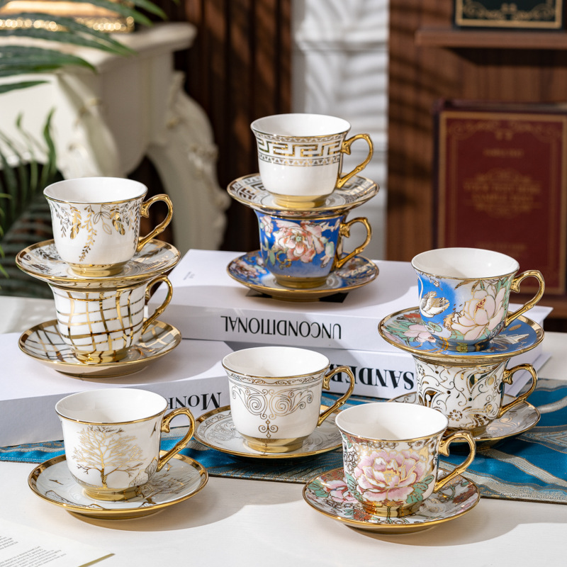 Juego de tazas de café de cerámica francesa pequeña taza simple para el hogar de lujo ligero taza de té de la tarde británica de lujo comercio exterior al por mayor