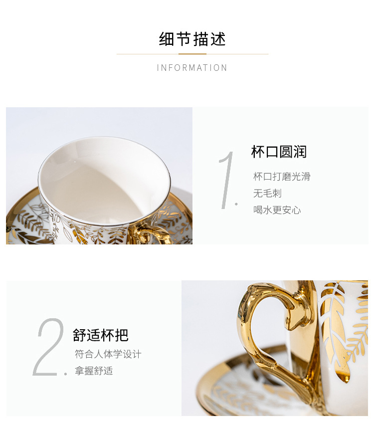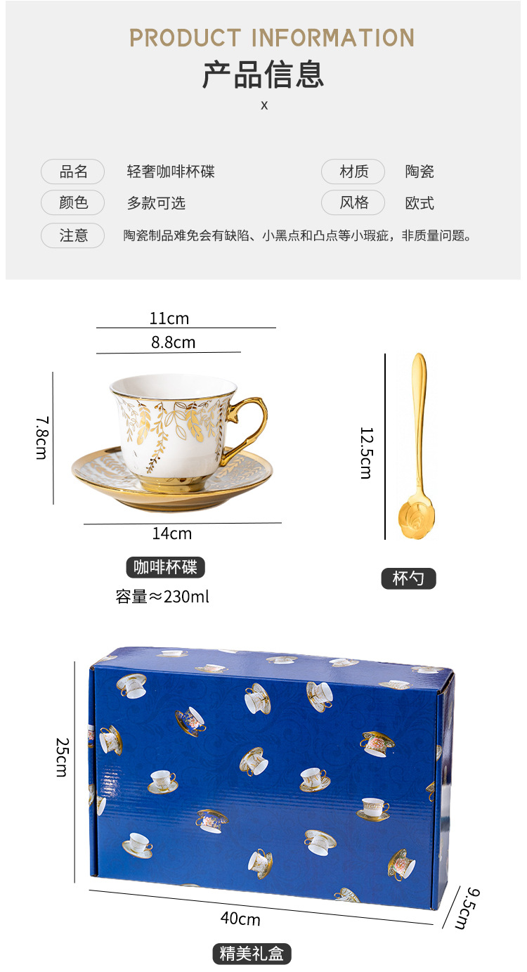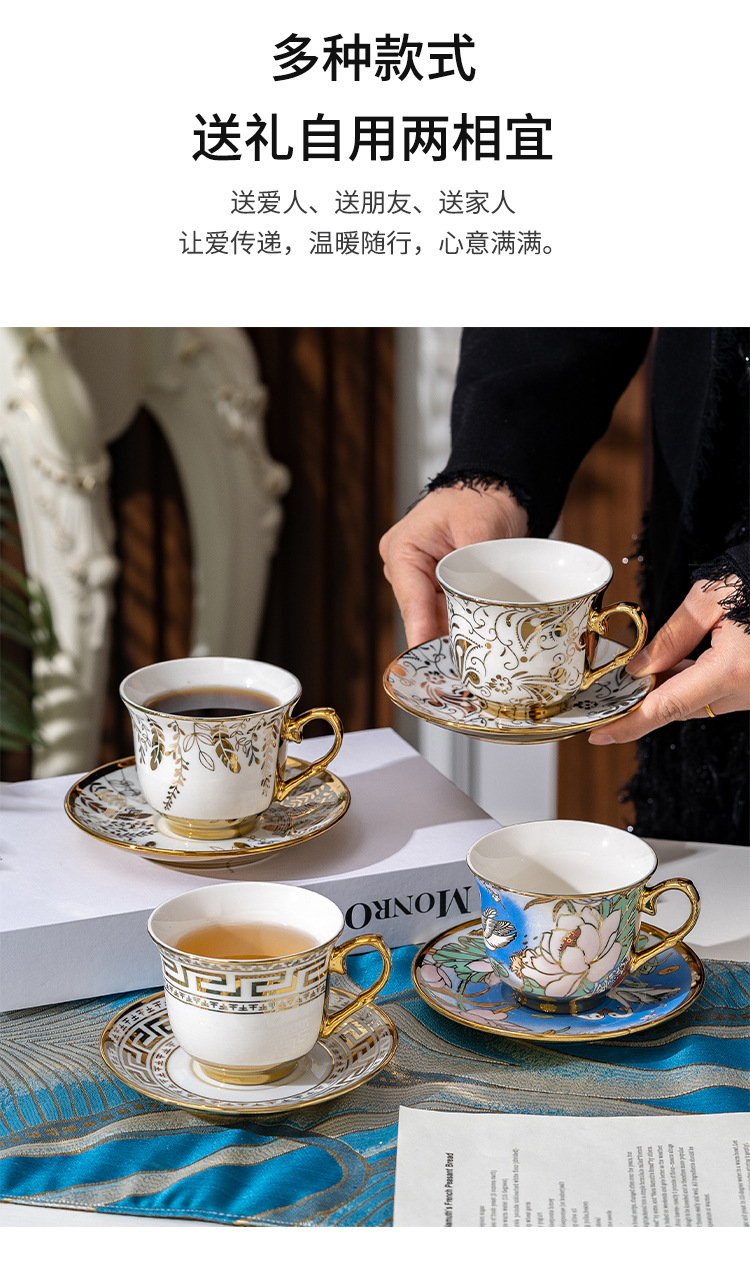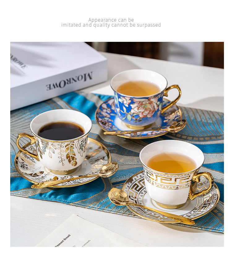 Juego de tazas de café de cerámica francesa pequeña taza simple para el hogar de lujo ligero taza de té de la tarde británica de lujo comercio exterior al por mayor