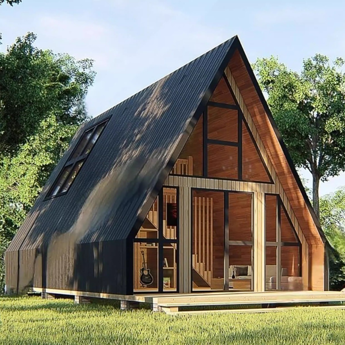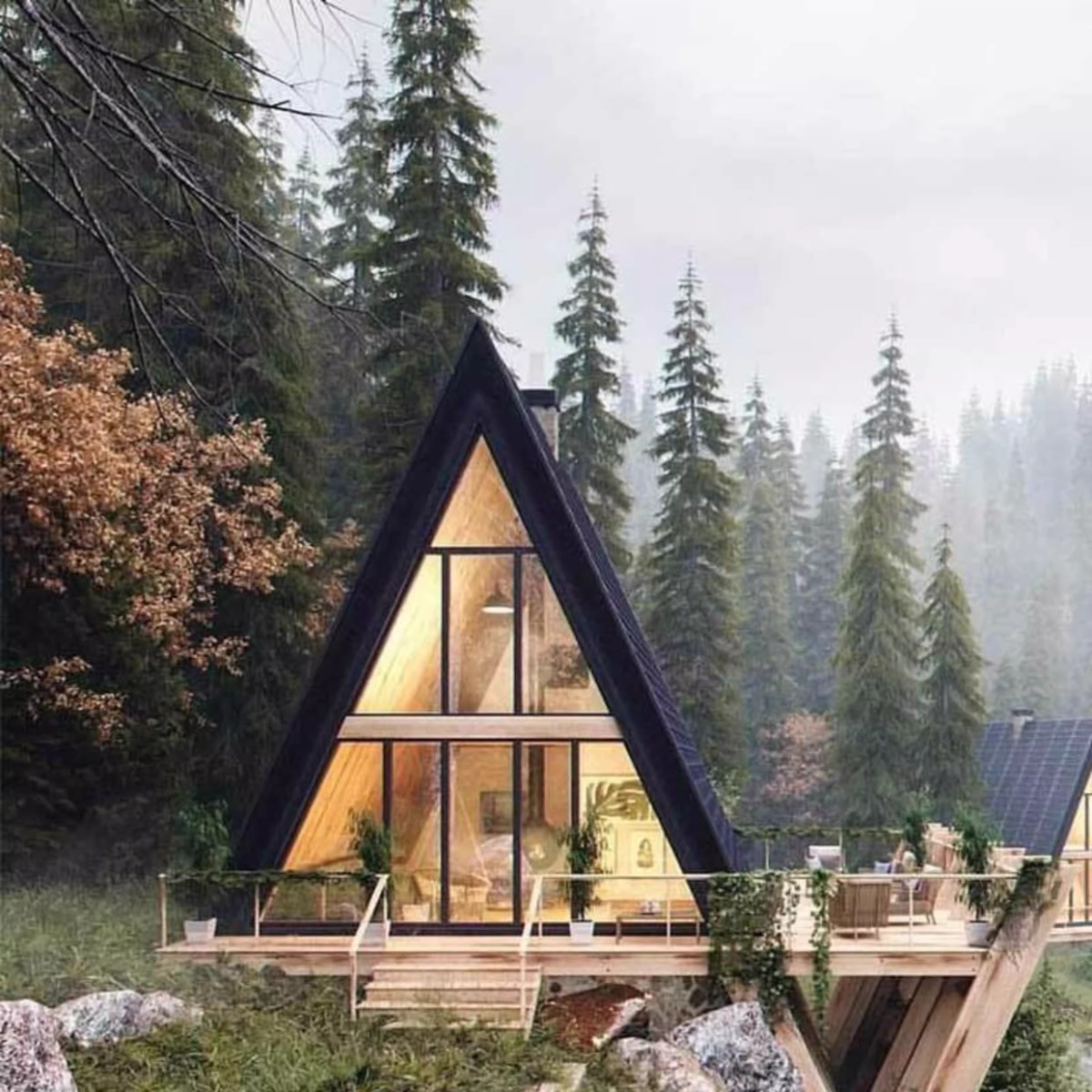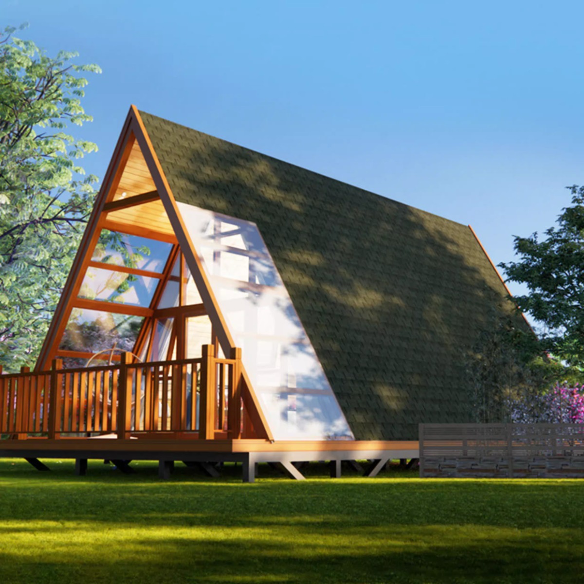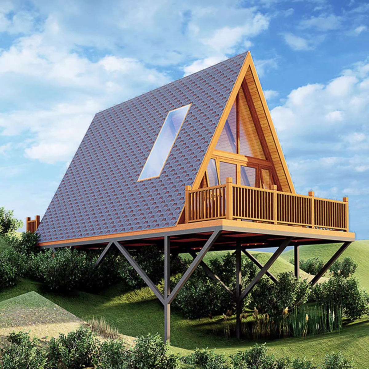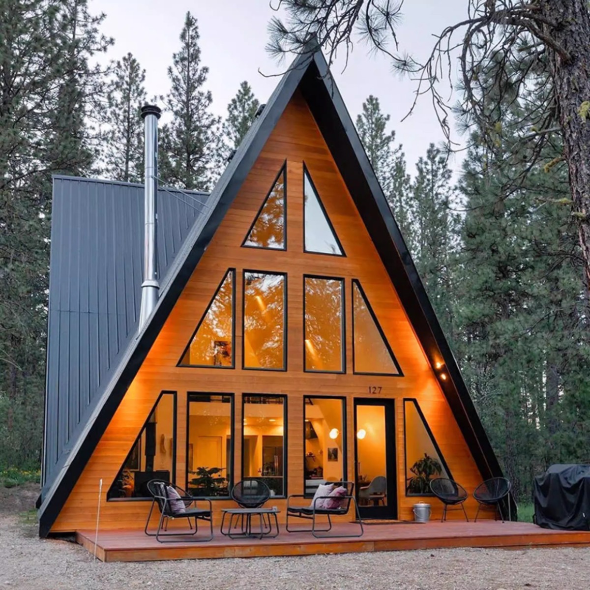 Casa de madera triangular red de lujo al aire libre salvaje cabaña de vacaciones alojamiento residencial pequeña casa de diseño villa patio casa en el árbol
