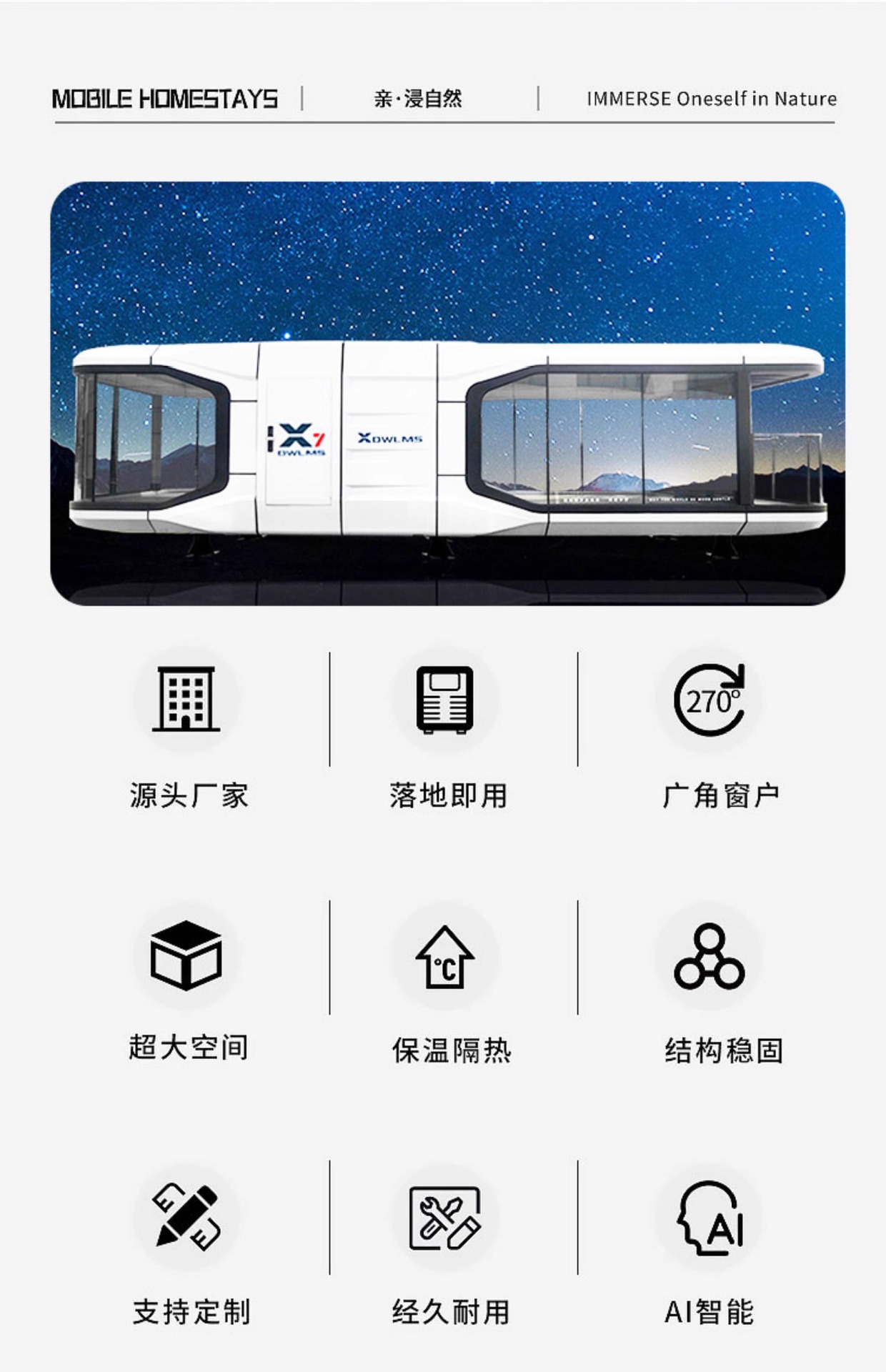 Casa de familia al aire libre cápsula de manzana cápsula espacial actividad sala de juntas contenedor sala de exposiciones móvil actividades de salón escénico