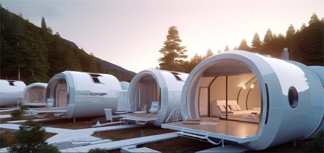Residencia al aire libre cápsula de manzana cápsula espacial sala de tablero móvil contenedor sala de exposiciones móvil lugar escénico actividad de salón