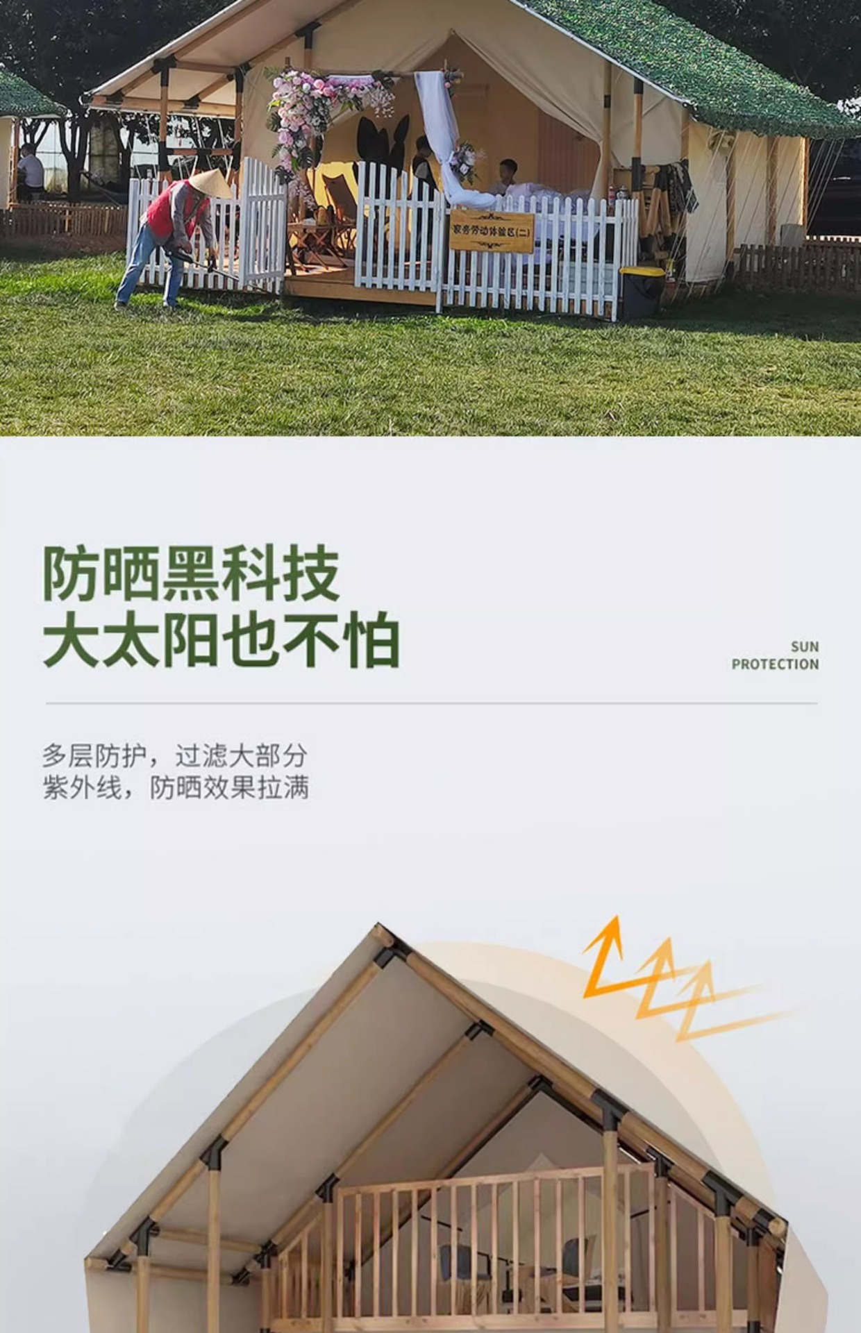 Carpa de madera ligera de lujo de estilo europeo campamento al aire libre campamento ocio residencial cuatro estaciones carpa de hotel de lujo