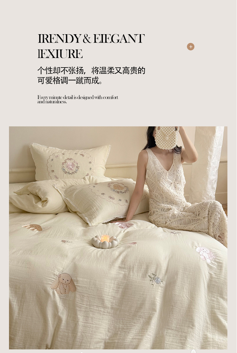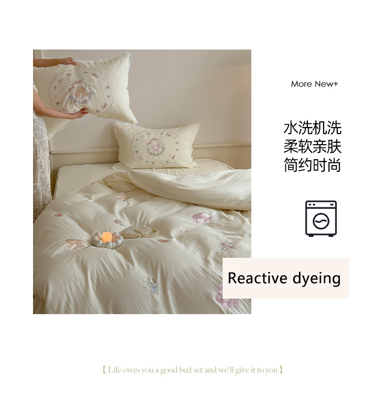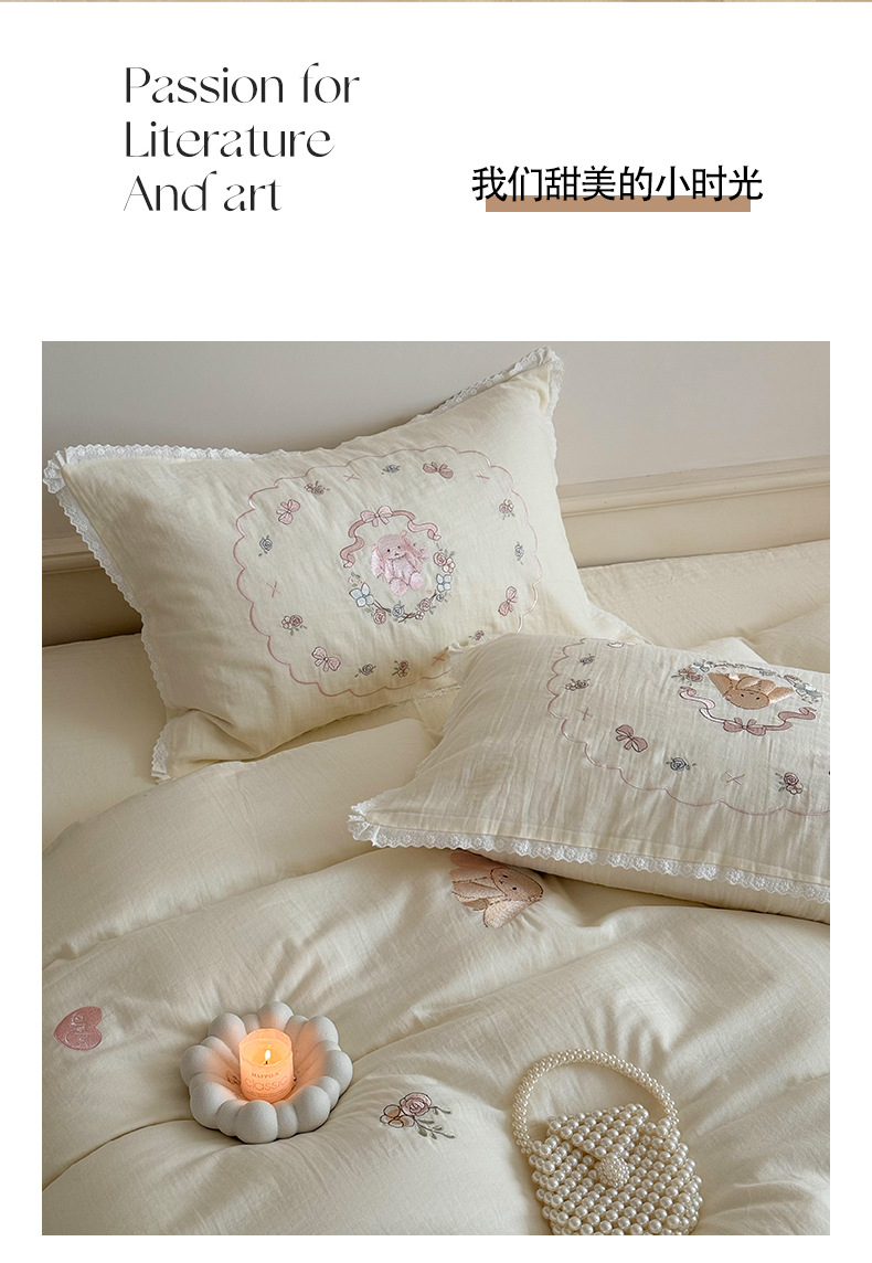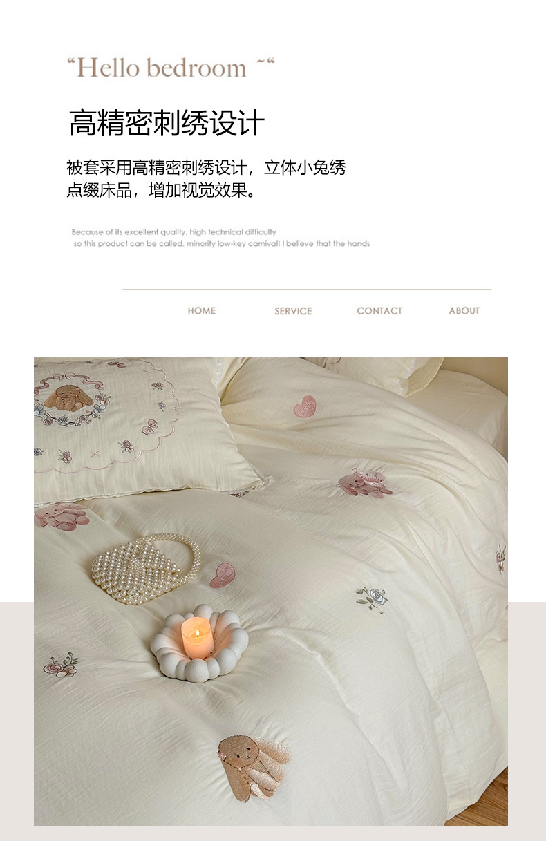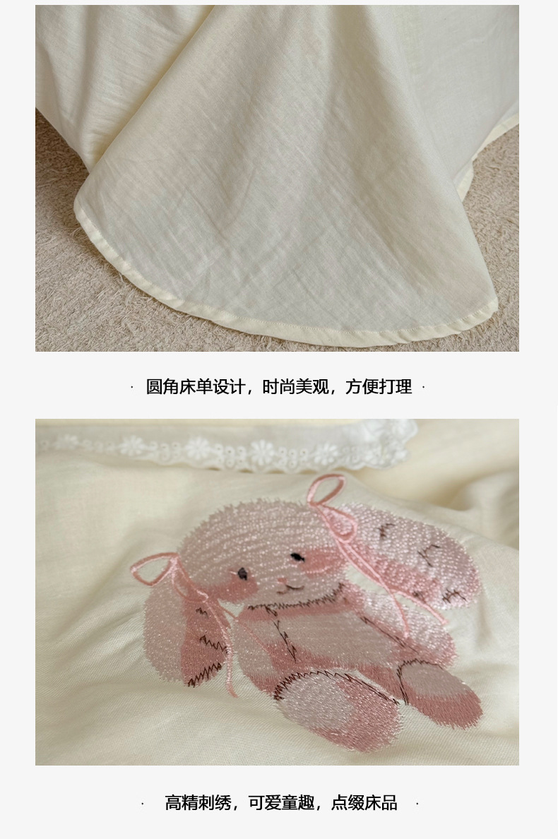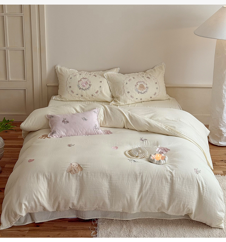 Corazón de la niña francesa, algodón suave, sábanas de algodón de tres o cuatro piezas, bonitas colchas bordadas de conejo, ropa de cama