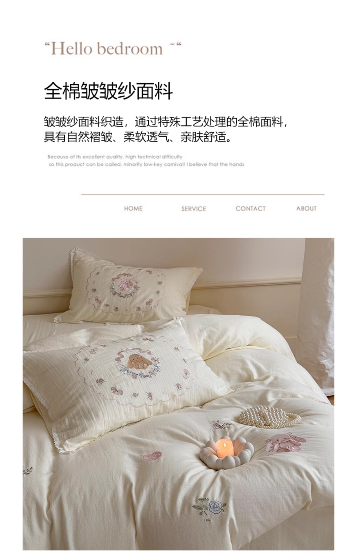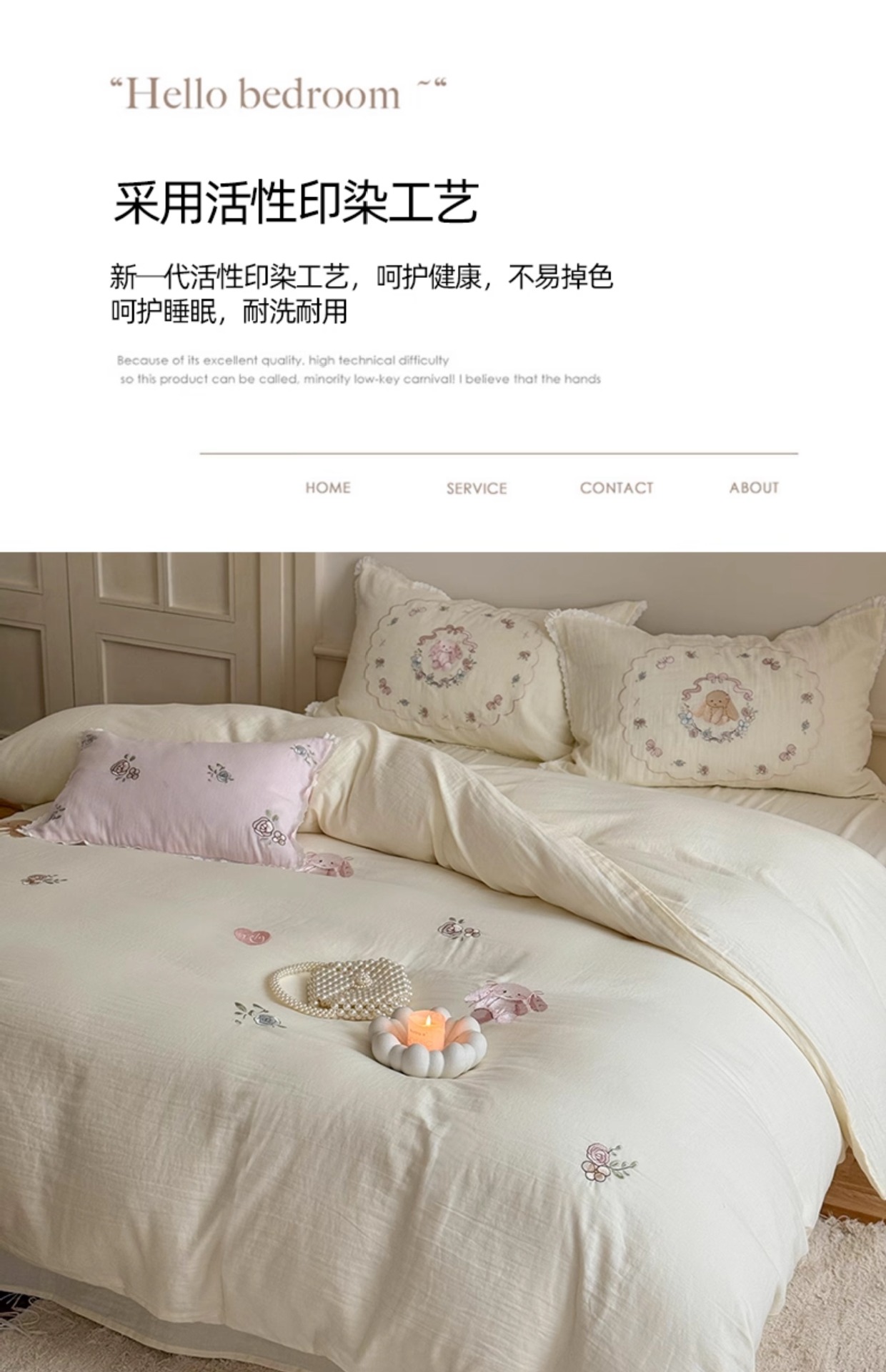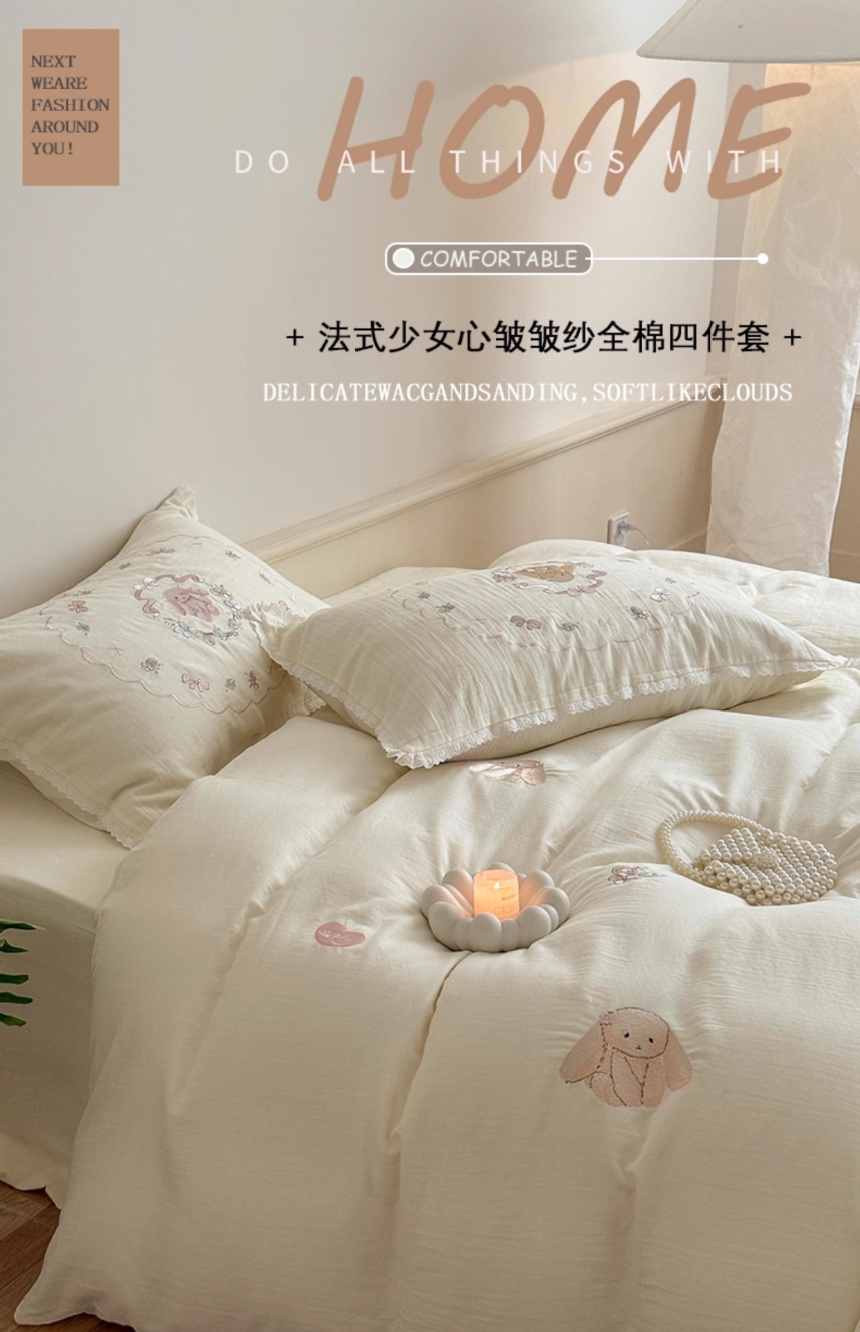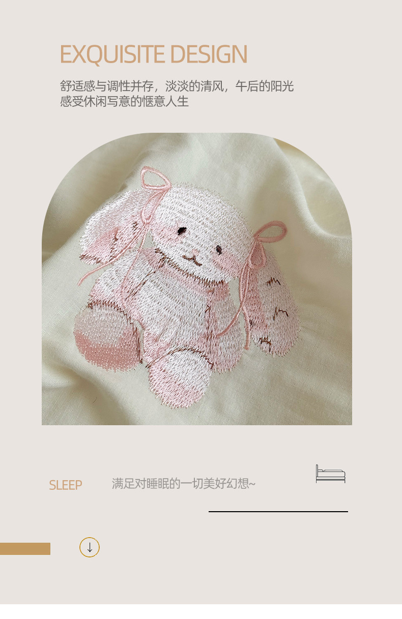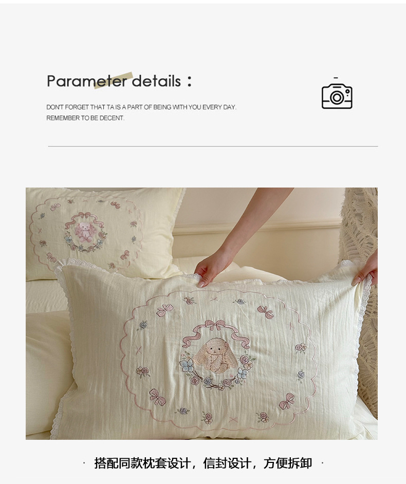 Corazón de la niña francesa, algodón suave, sábanas de algodón de tres o cuatro piezas, bonitas colchas bordadas de conejo, ropa de cama