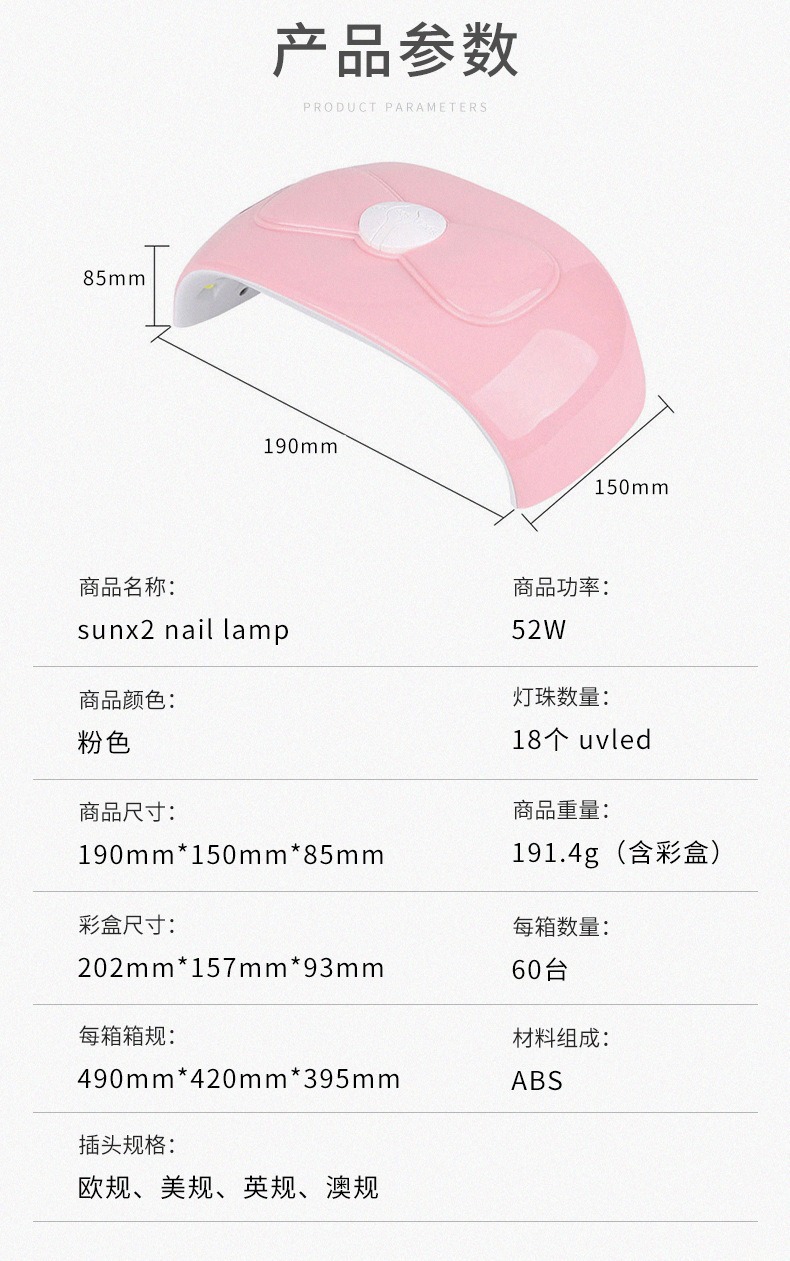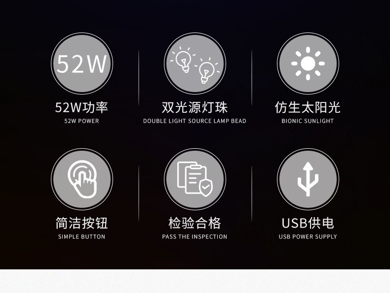 Luz de manicura transfronteriza 52W conveniente mini manicura luz de horno USB conector arco manicura luz de terapia de luz herramientas de manicura