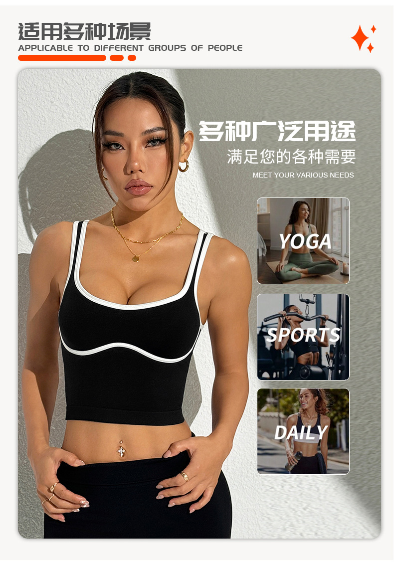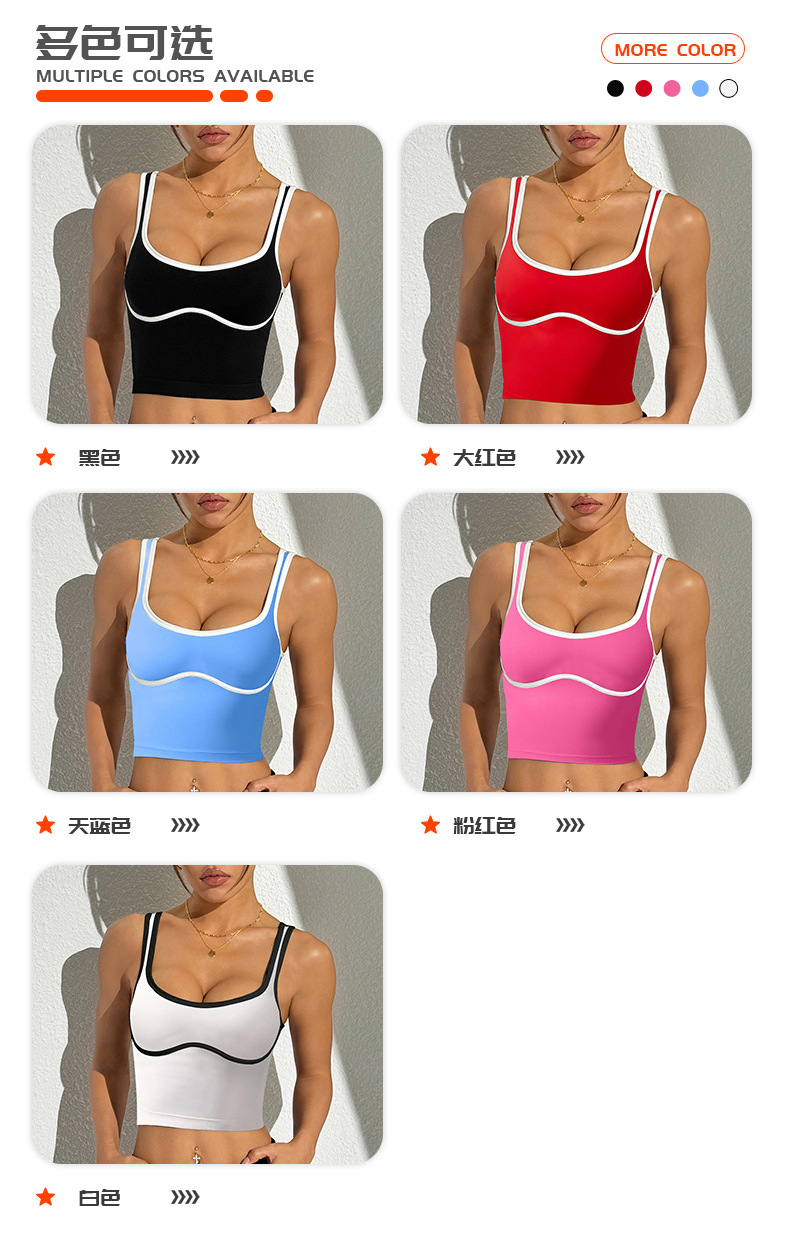 Chaleco deportivo trasero de belleza sin anillo de acero de color de contraste europeo y americano