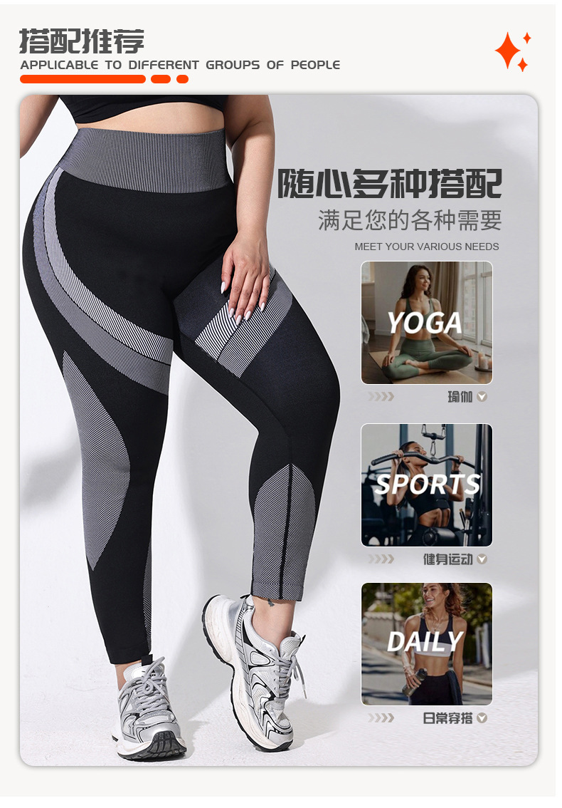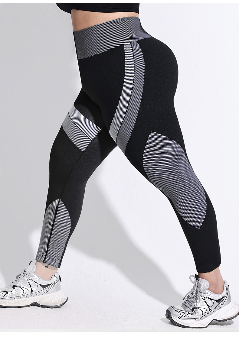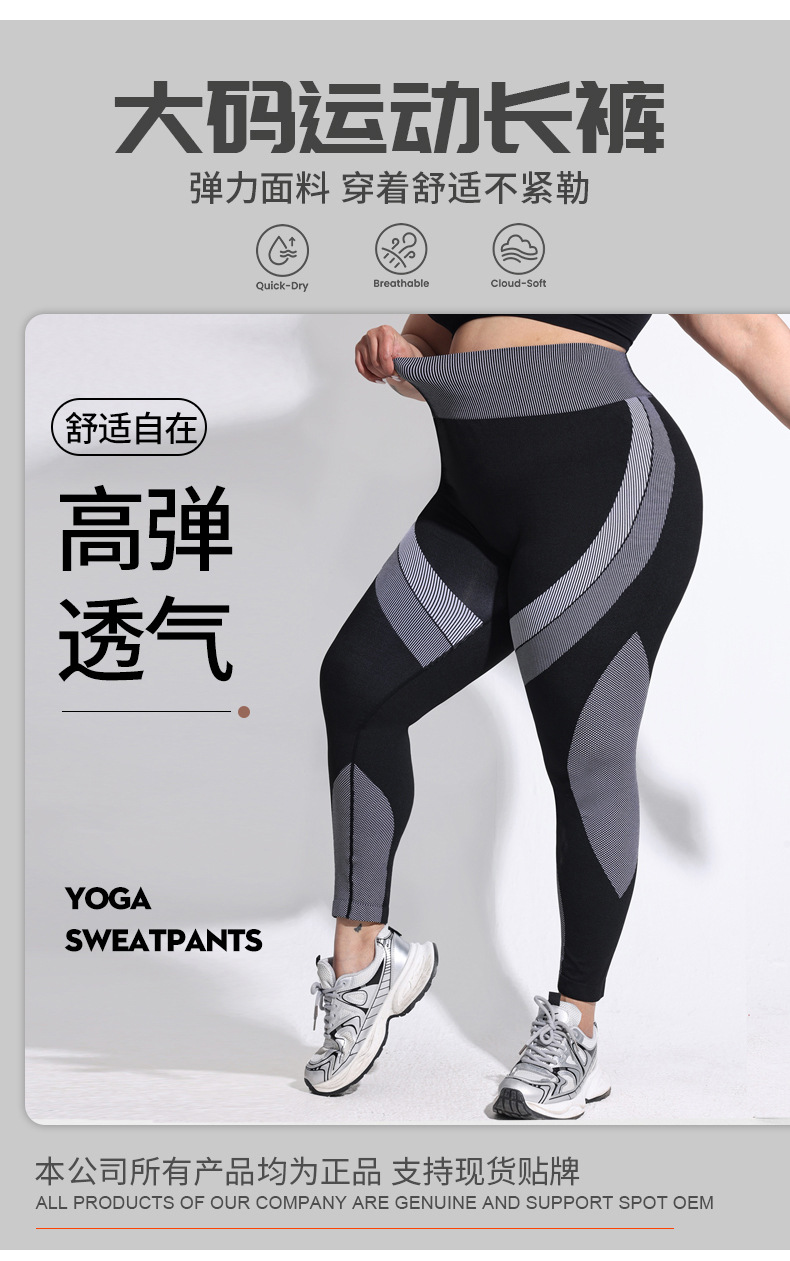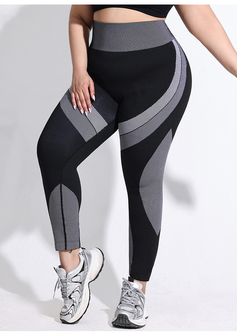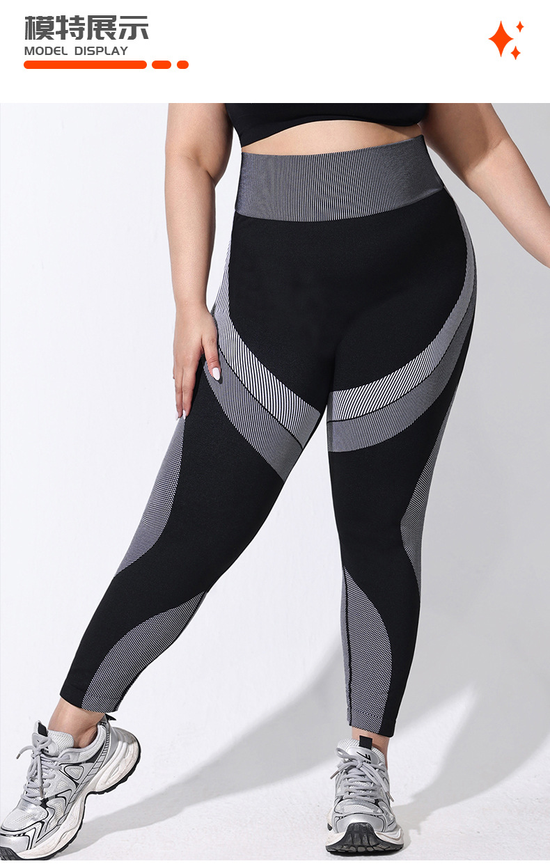 2025 tallas grandes pantalones de yoga de color de contraste transpirables de cintura alta para mujer pantalones de fondo deportivo a rayas largos sin costuras con cadera ajustada