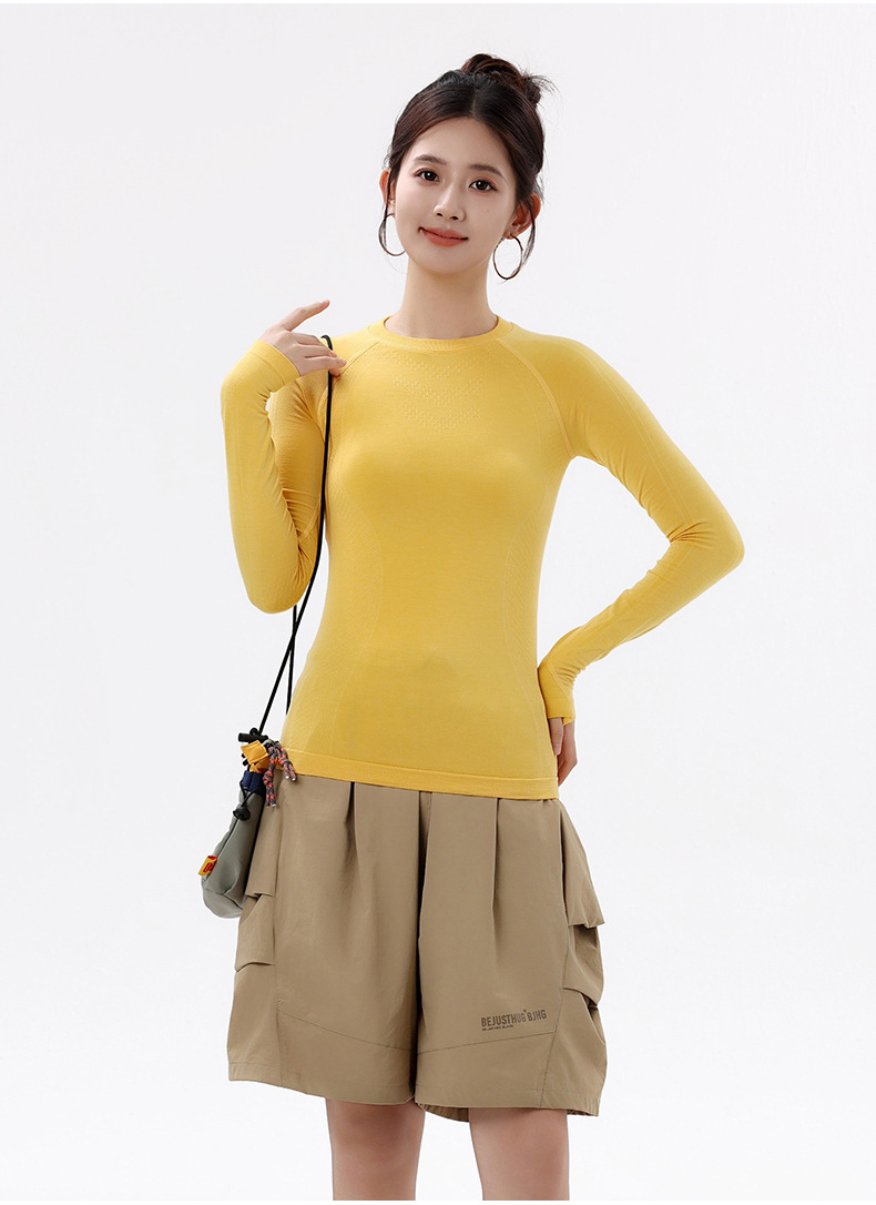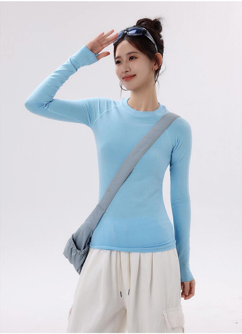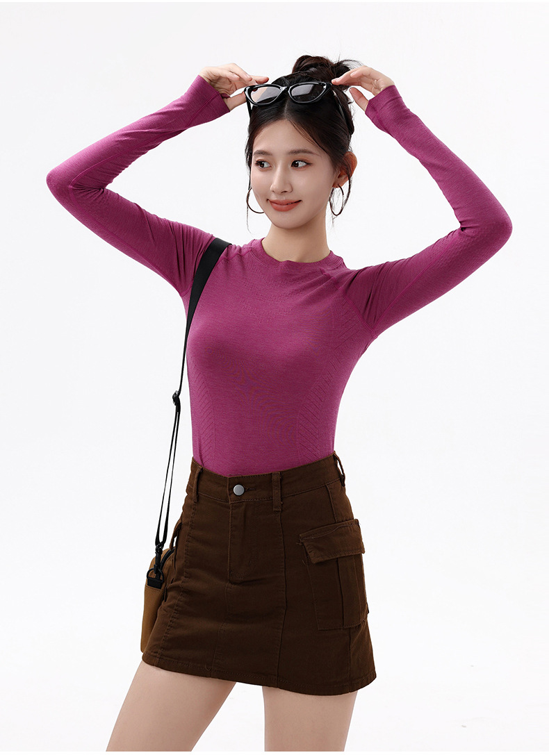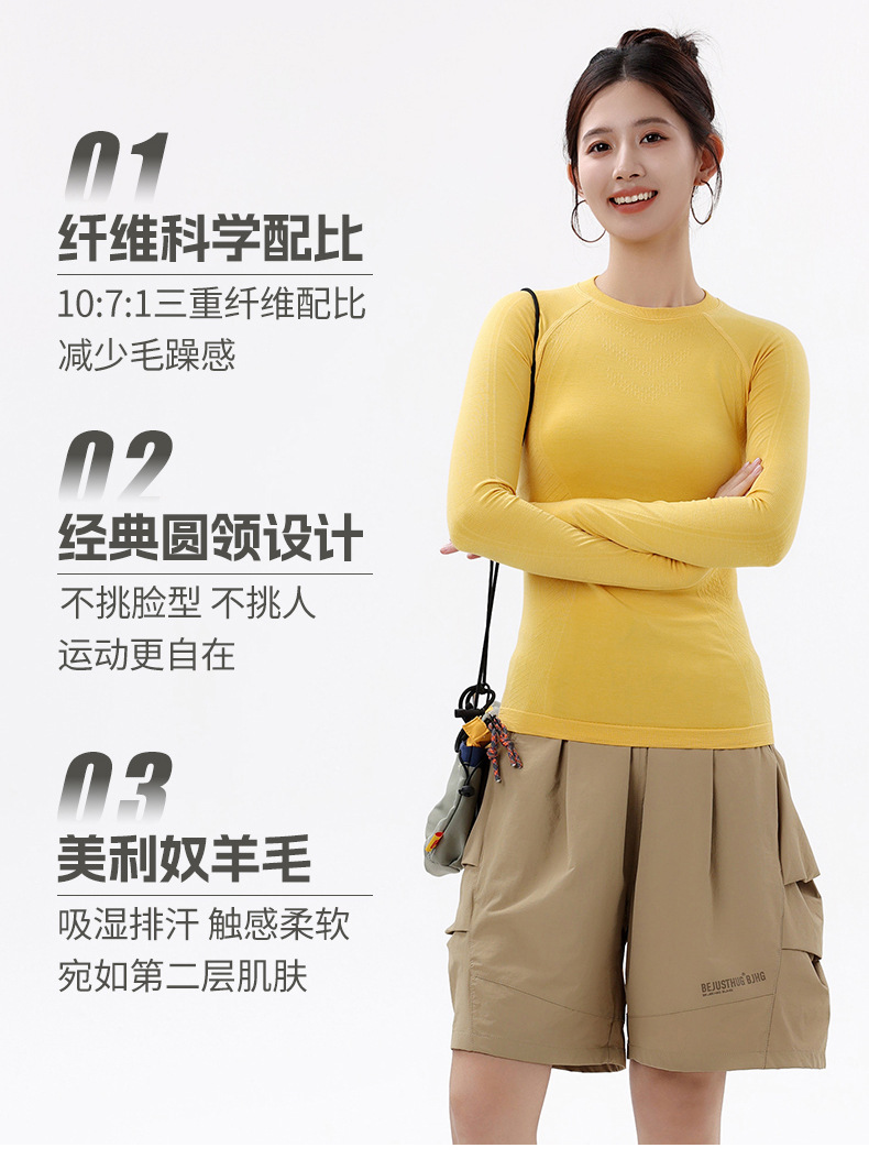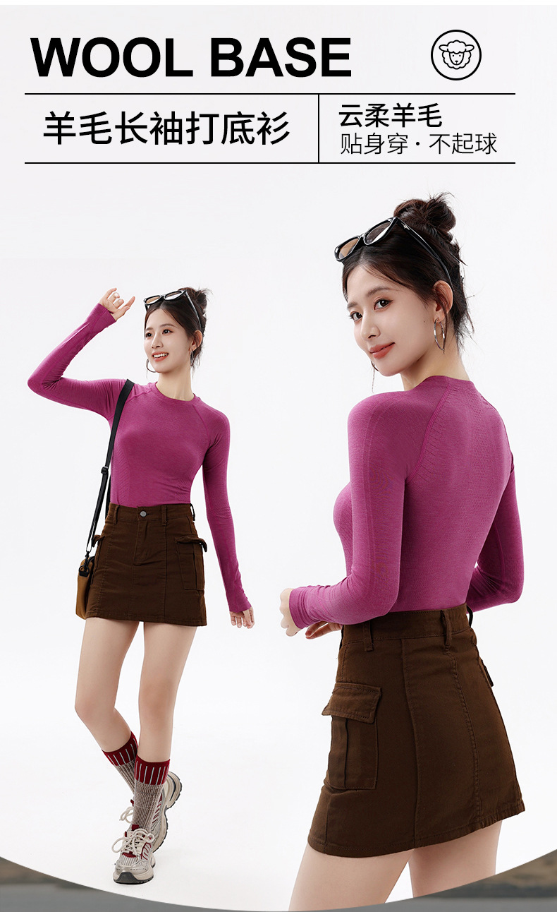 TENSI MELINO lana leggings de manga larga de cuello redondo caliente pulgar botón ropa de yoga con manga larga delgada blusa
