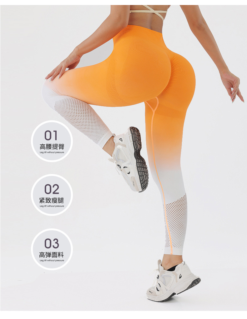 Pantalones de yoga con gradiente de malla para mujer, pantalones deportivos ajustados de secado rápido, sin costuras, de cintura alta, para correr, primavera y verano