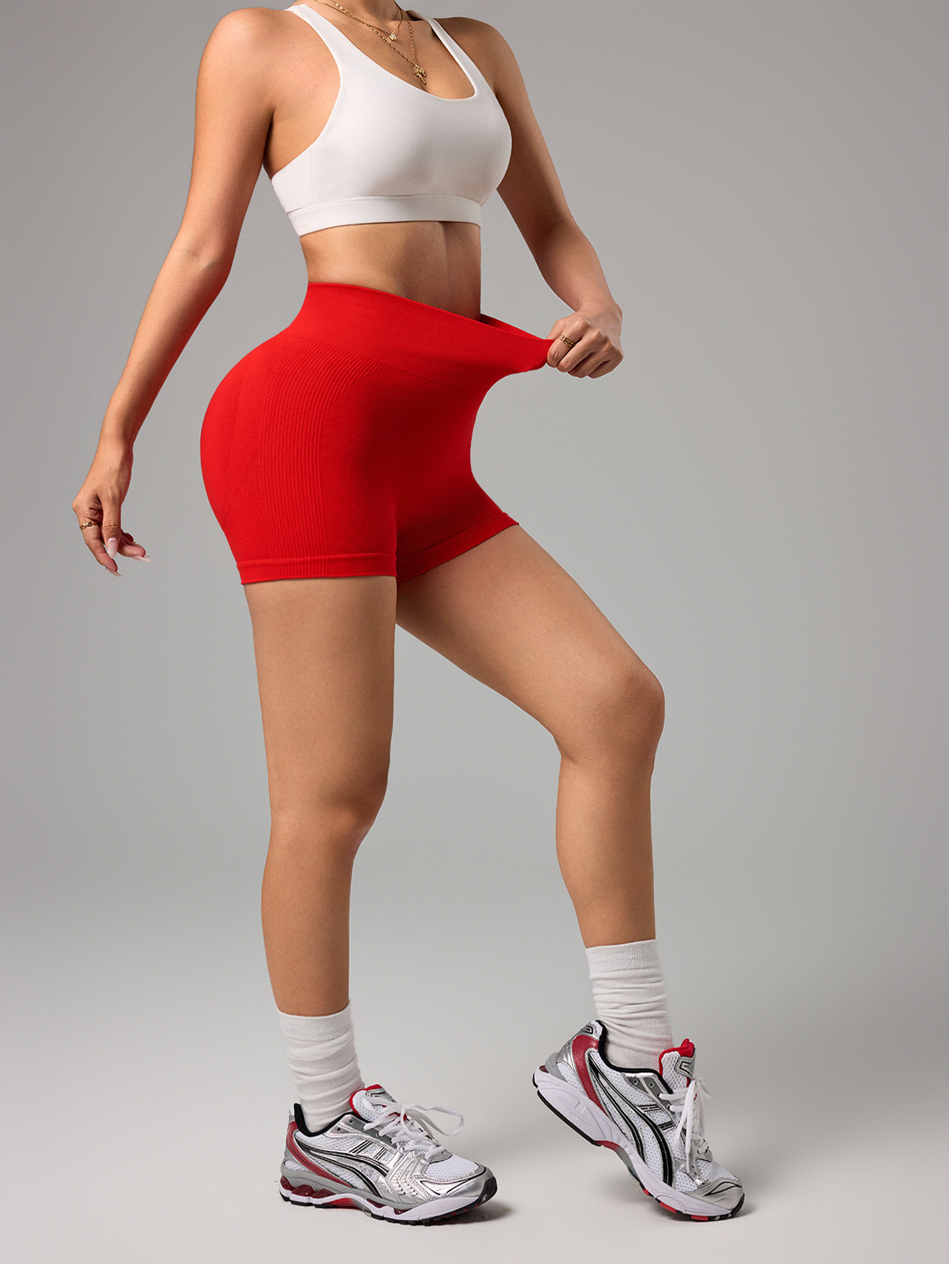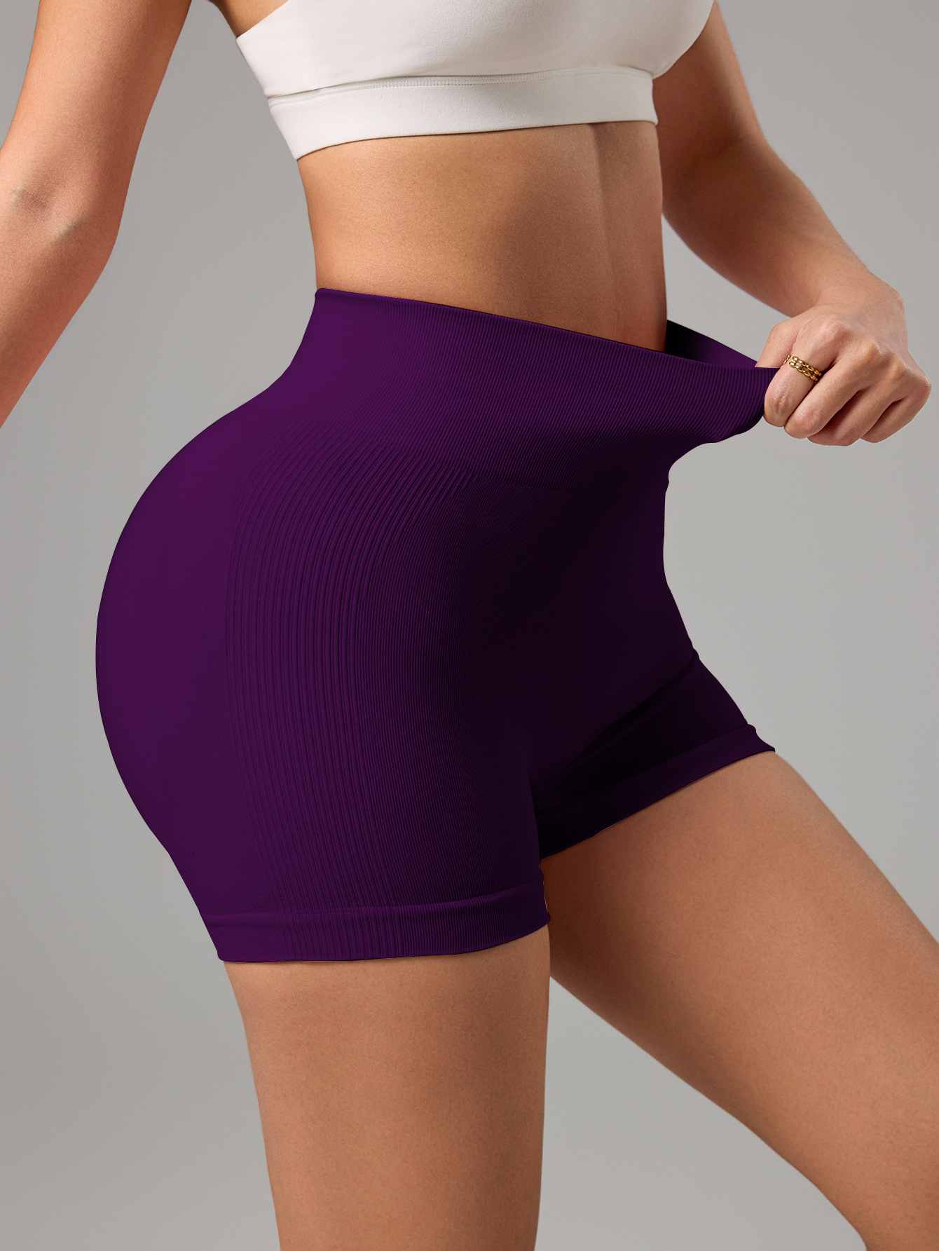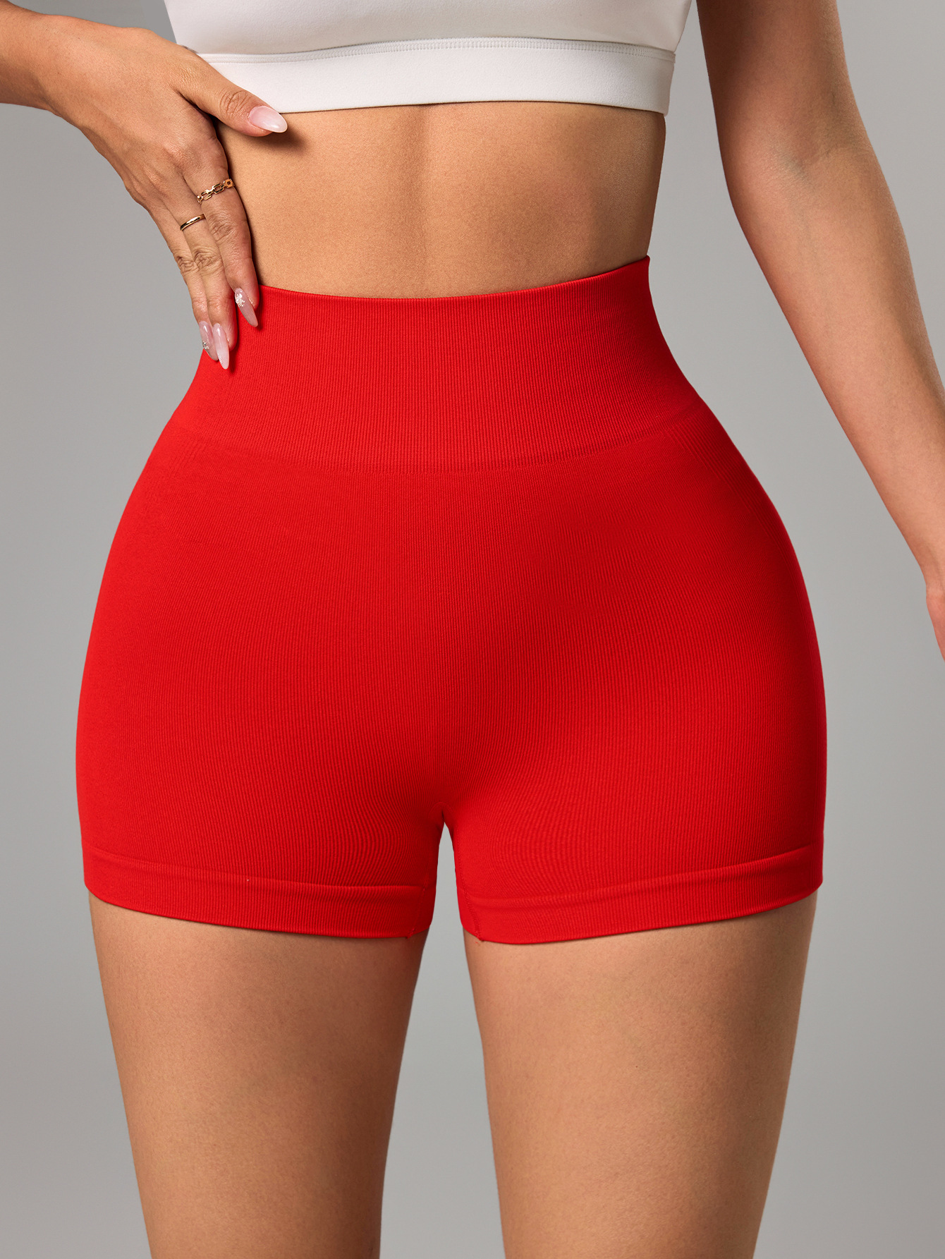 Transfronterizo cintura alta antideslizante sin costuras deportivo de miel de pecado de hiera pantalones cortos para mujeres que corren panty ajustado de acondicionamiento de la piel