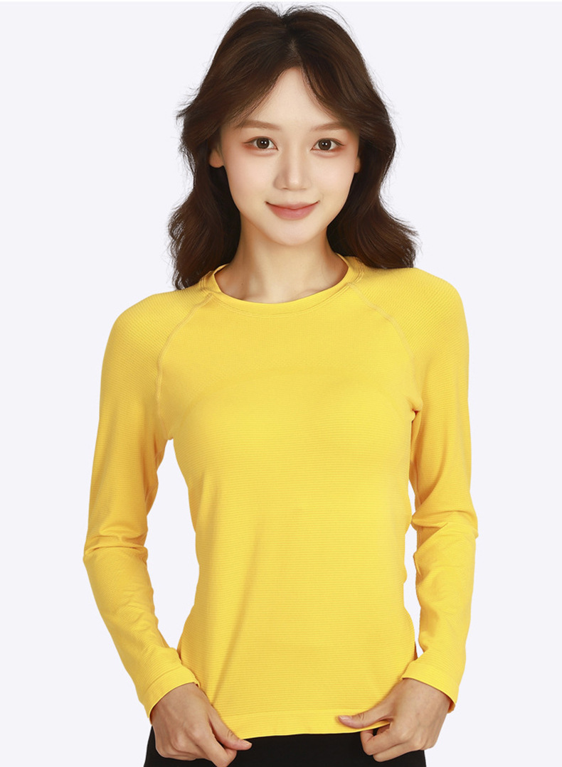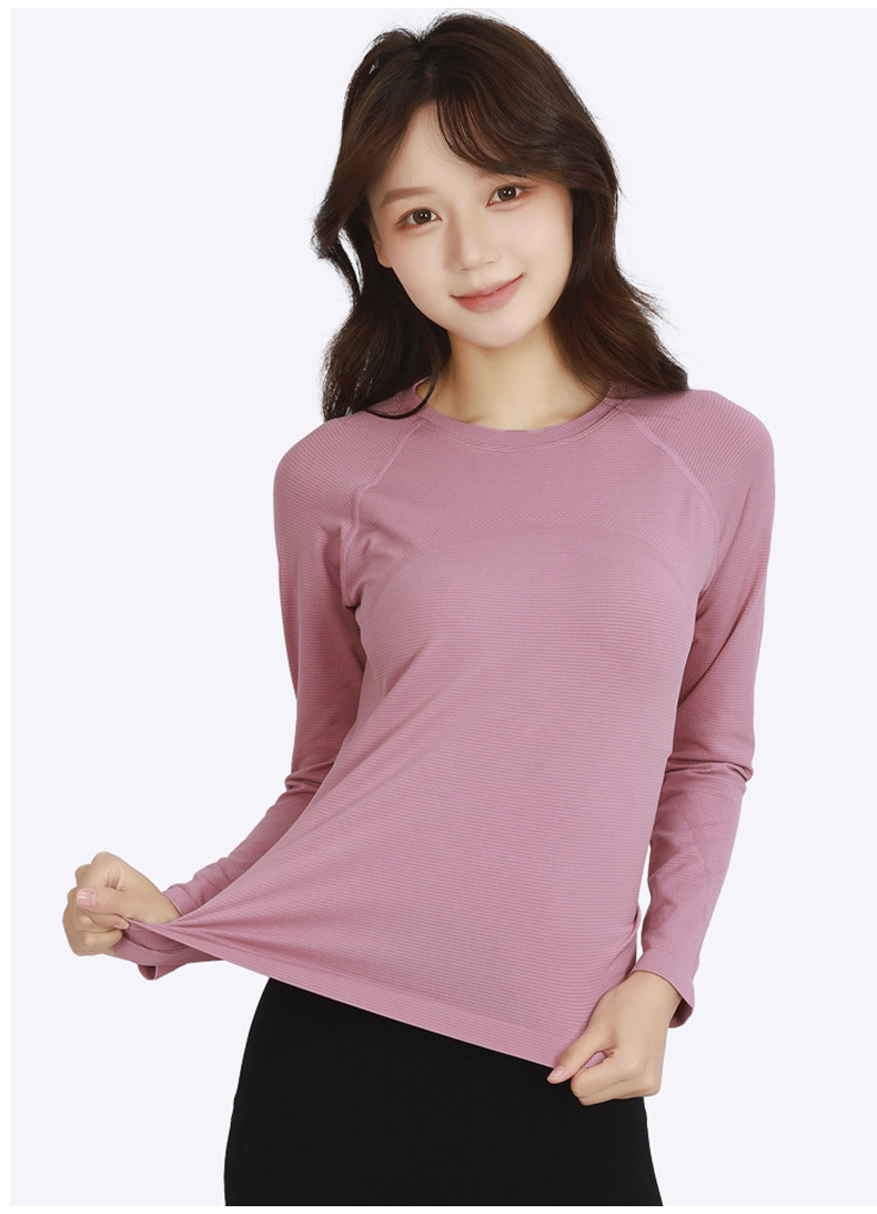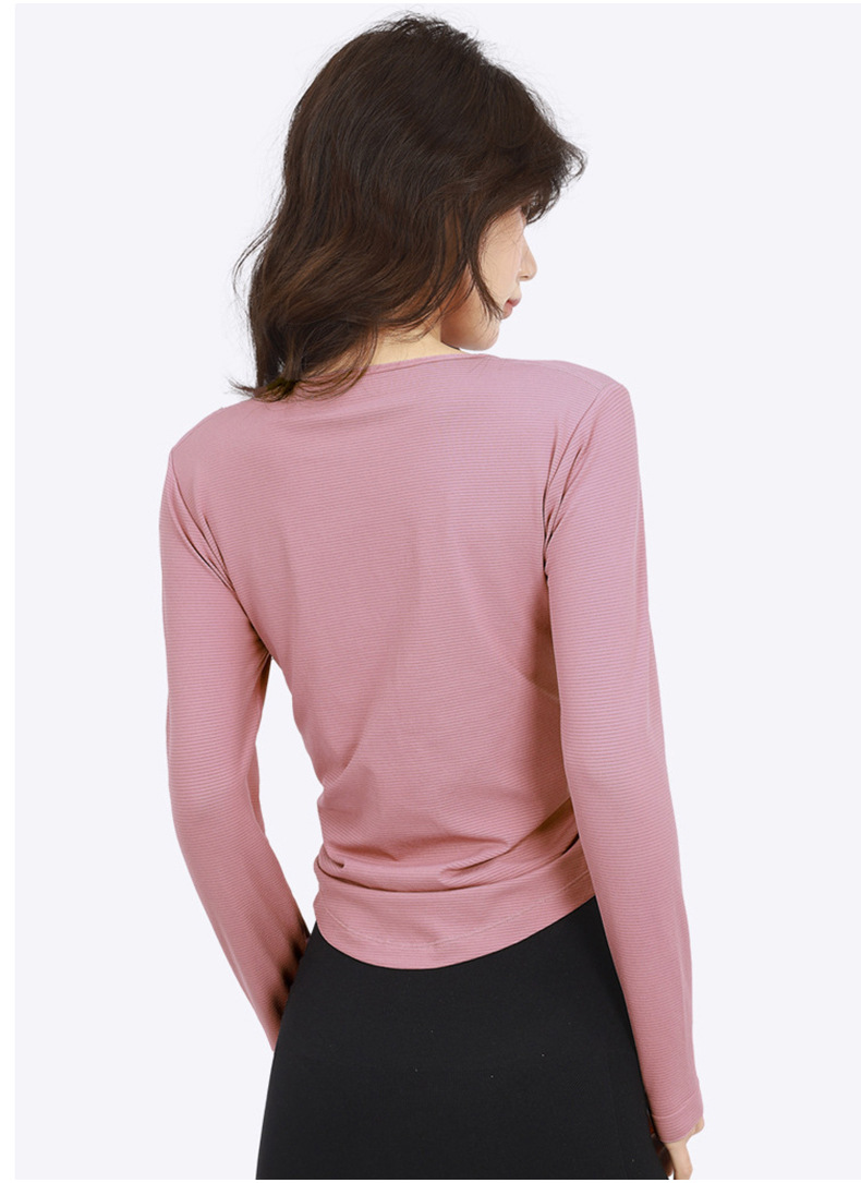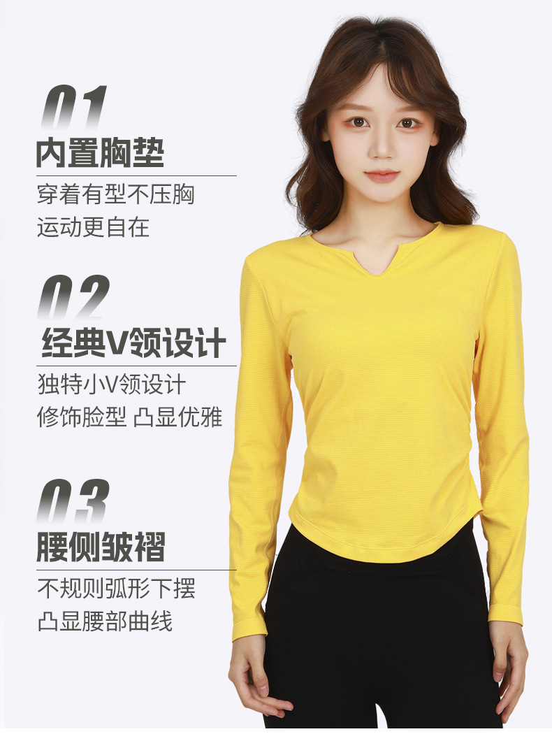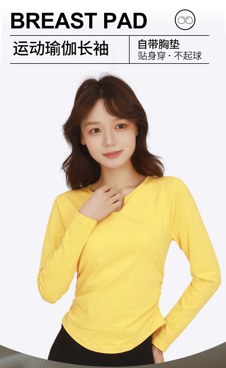 Otoño y invierno con cojín de pecho respirante, absorción de humedad, sudor, yoga, ropa de mangas largas para mujeres, ropa de ejercicios para adelgazar y correr, manga larga