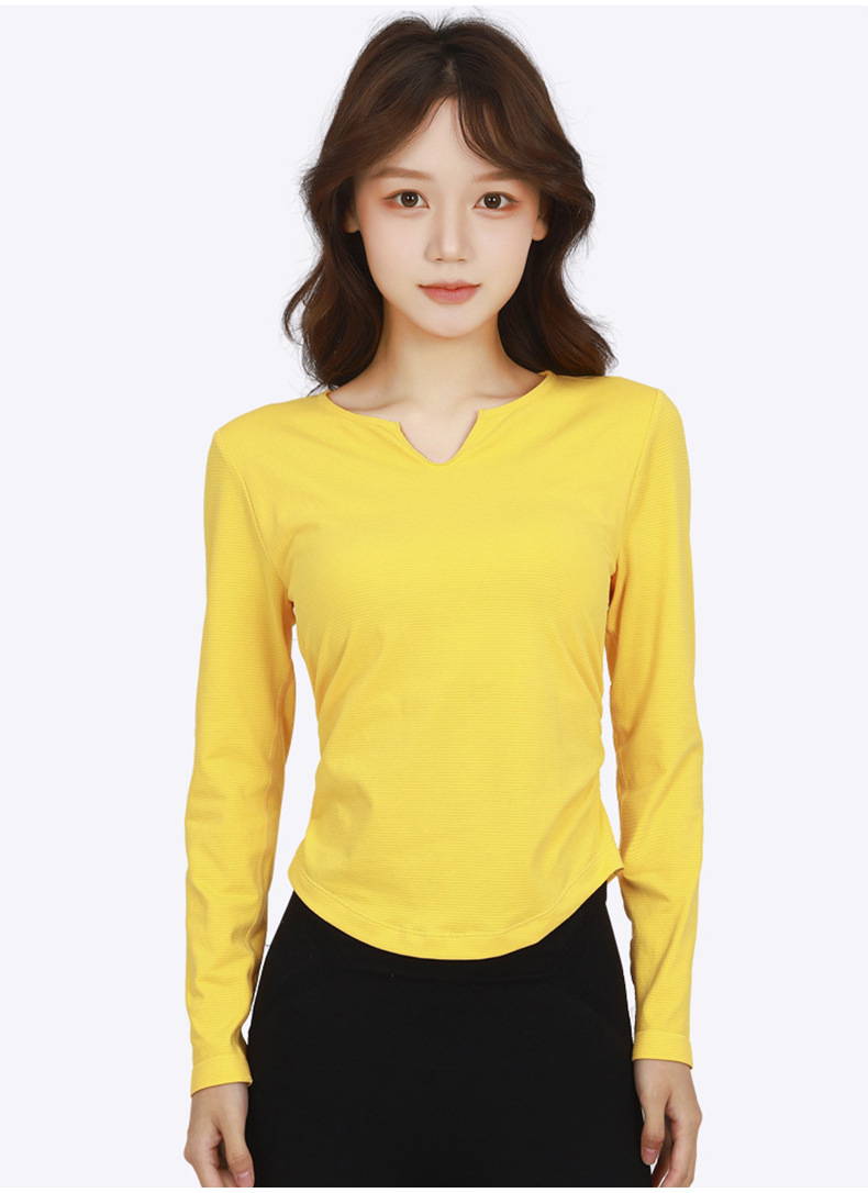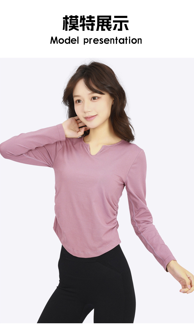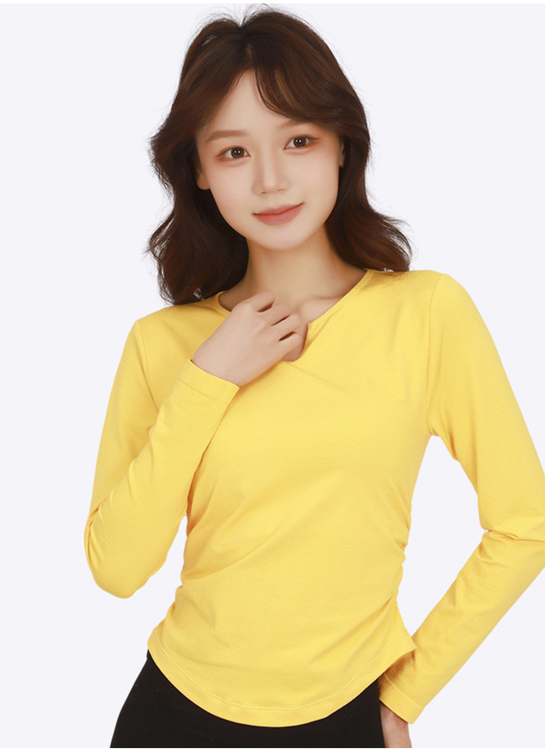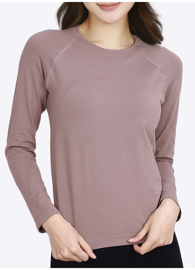 Otoño y invierno con cojín de pecho respirante, absorción de humedad, sudor, yoga, ropa de mangas largas para mujeres, ropa de ejercicios para adelgazar y correr, manga larga