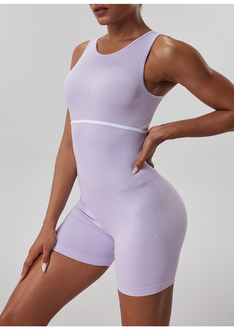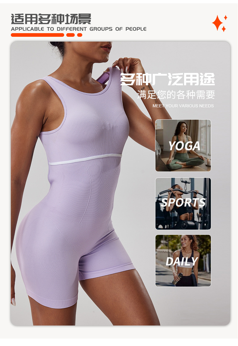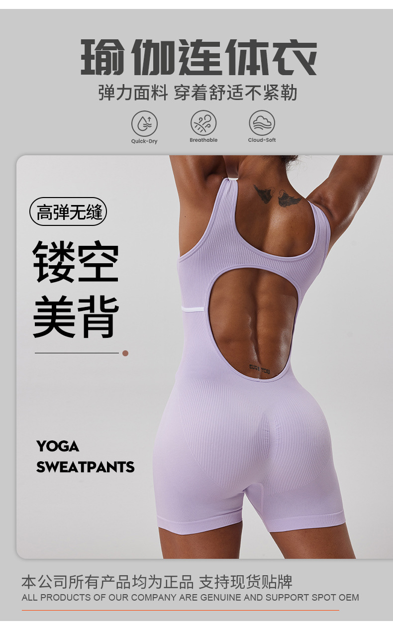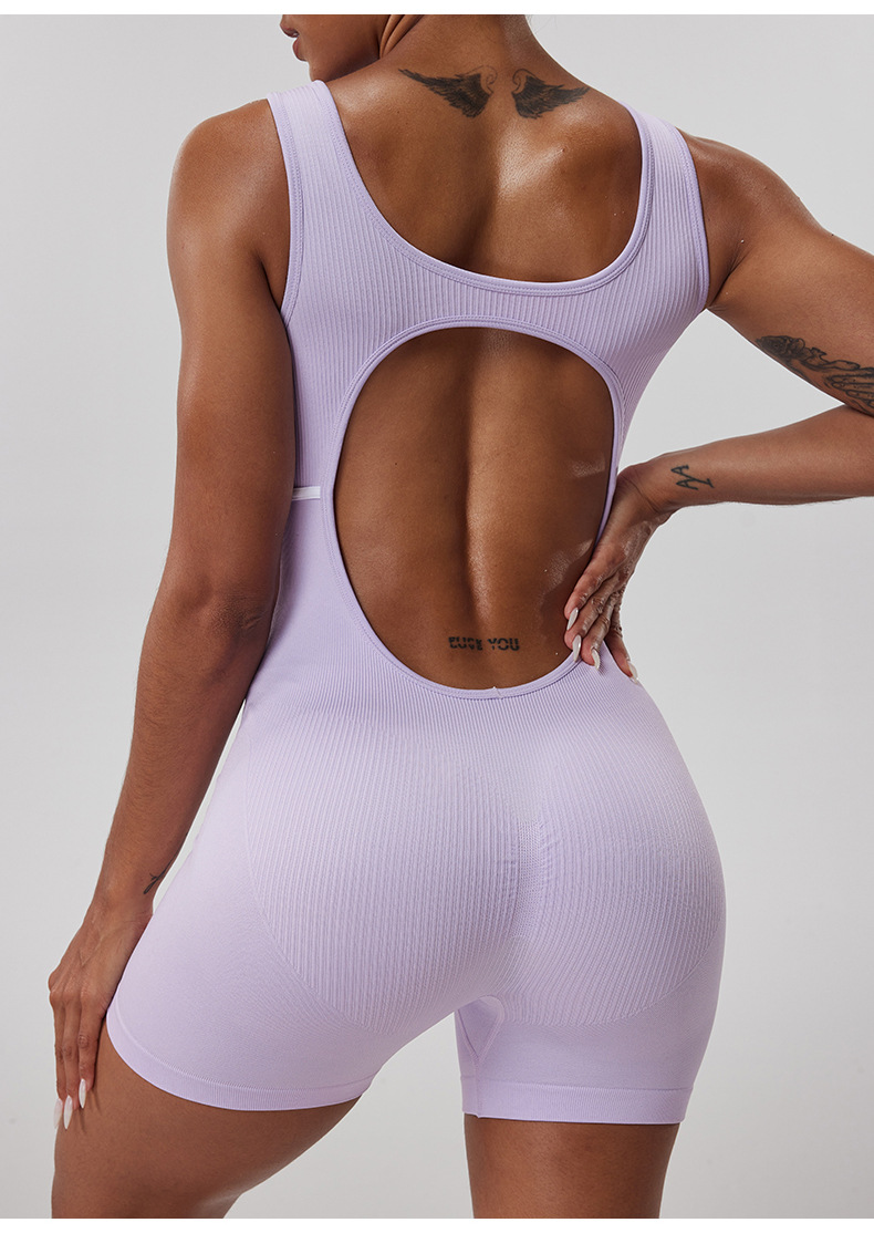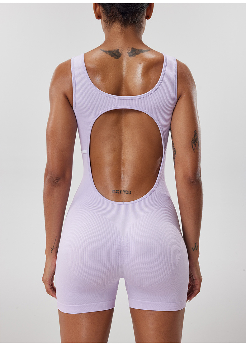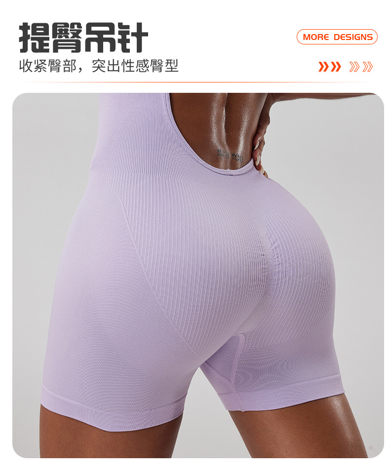 Ropa de una pieza de yoga deportiva de hilo sin costuras, hermosa espalda hueca de mujer, tirantes anchos, pantalones cortos de fitness para correr al aire libre, una pieza